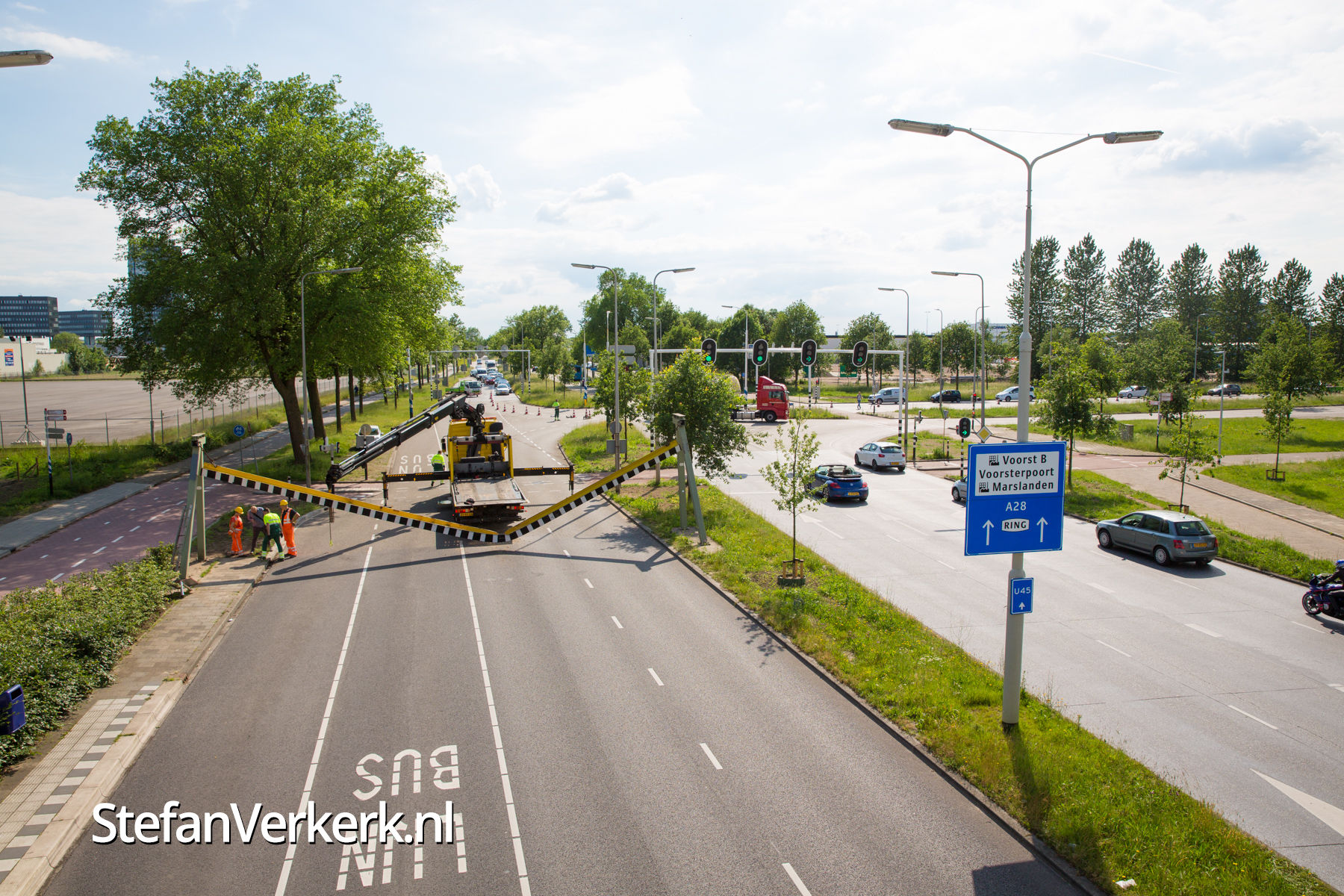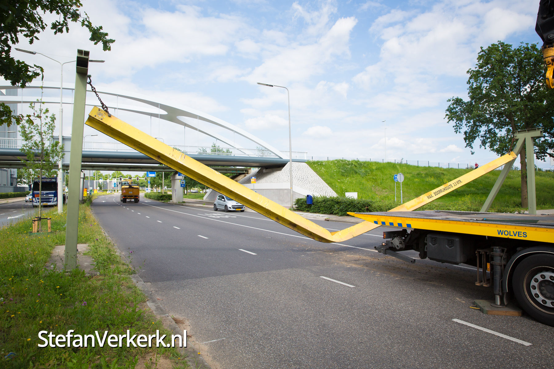 Foto's: Hoogtebalk Blaloweg Zwolle opnieuw kapot gereden
