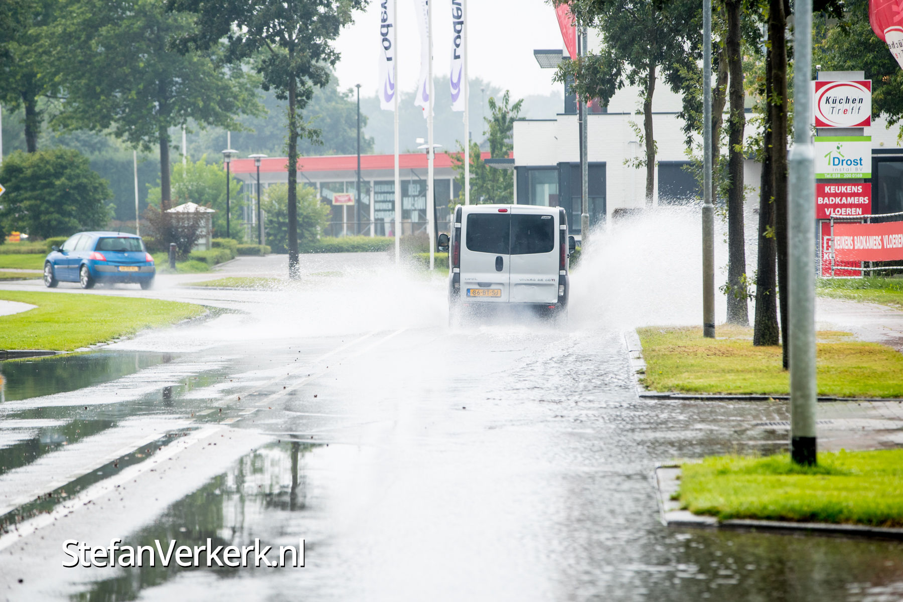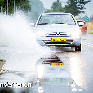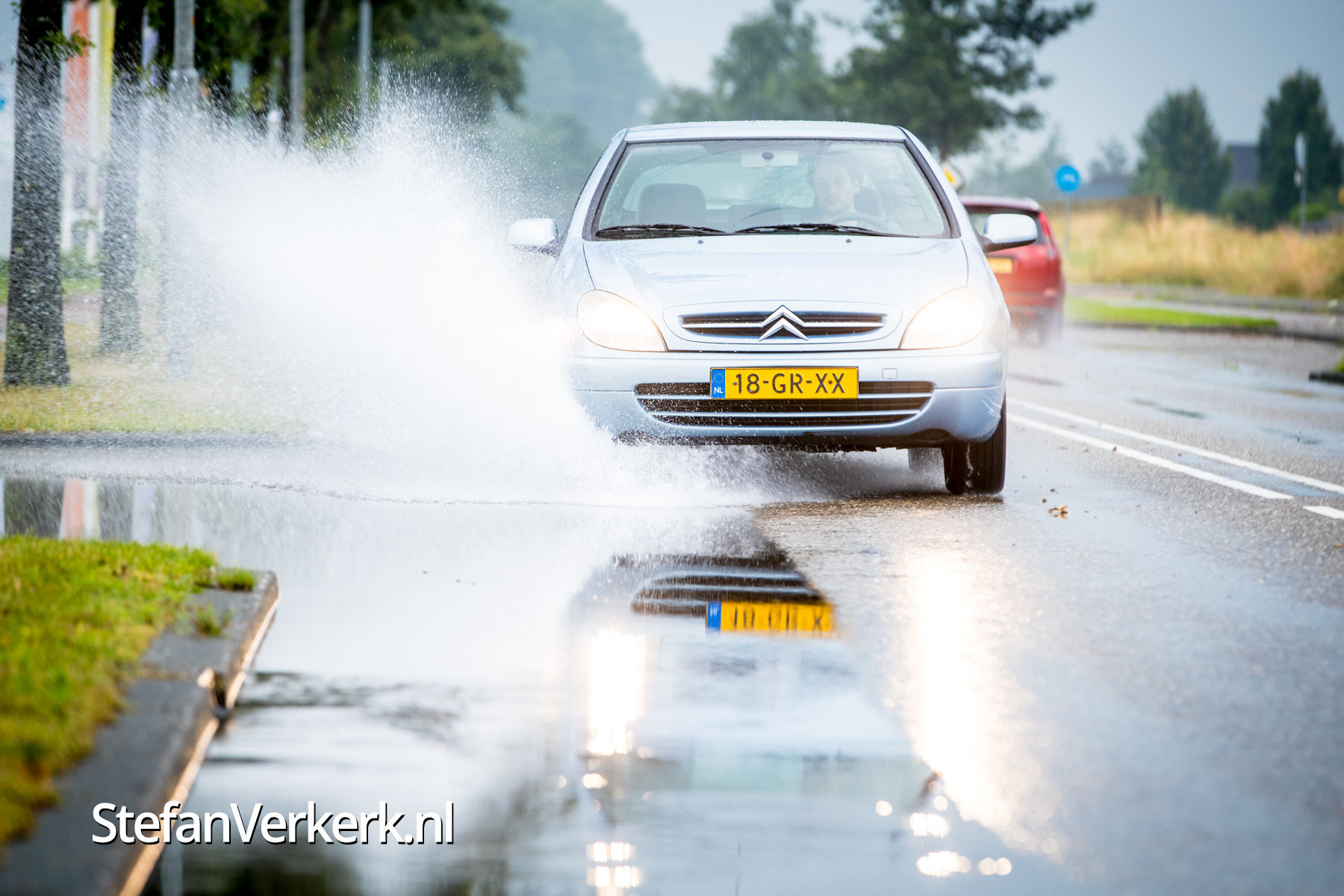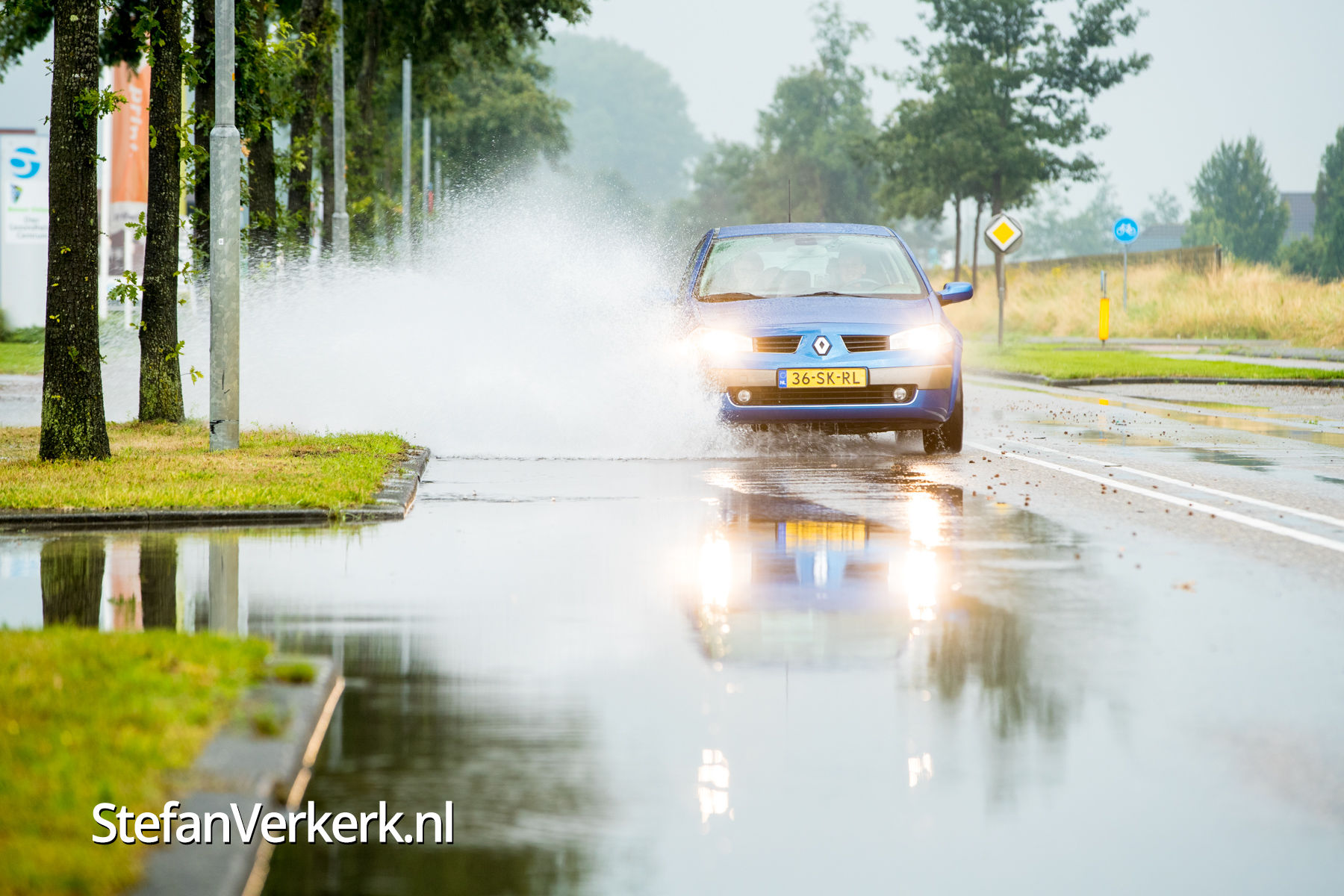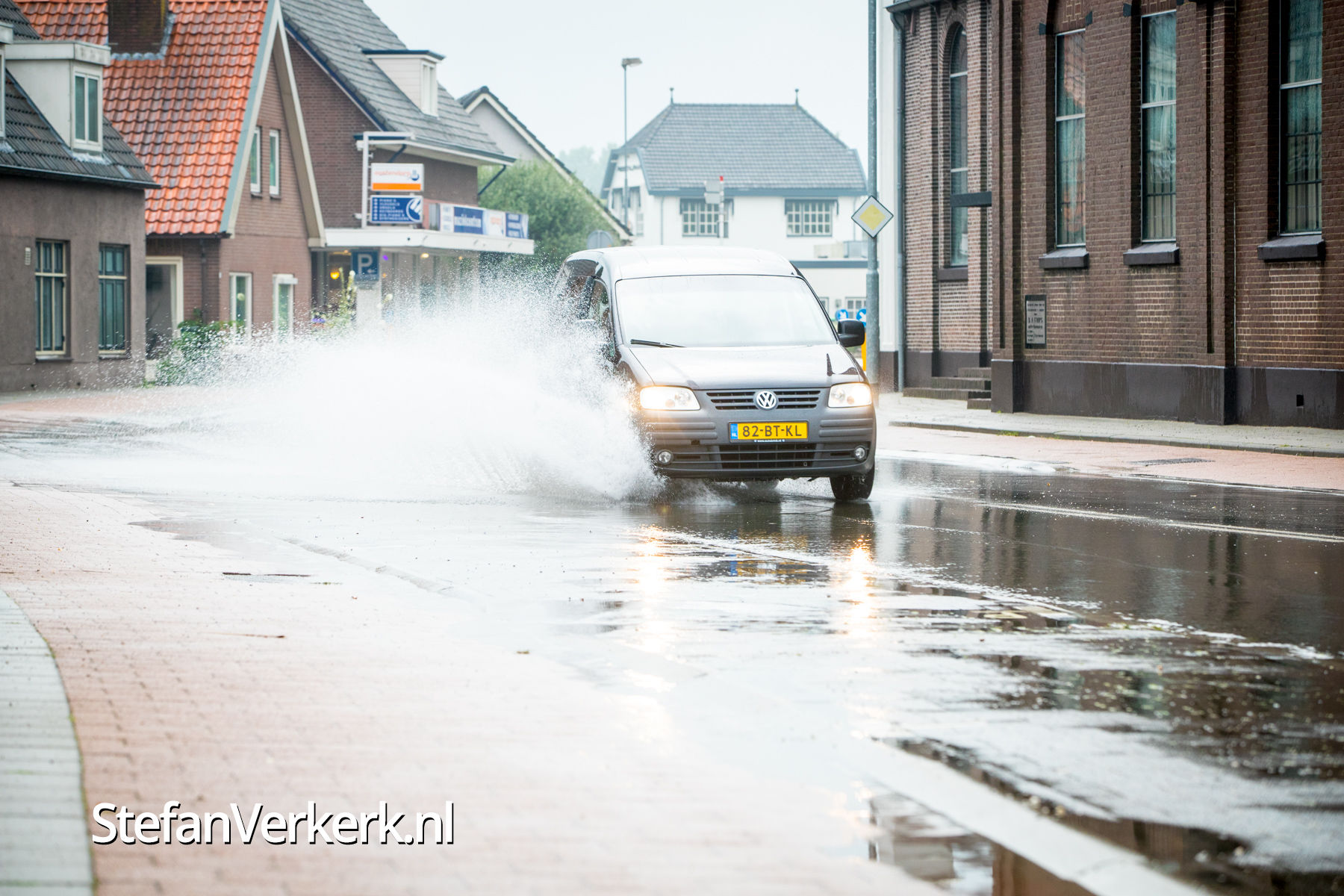 Foto's: Flinke plassen op de weg na hoosbui in Wezep