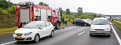 Ongeval auto met caravan in bosjes A28 L 85,1 h knp. Hattemerbroek