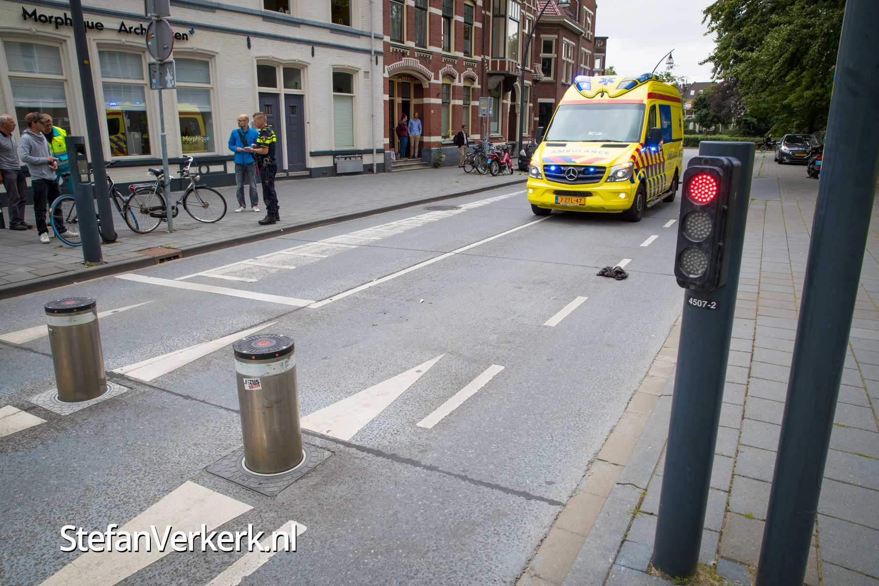 Foto's: Snorfietser botst tegen poller Kerkstraat Zwolle