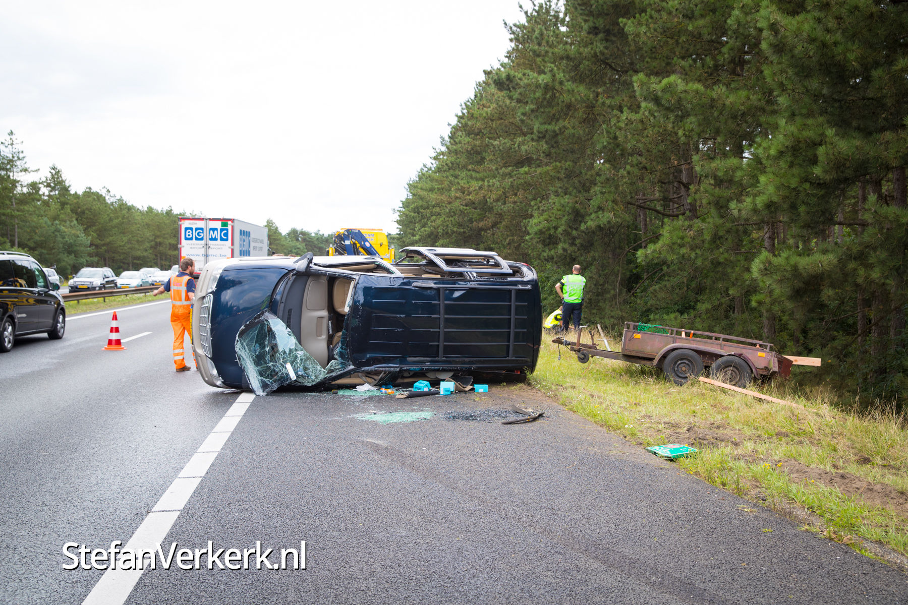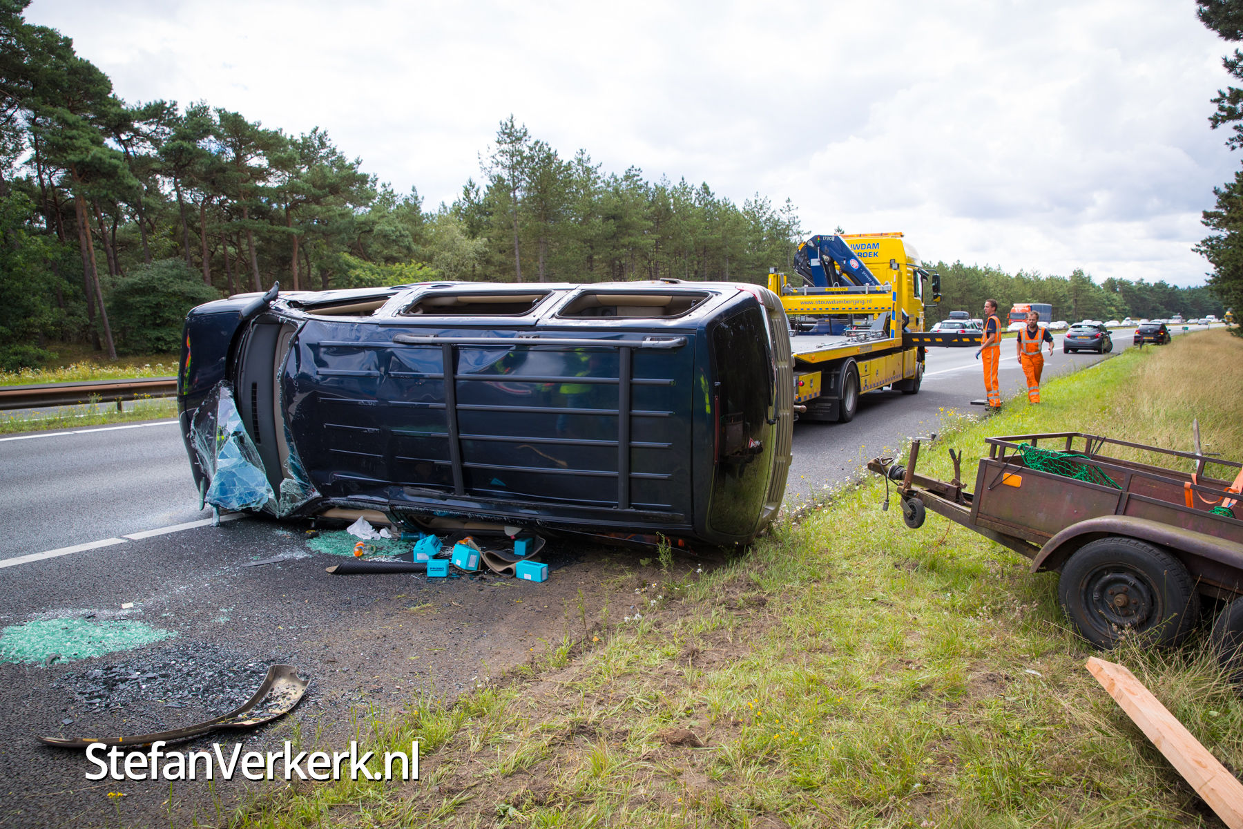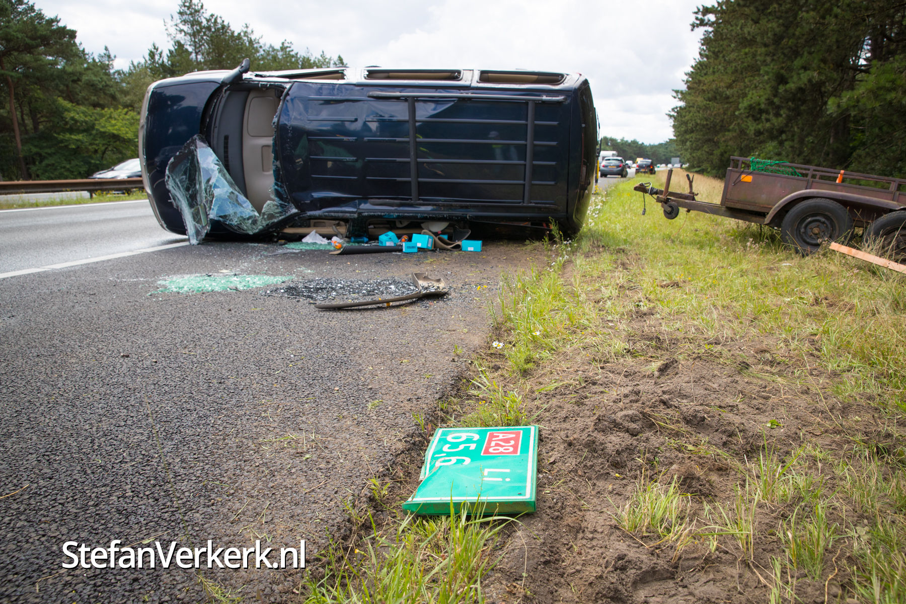 Foto's: Ongeval auto met aanhanger A28 L 66,1 Nunspeet