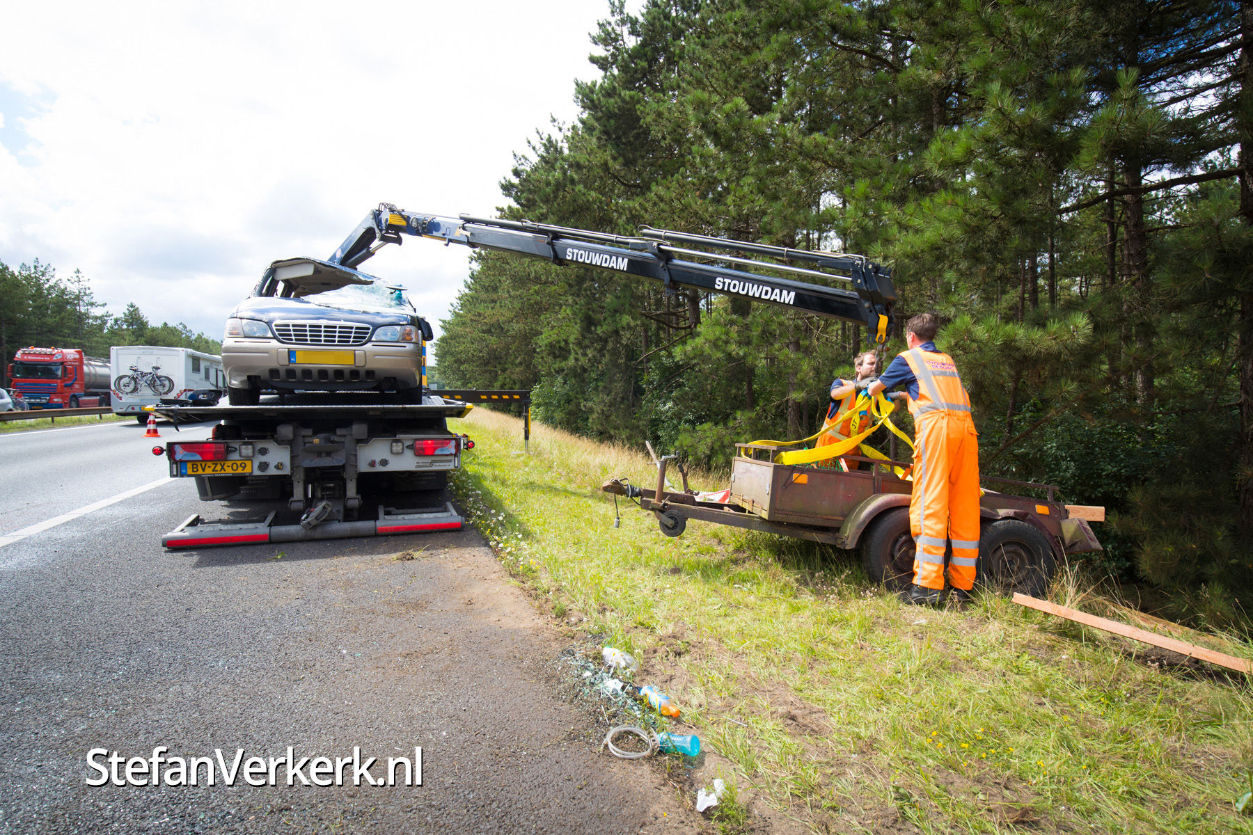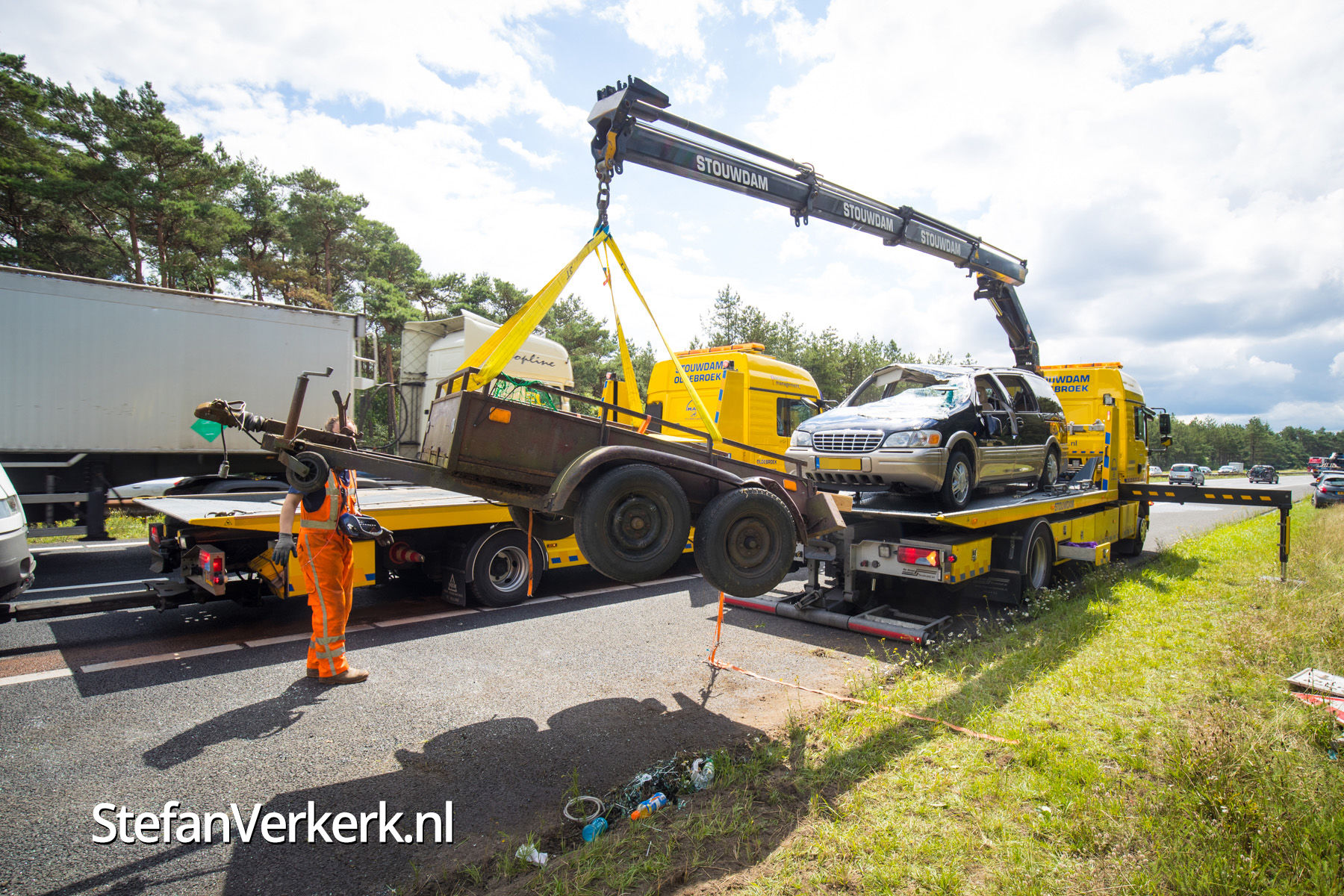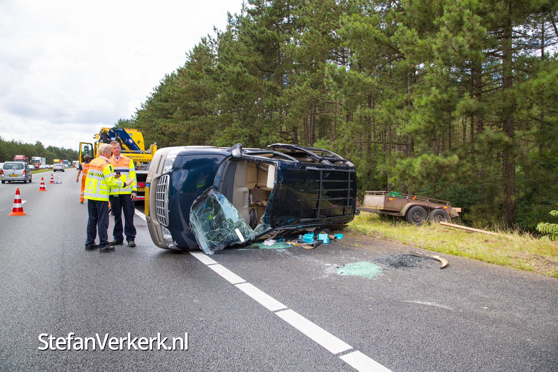 Foto's: Ongeval auto met aanhanger A28 L 66,1 Nunspeet