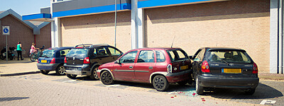 Automobiliste rijdt in op geparkeerde auto's Meidoornstraat Wezep