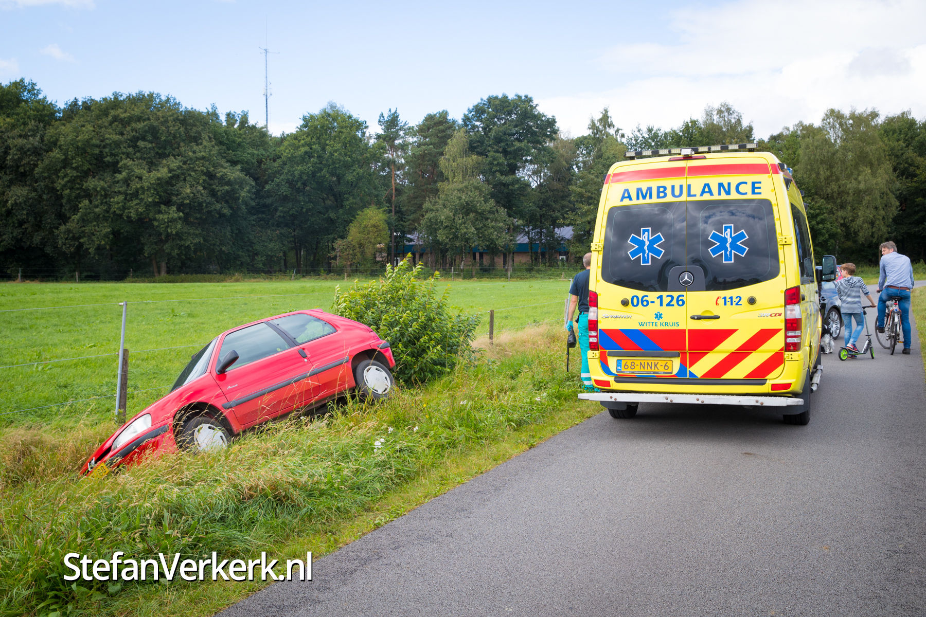 Foto's: Ongeval auto in droge sloot De Rolders Wapenveld