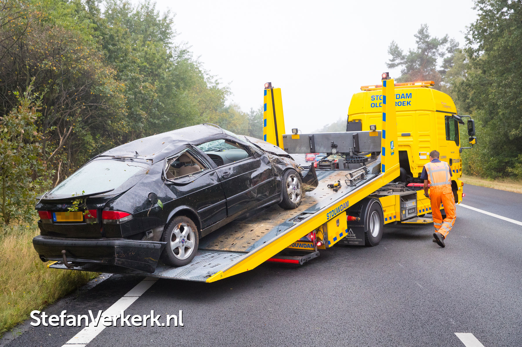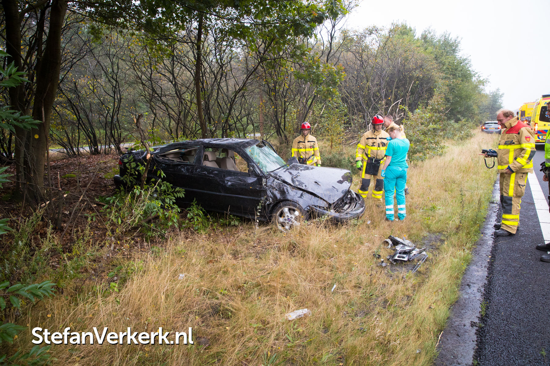 Foto's: Ongeval auto over de kop A28 L 75,7 thv Oldebroek