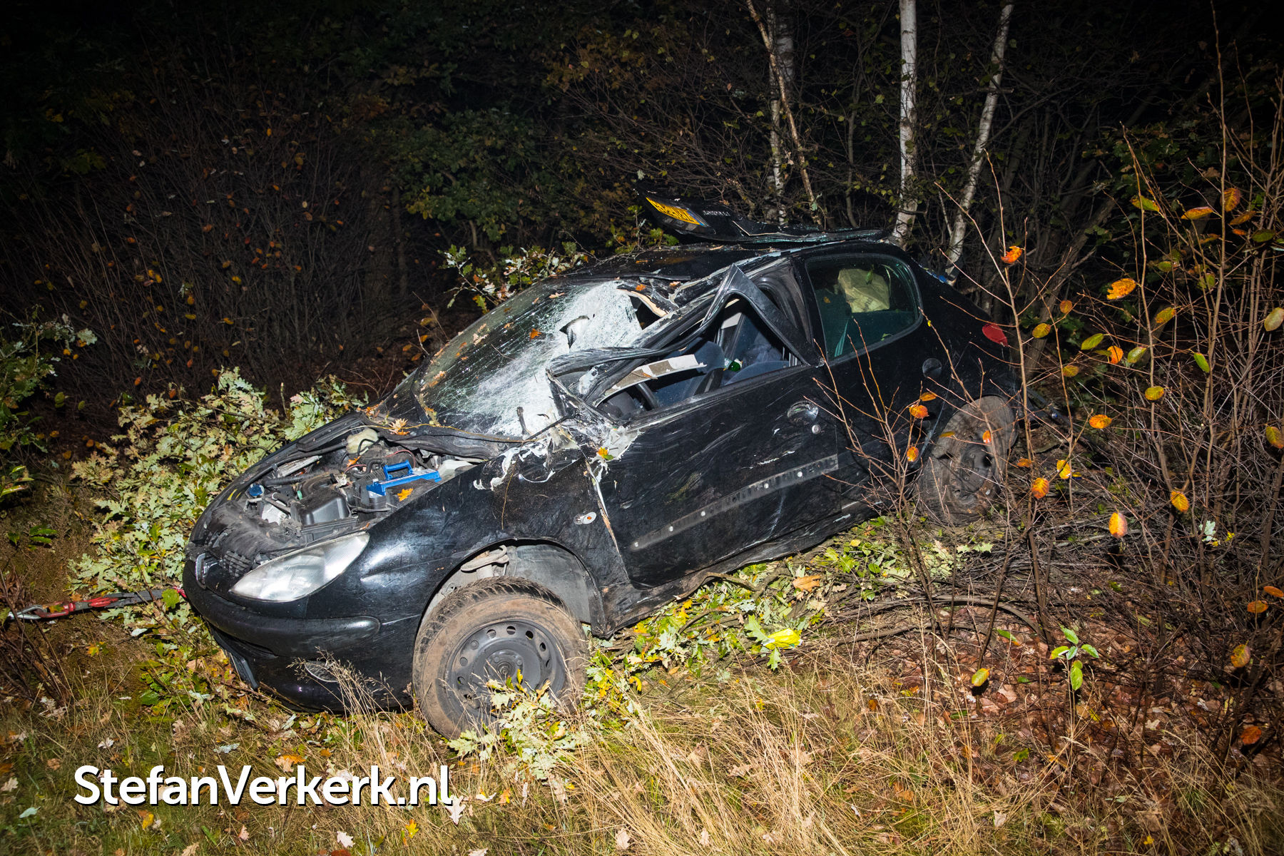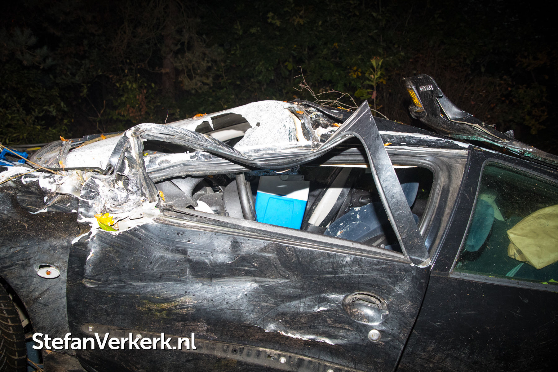 Foto's: Auto over de kop A28 L 76,4 Wezep - 't Harde