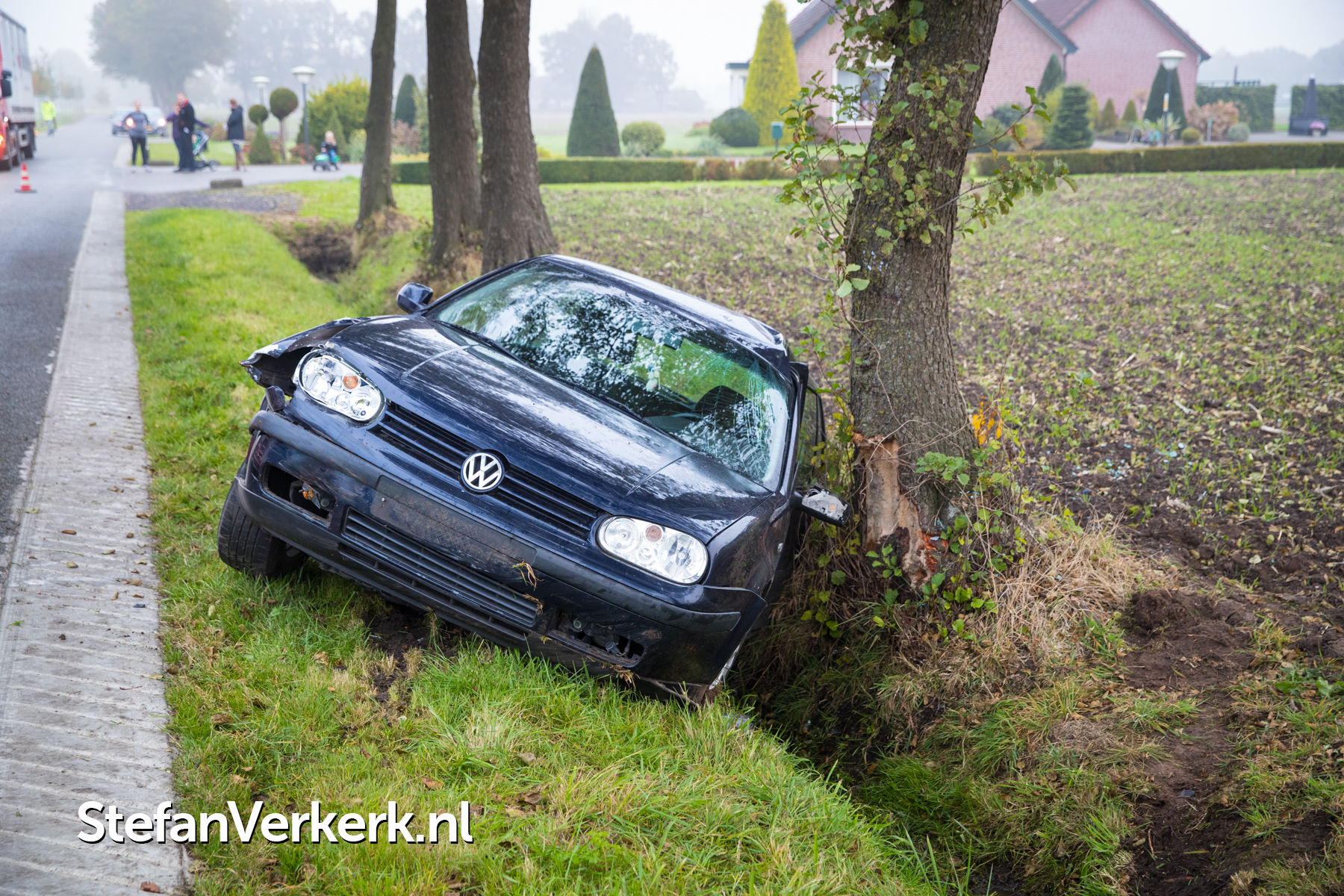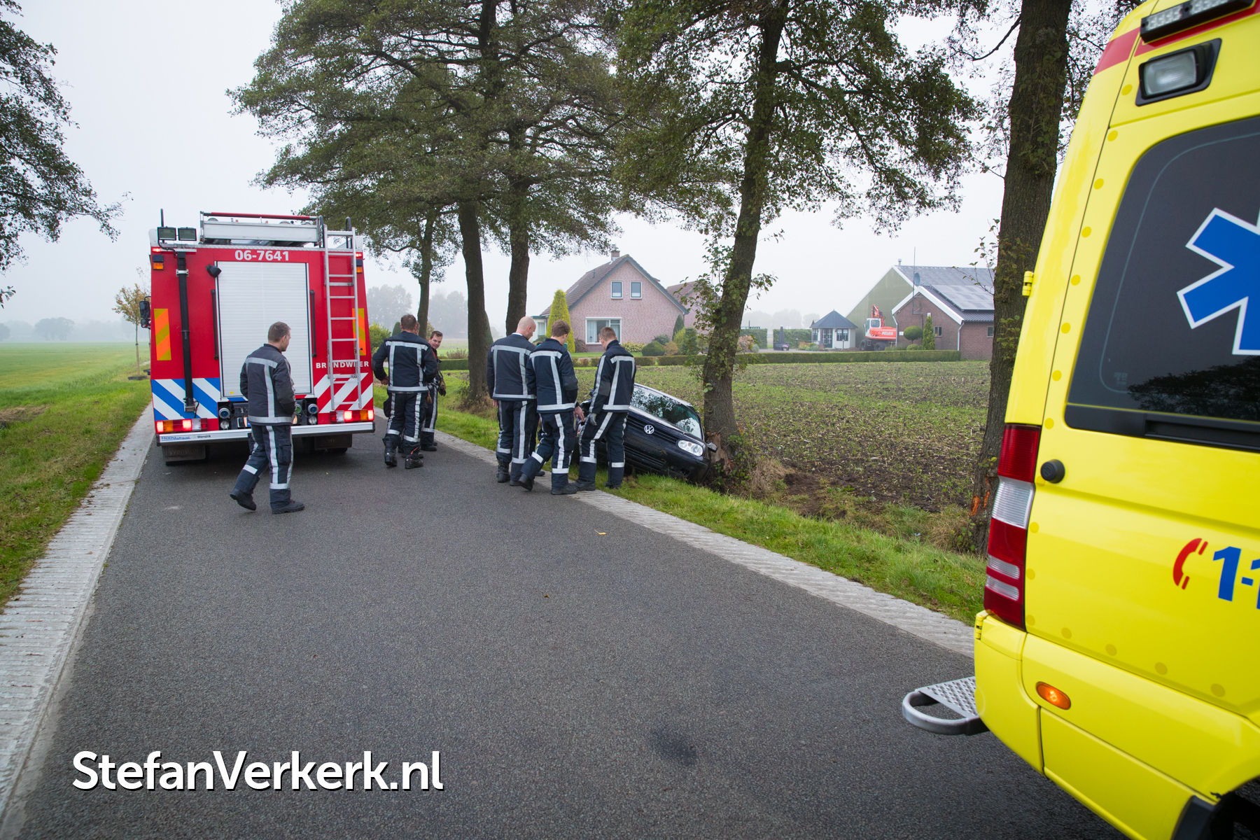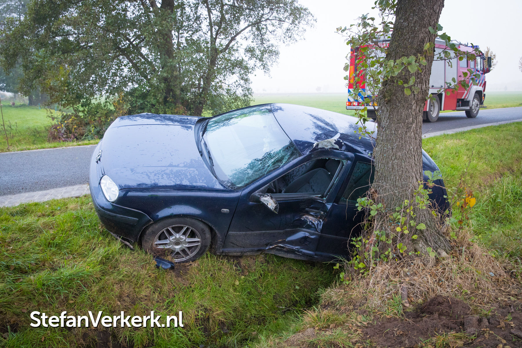 Foto's: Ongeval auto tegen boom Bremensallee Oene