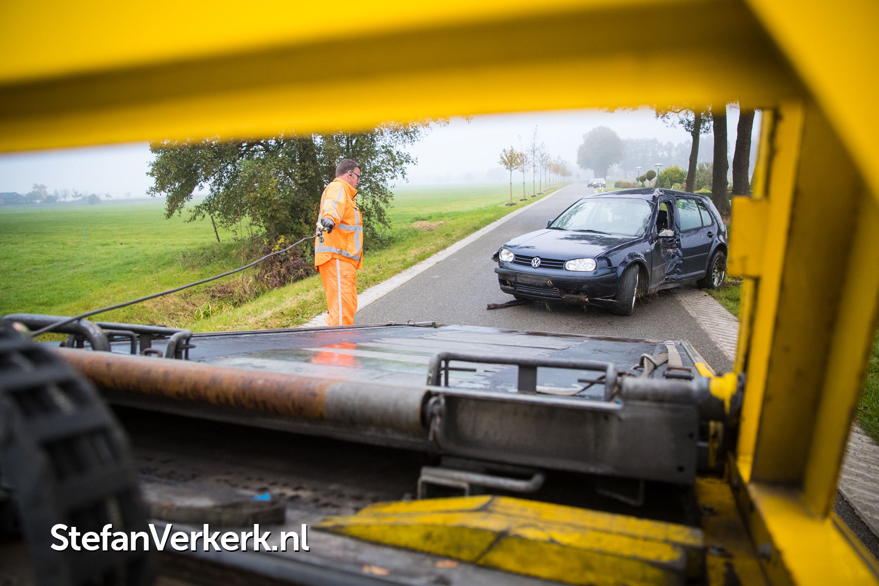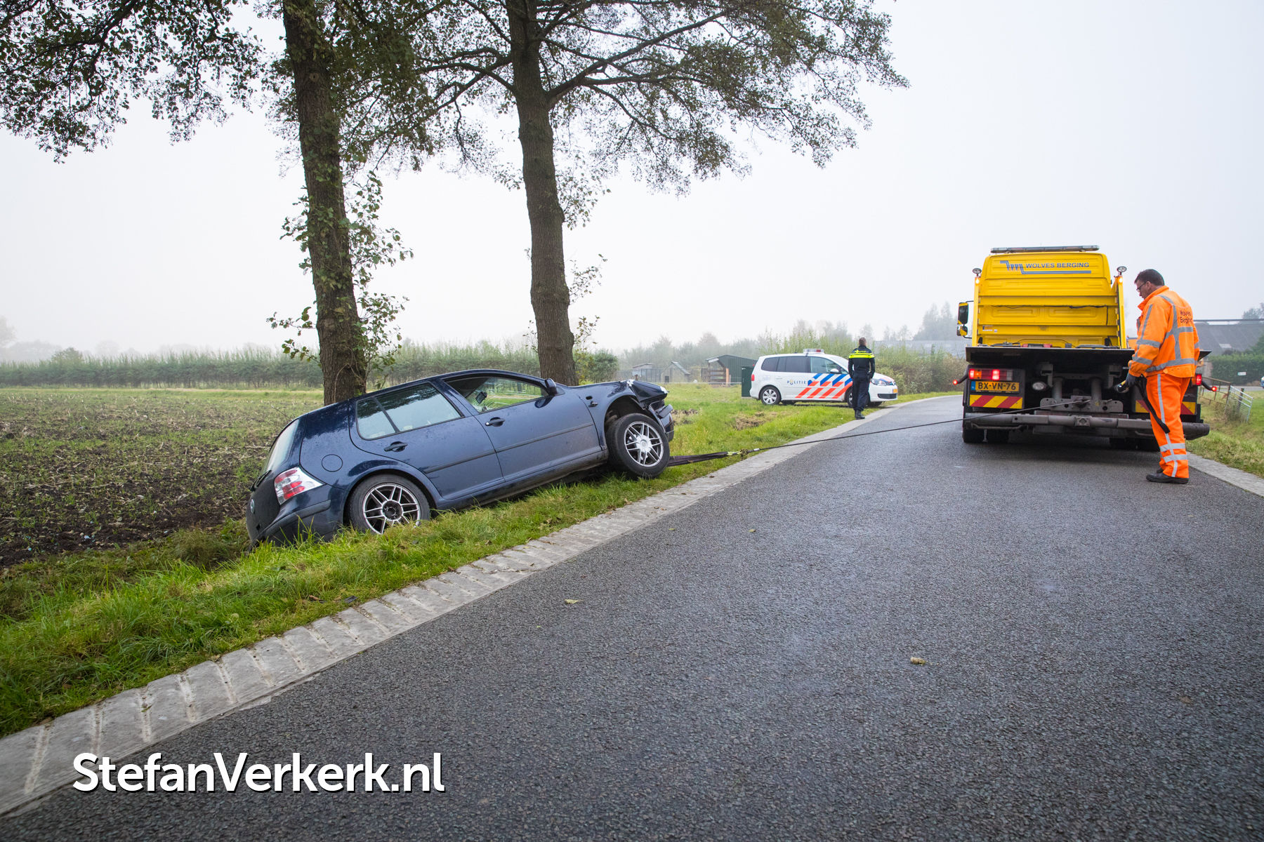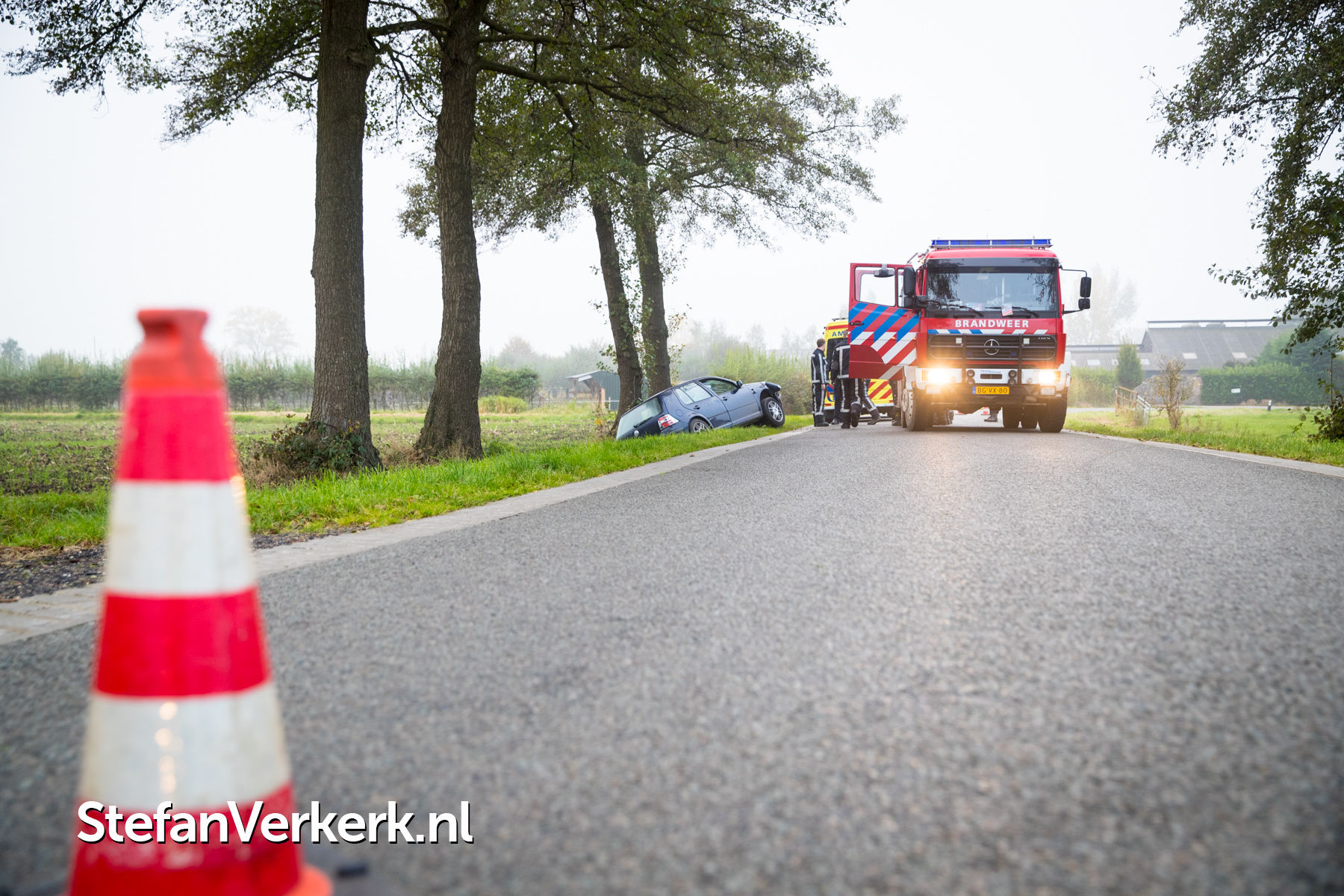 Foto's: Ongeval auto tegen boom Bremensallee Oene