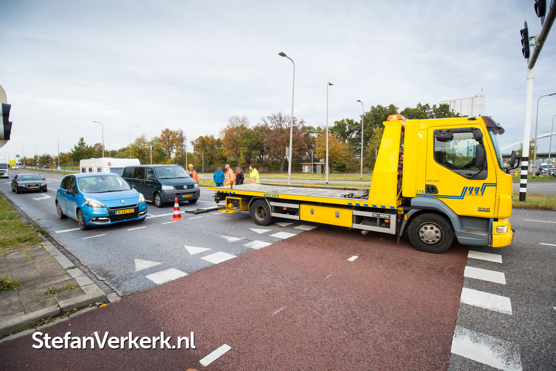 Auto's botsen tegen stempel kraan op N50 bij Kampen