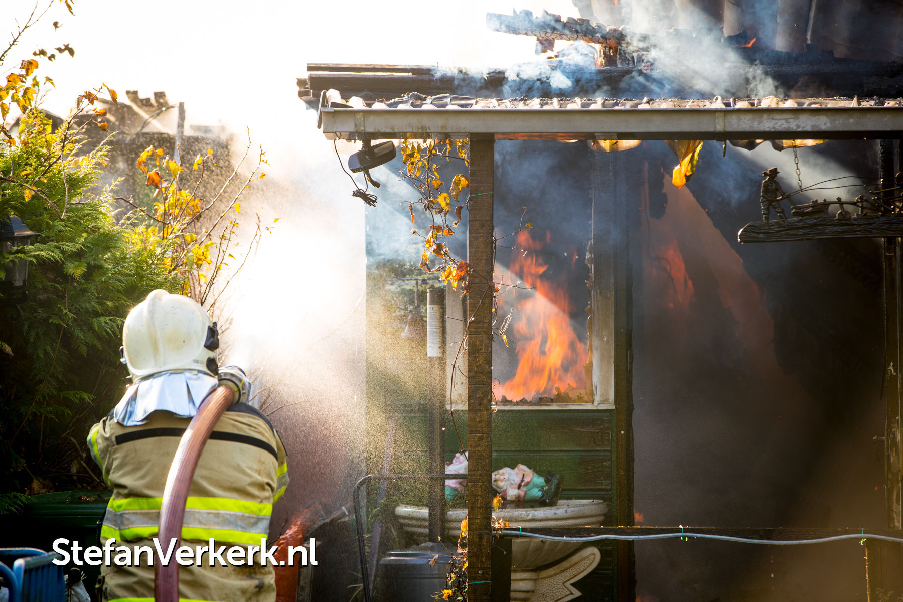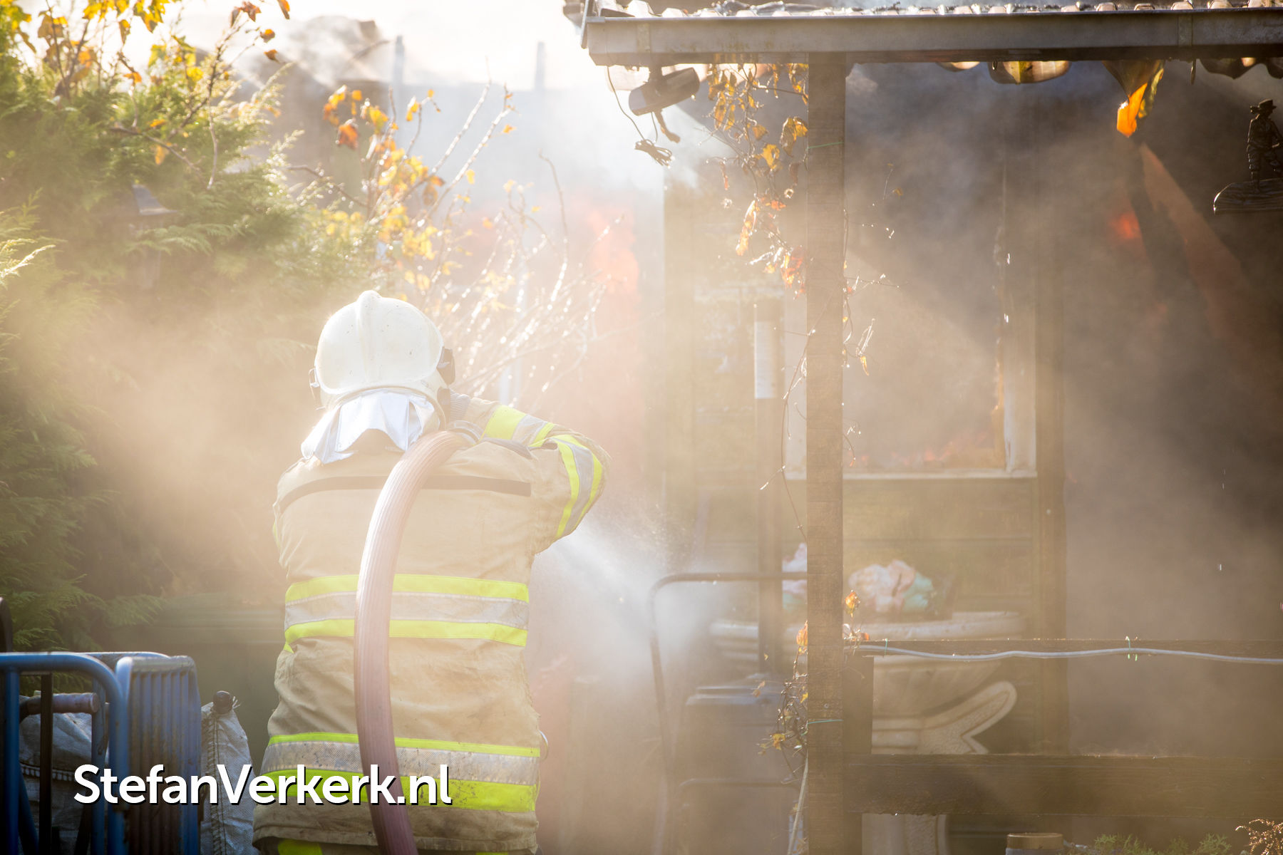 Foto's: Tuinhuisje in brand op volkstuinencomplex De Tuinen in Kampen