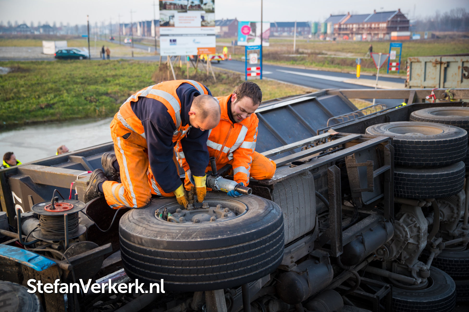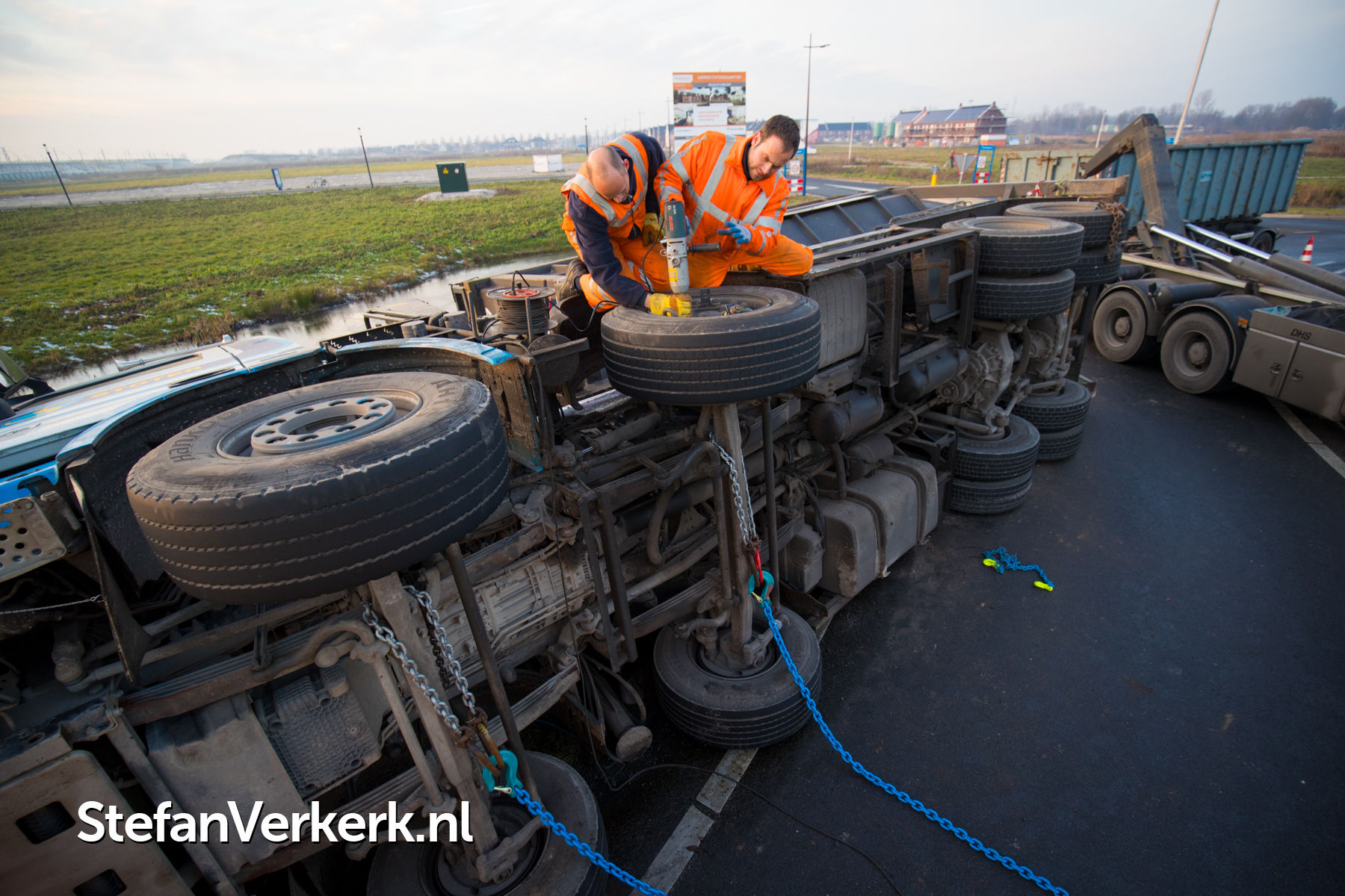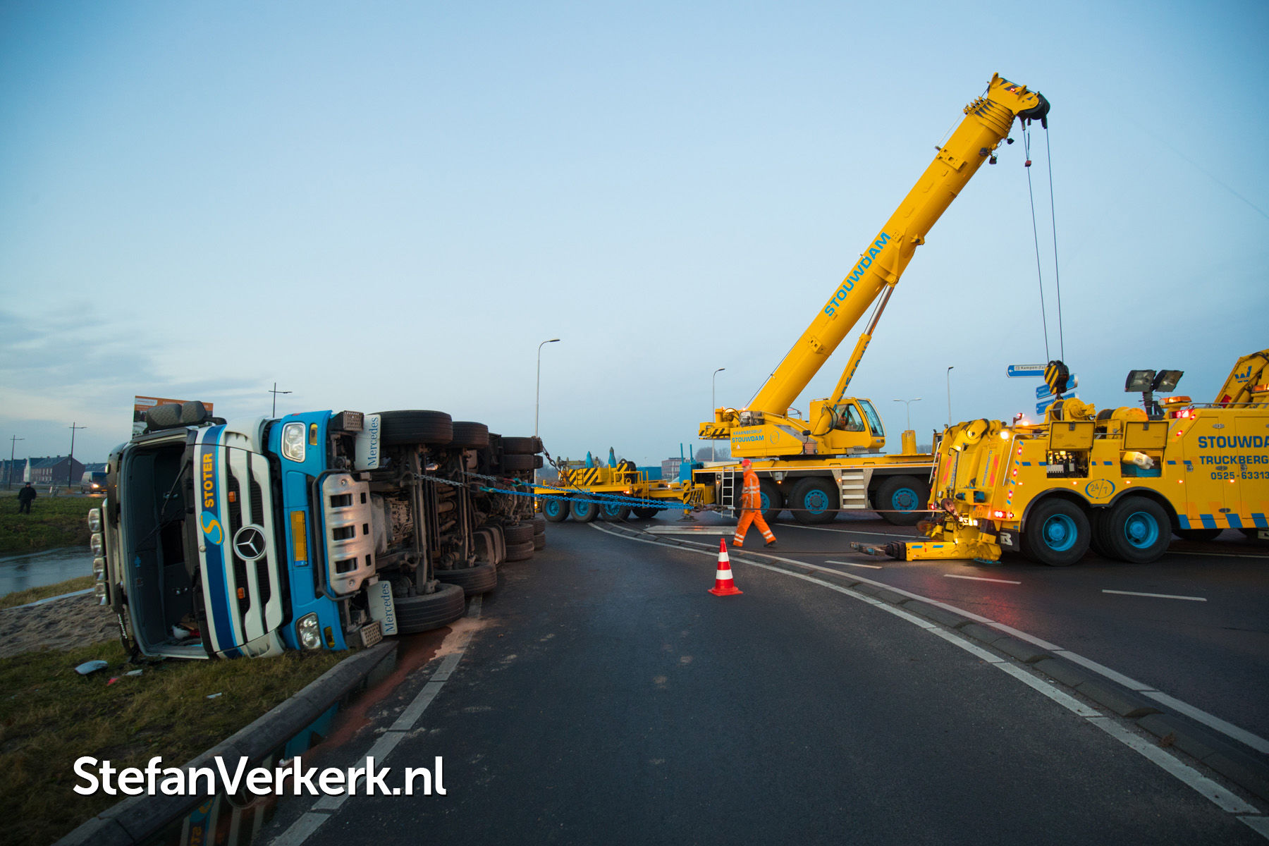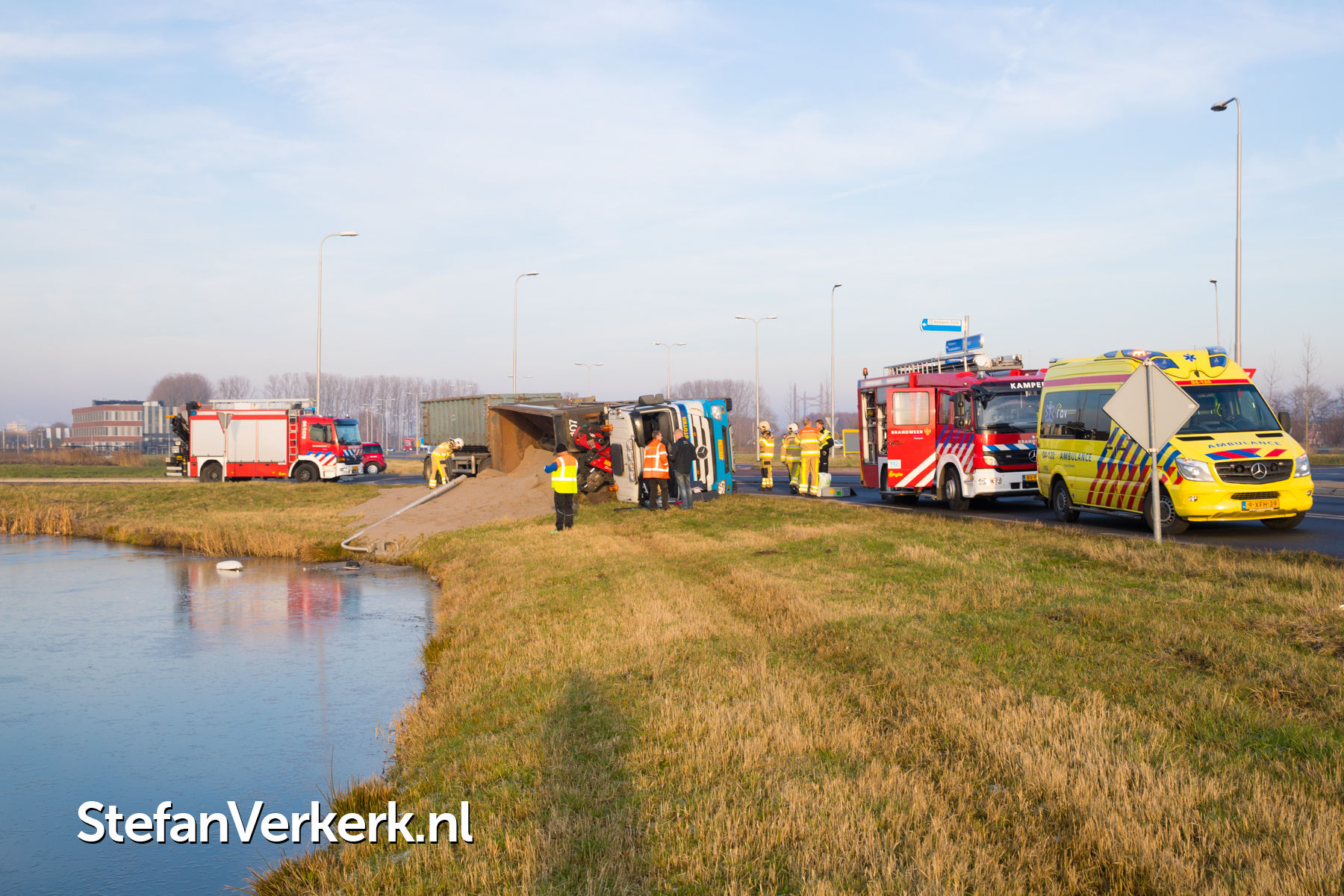 Foto's: Gekantelde vrachtwagen Mr J.L.M. Niersallee Kampen