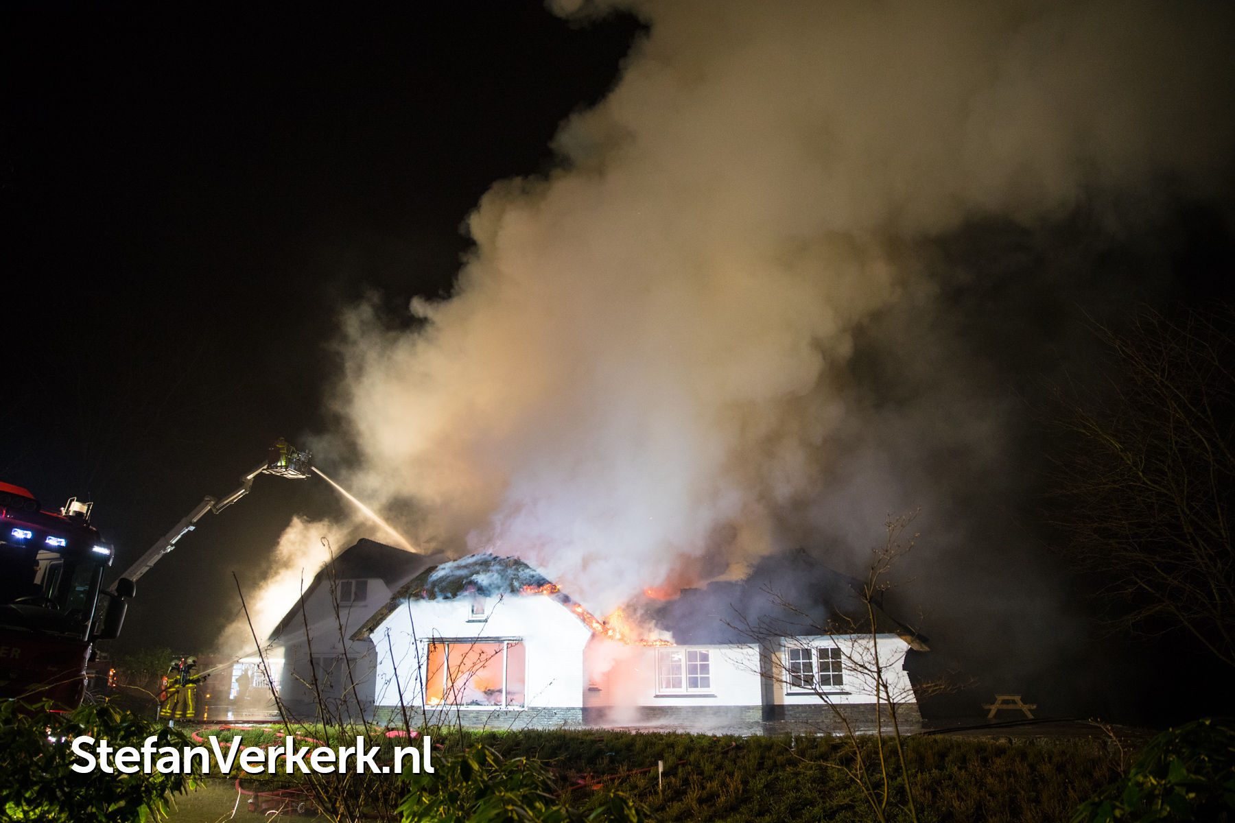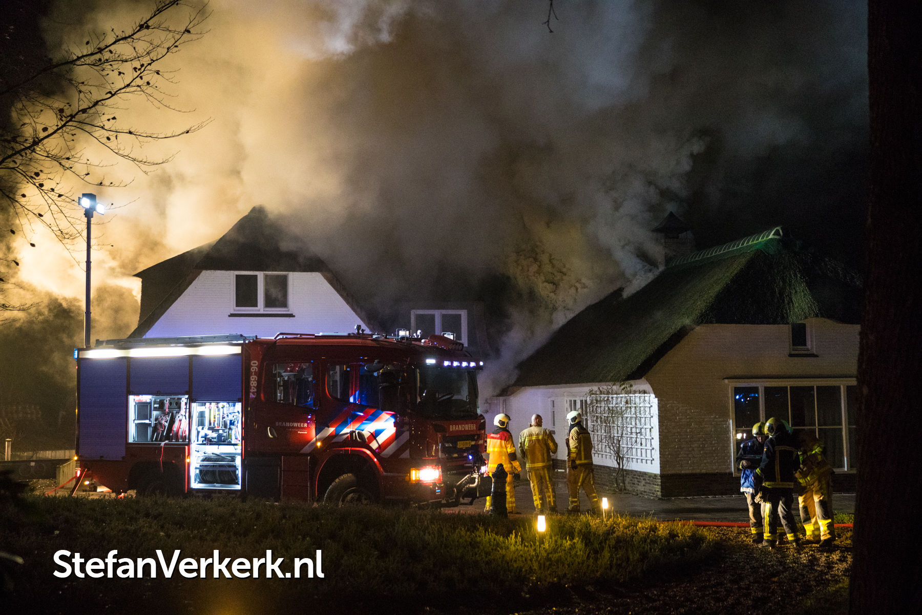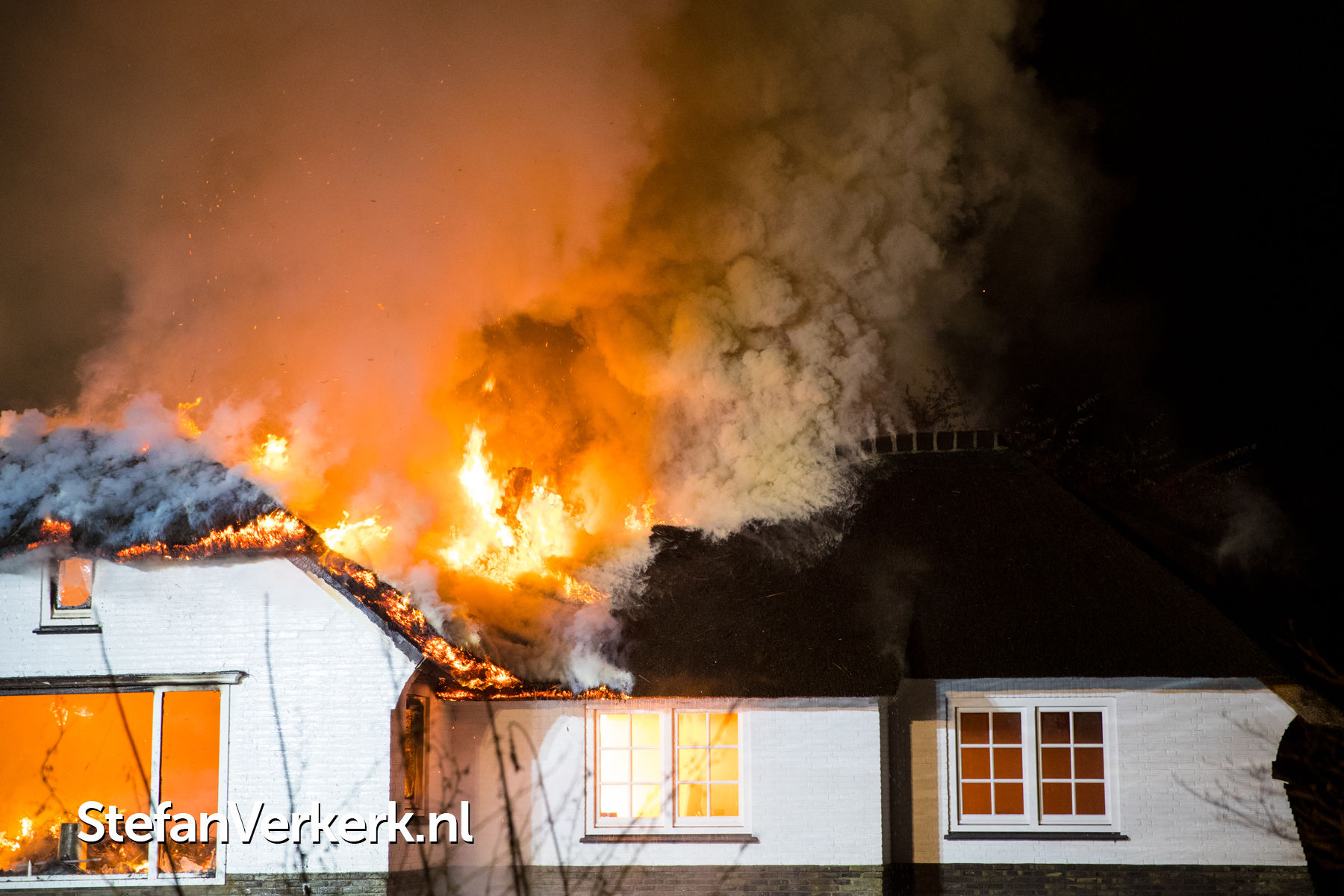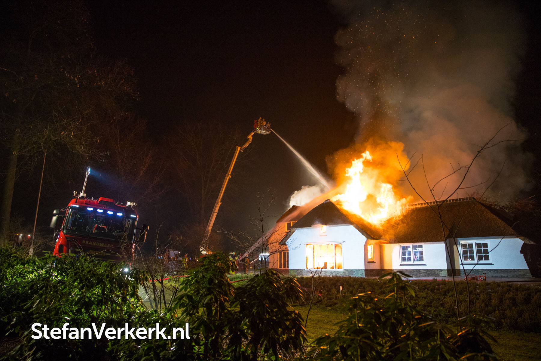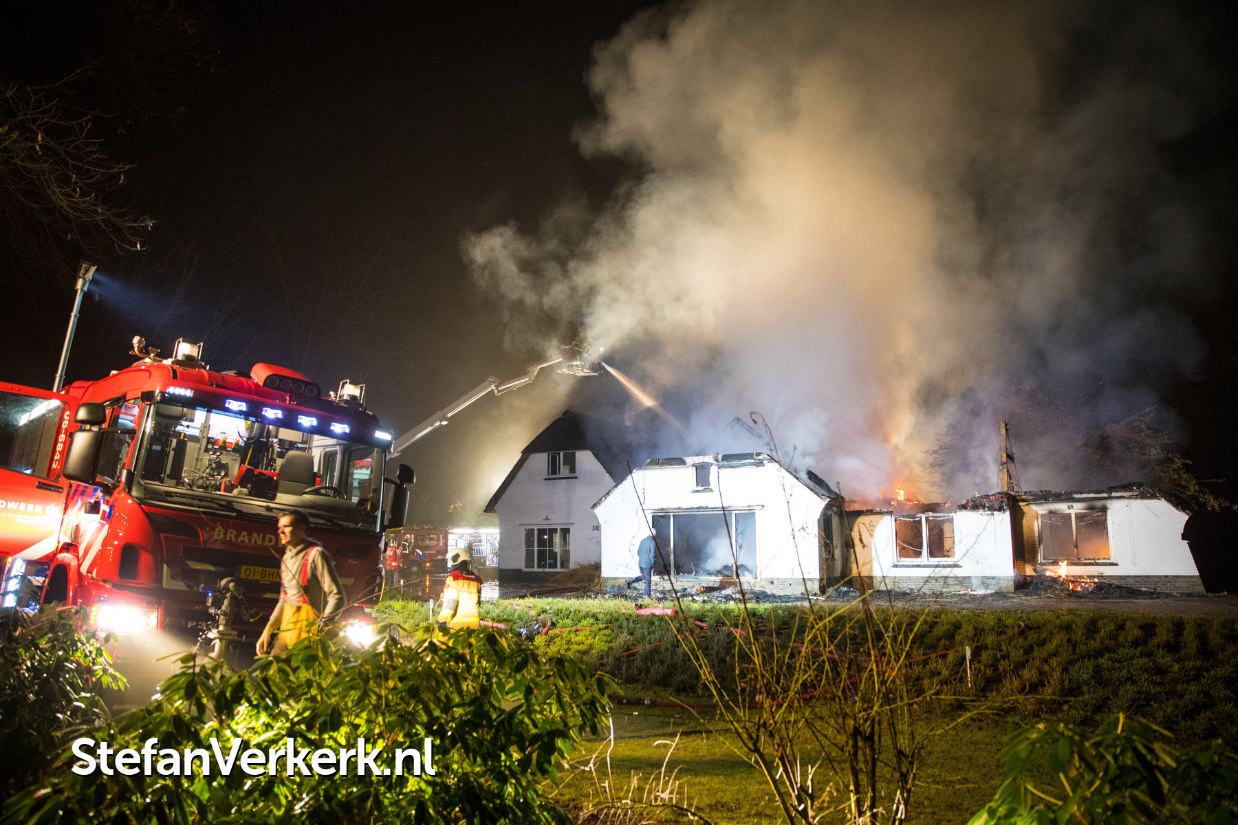 Foto's: Grote brand verwoest rietgedekte woning Burgemeester Honcooplaan Hattem