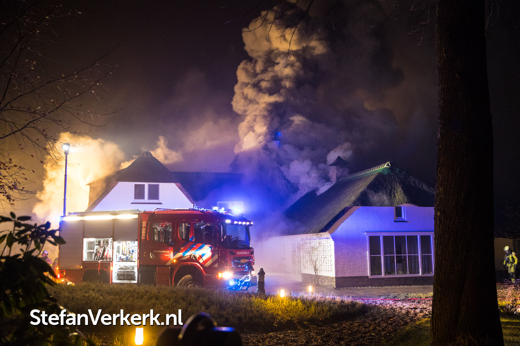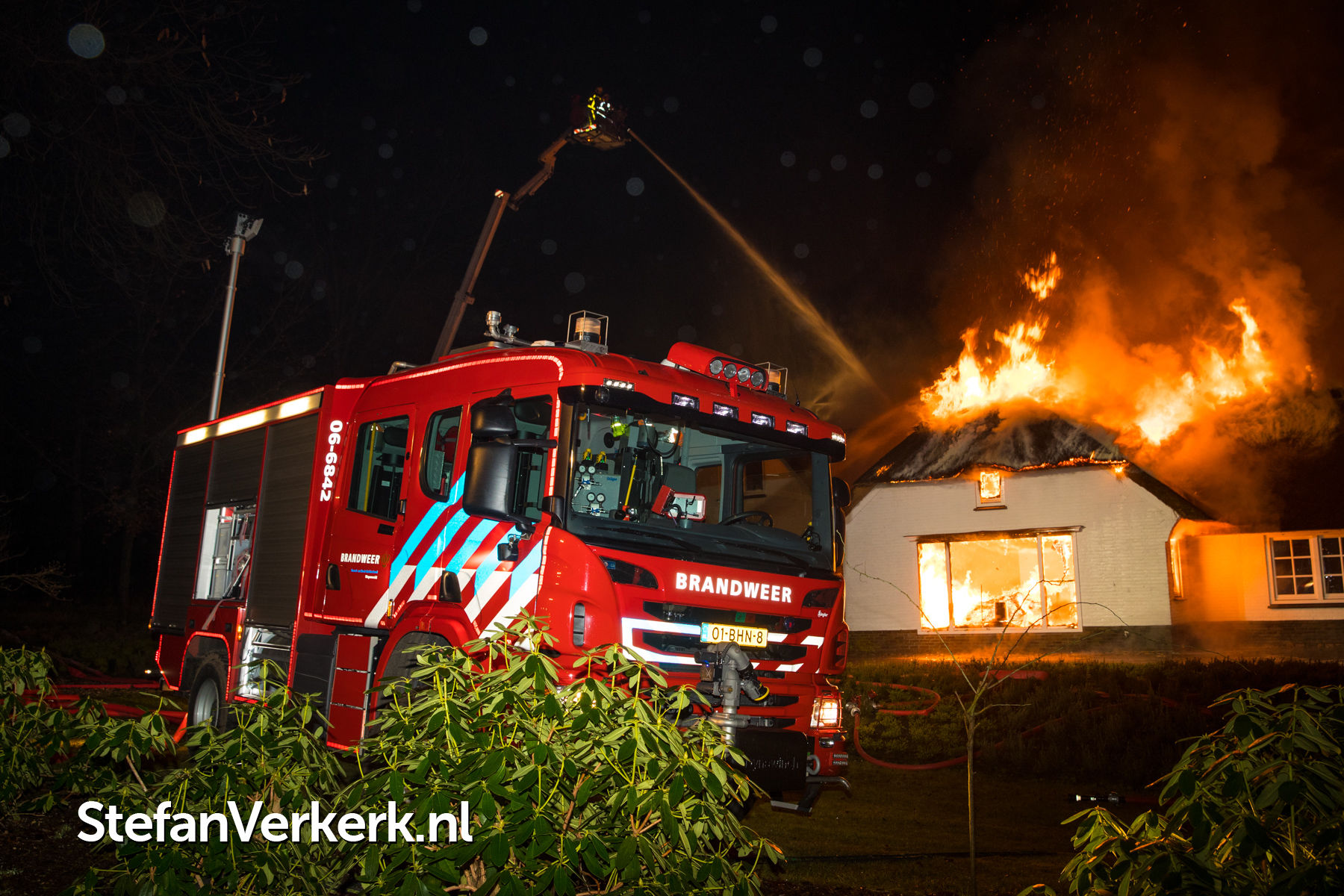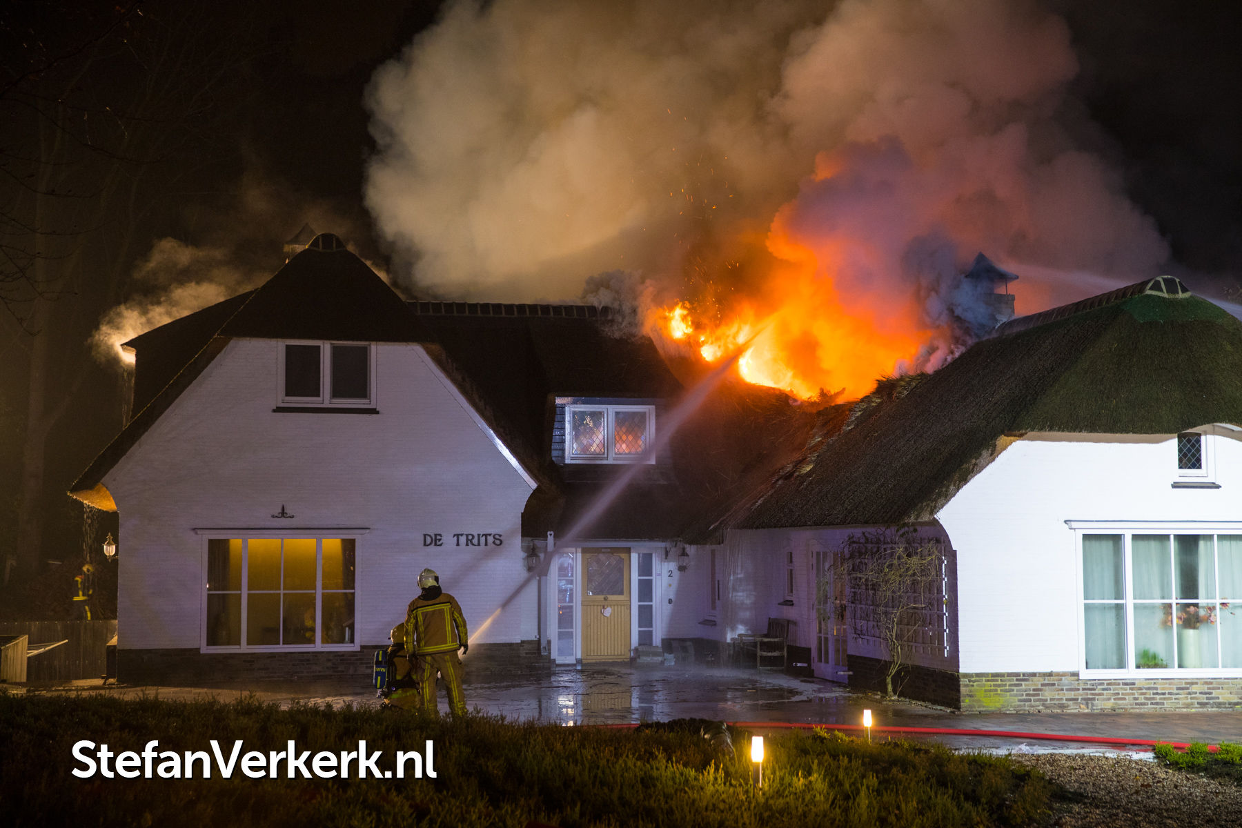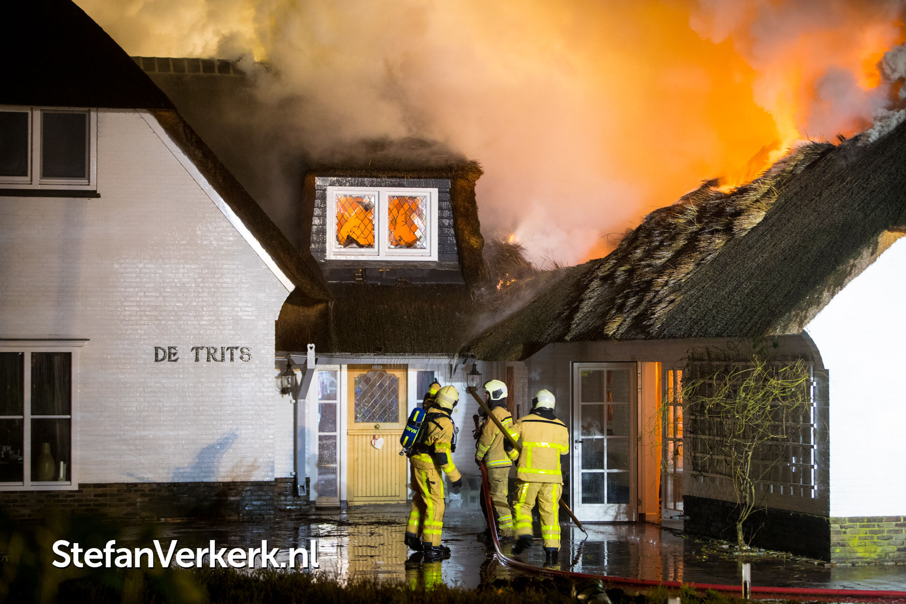 Foto's: Grote brand verwoest rietgedekte woning Burgemeester Honcooplaan Hattem