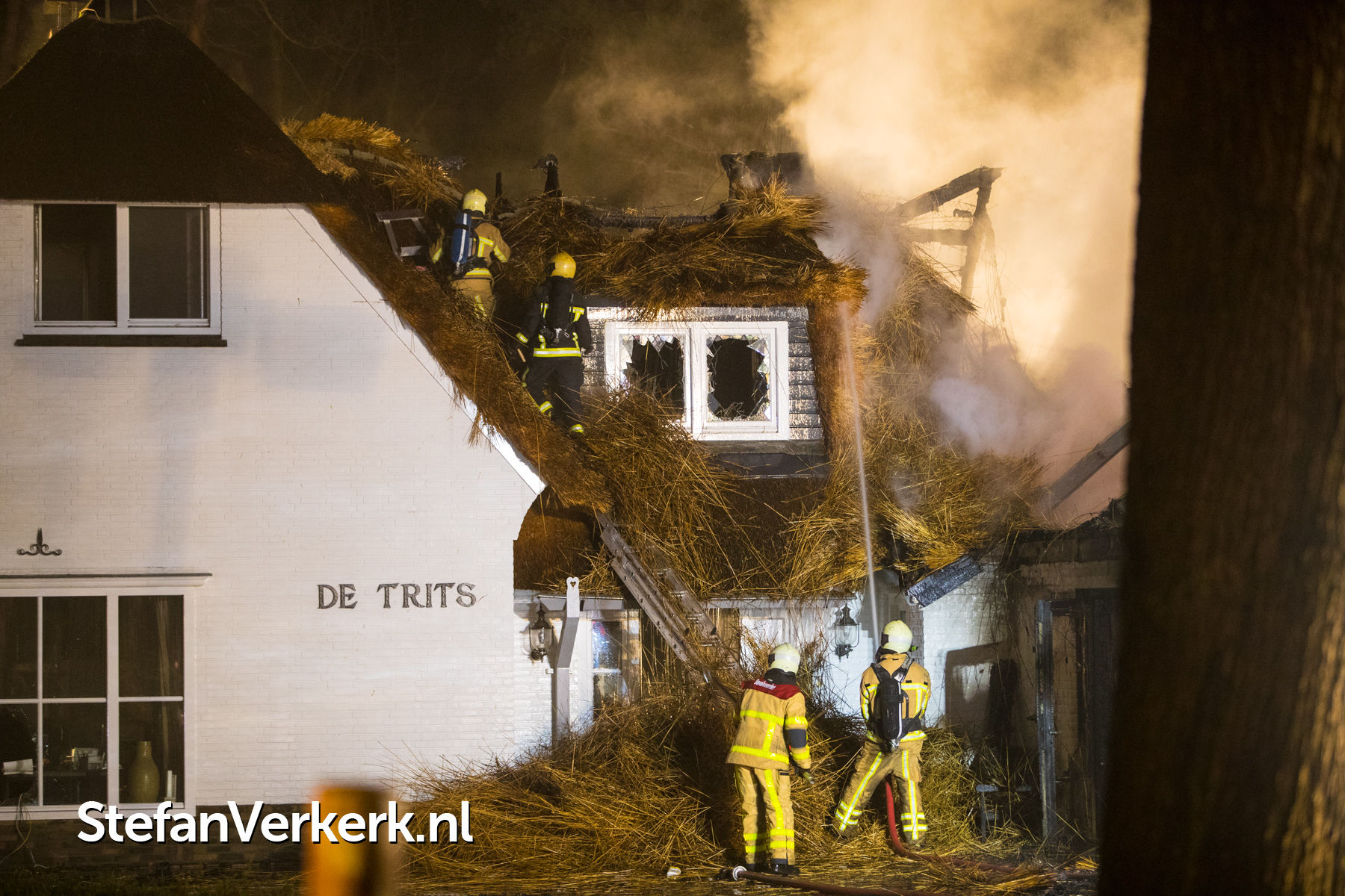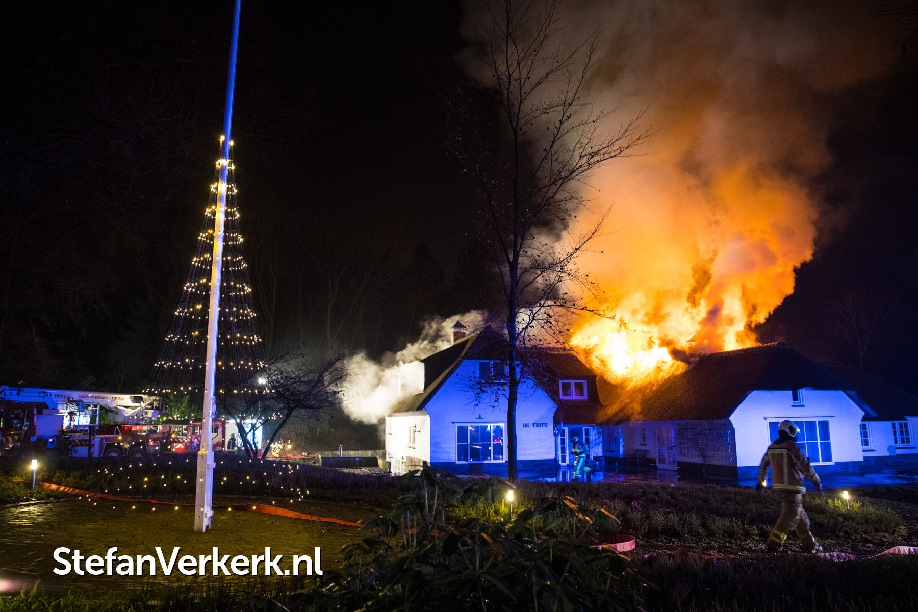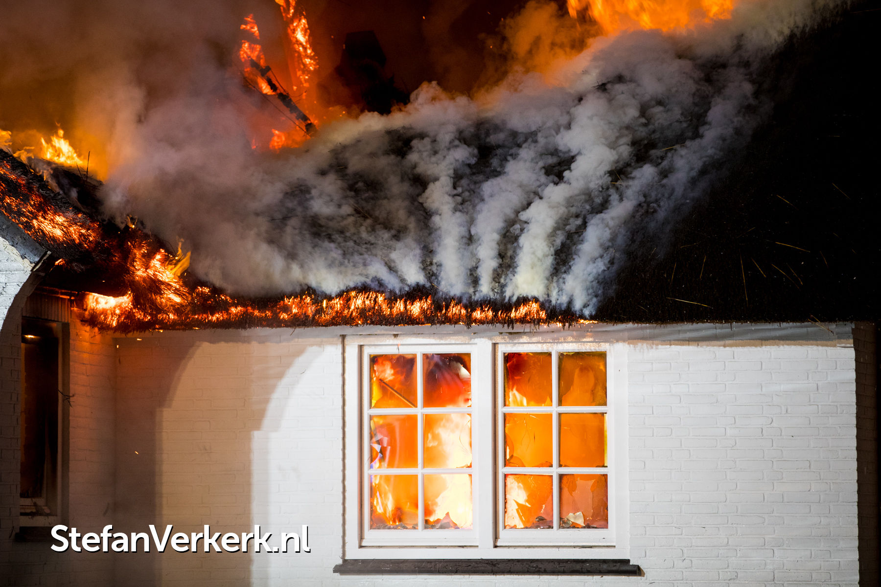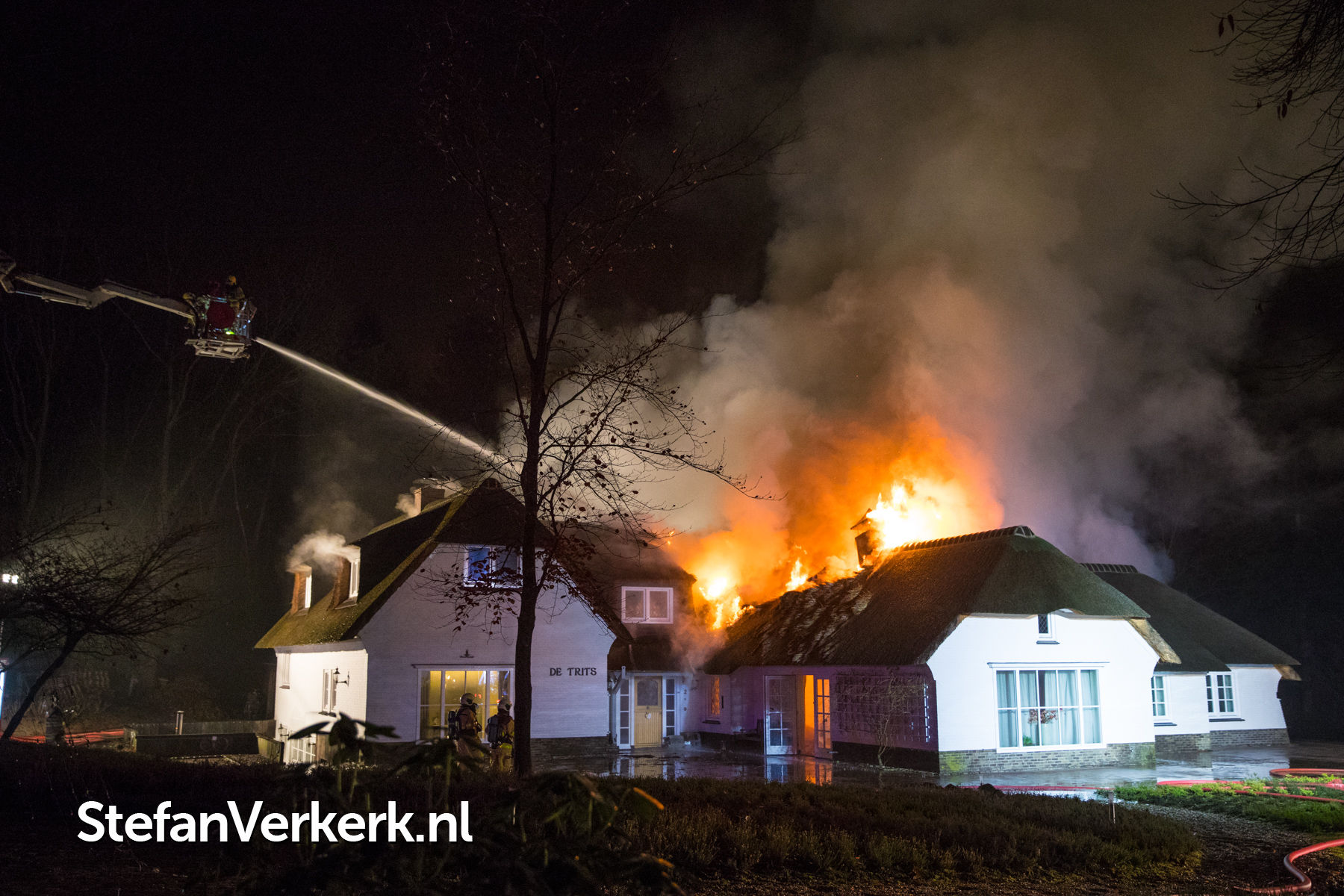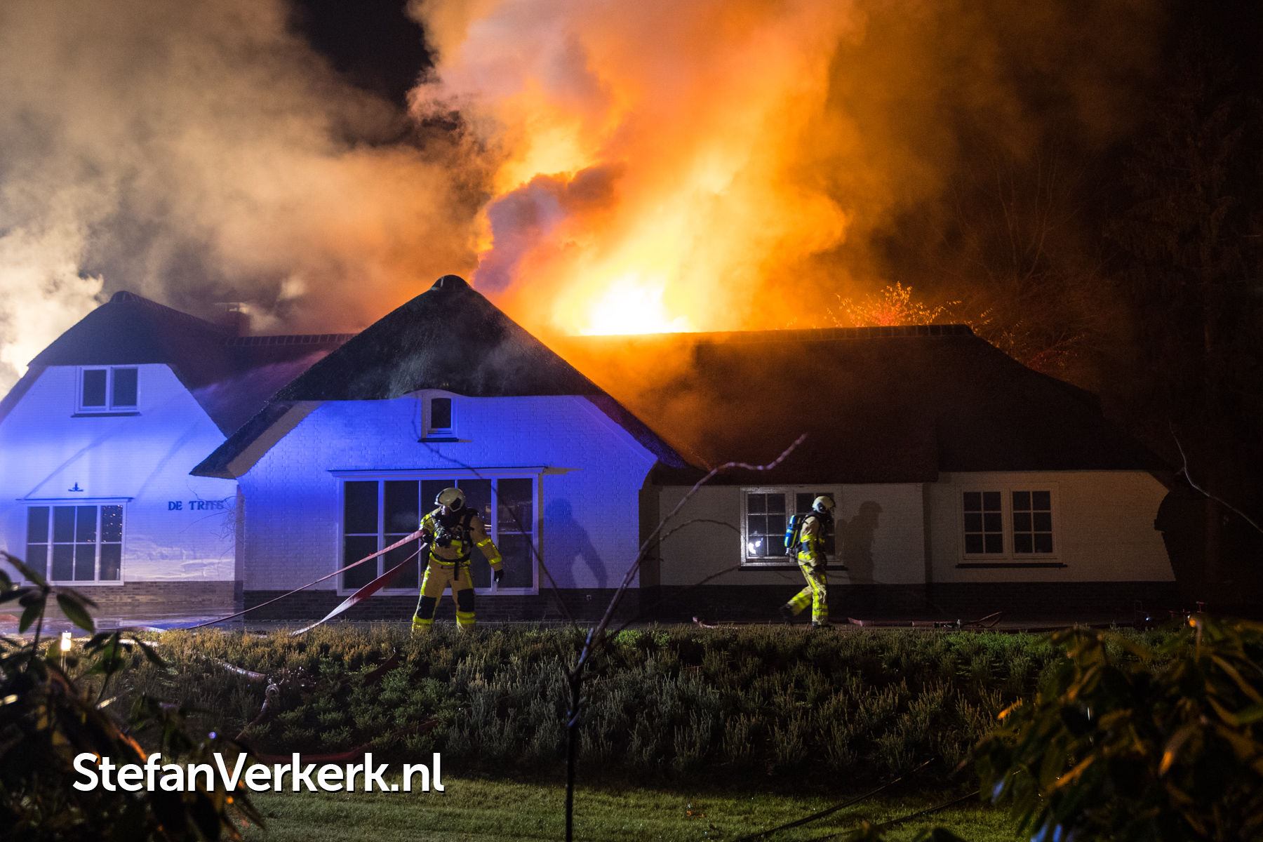 Foto's: Grote brand verwoest rietgedekte woning Burgemeester Honcooplaan Hattem