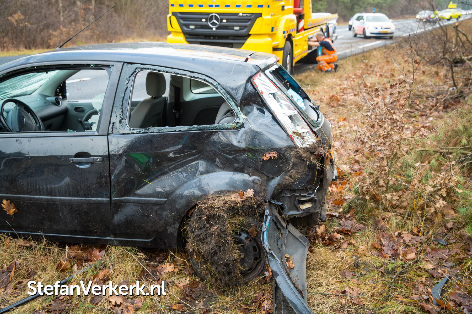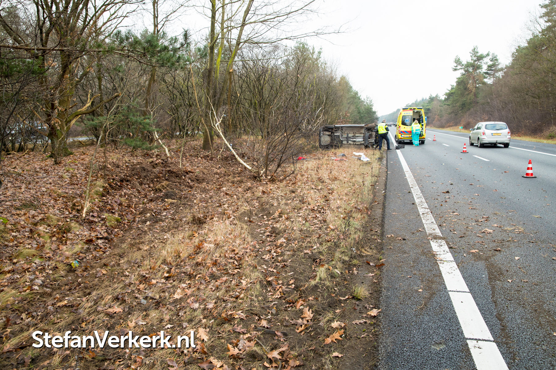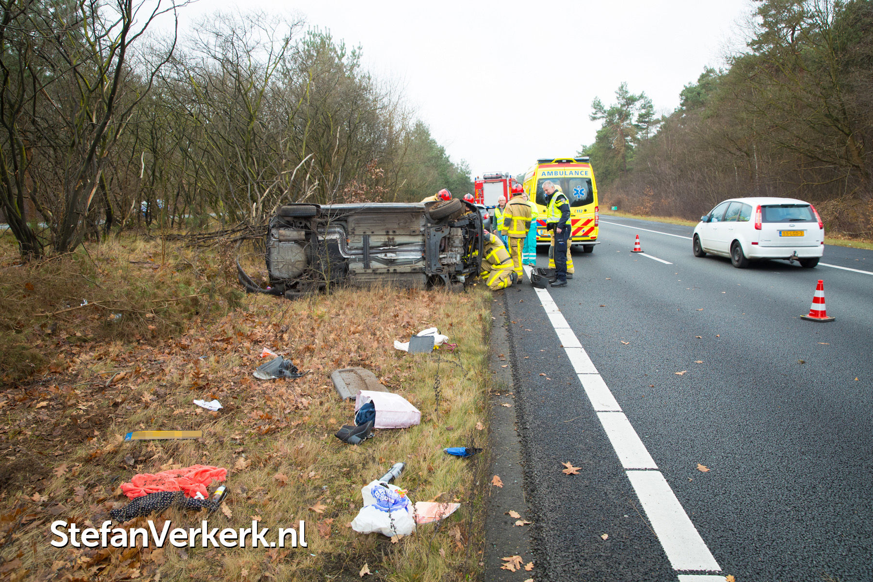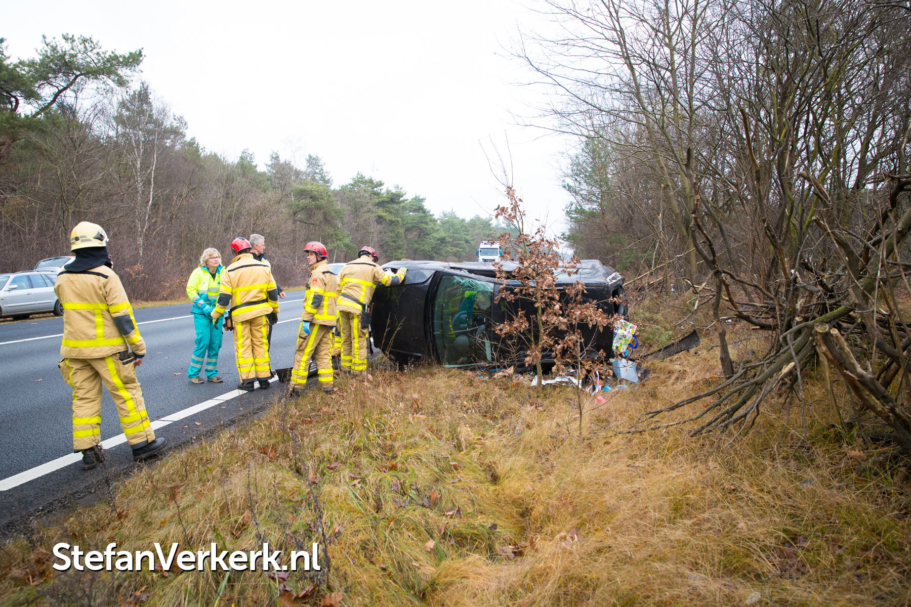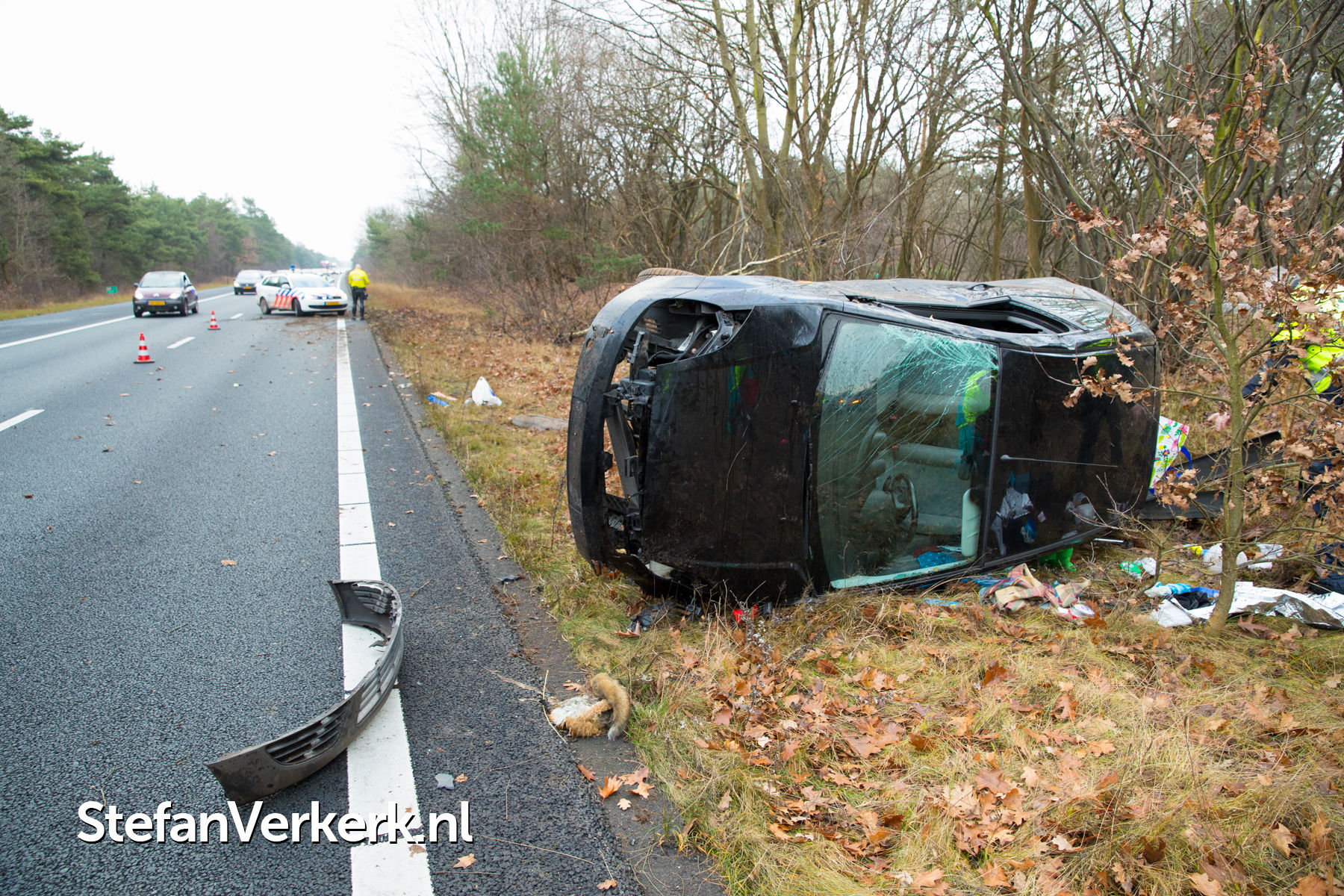 Foto's: Ongeval auto over de kop A28 L 76,4 Wezep