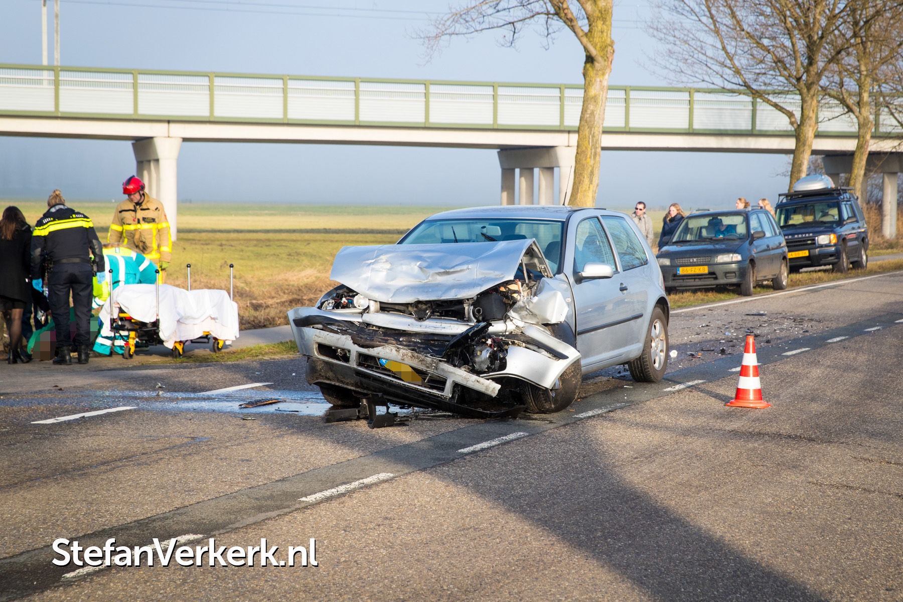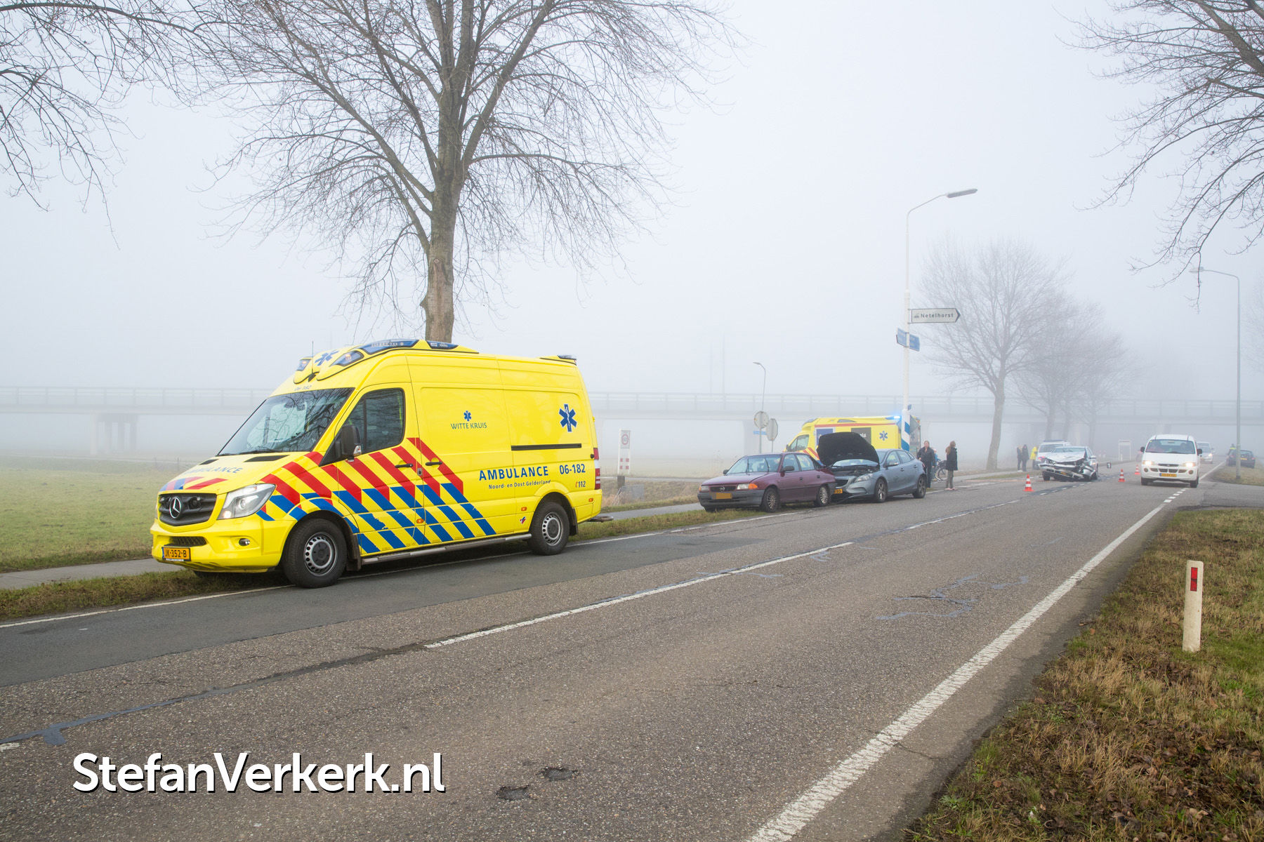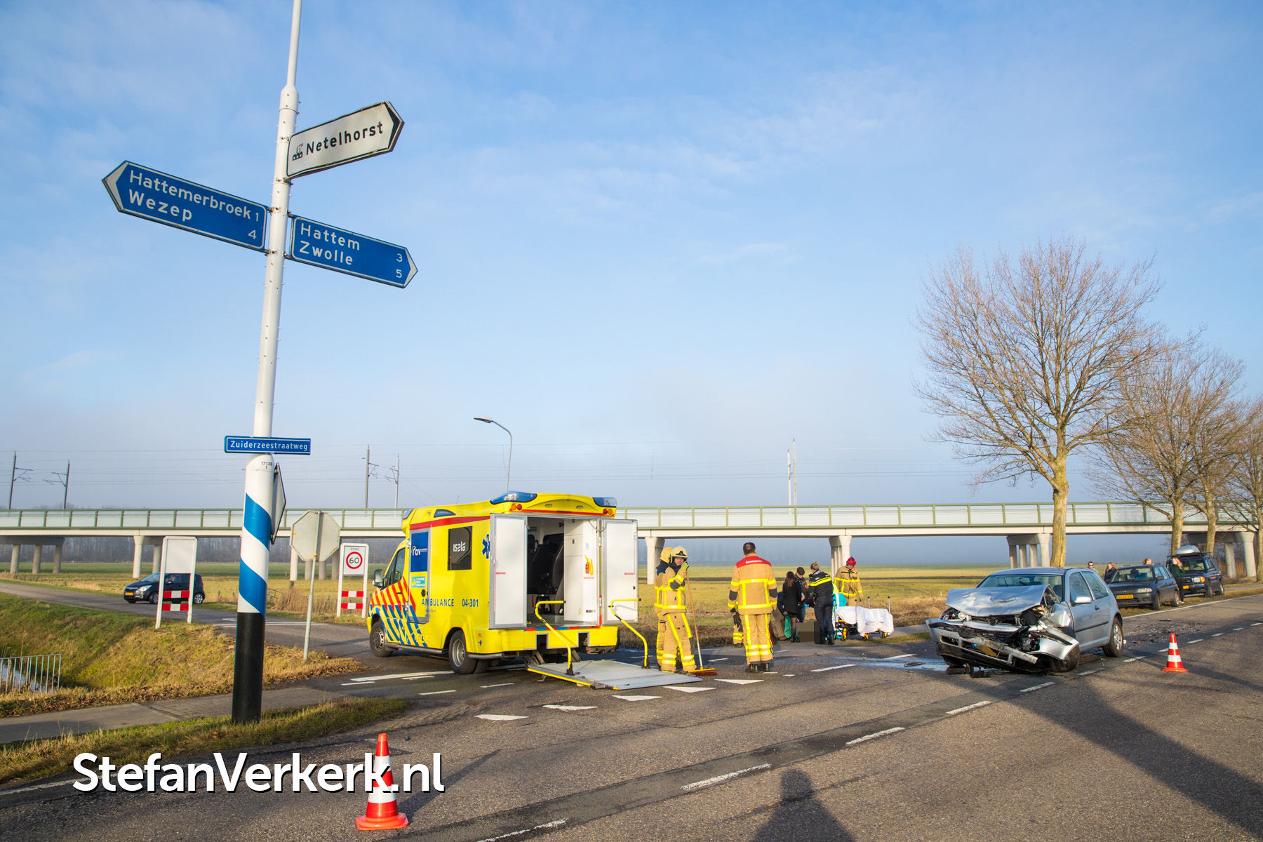 Foto's: Twee gewonden bij kopstaart aanrijding Zuiderzeestraatweg Hattem
