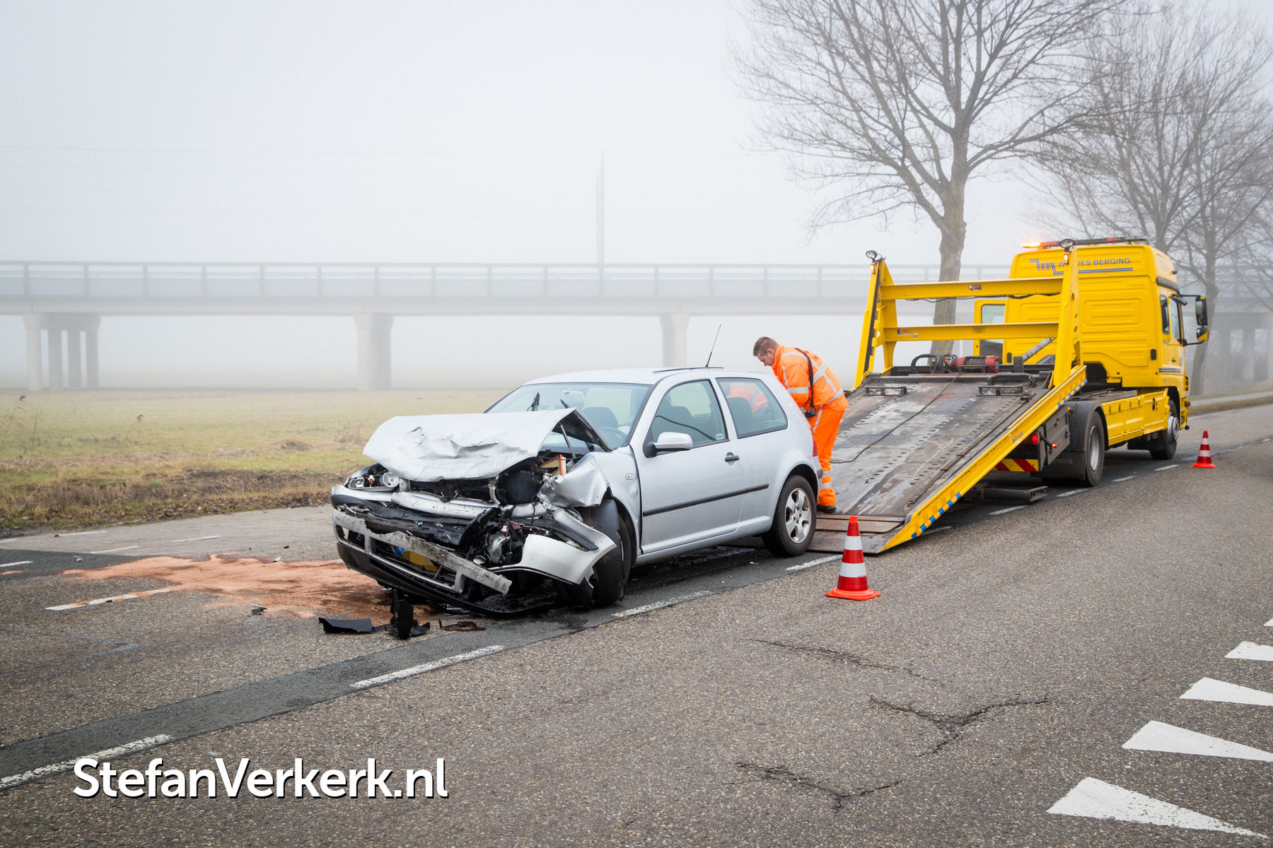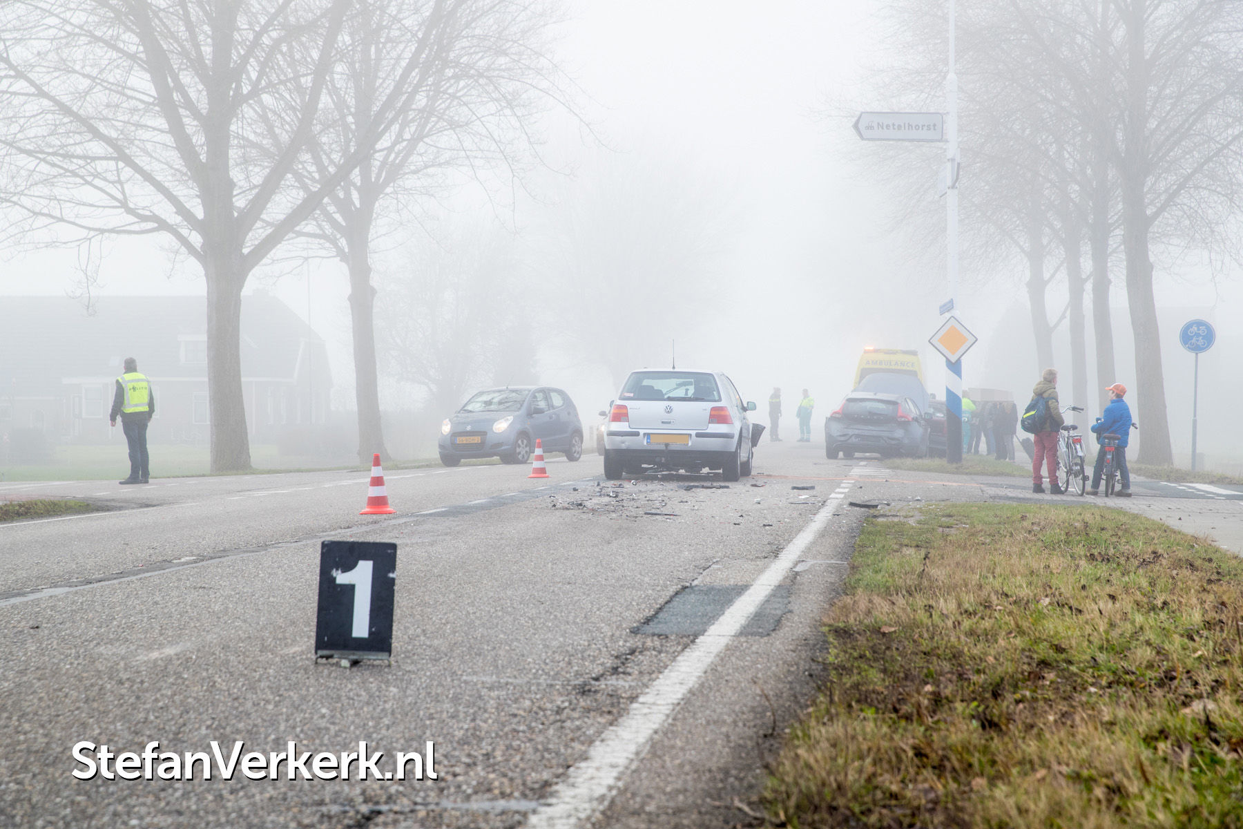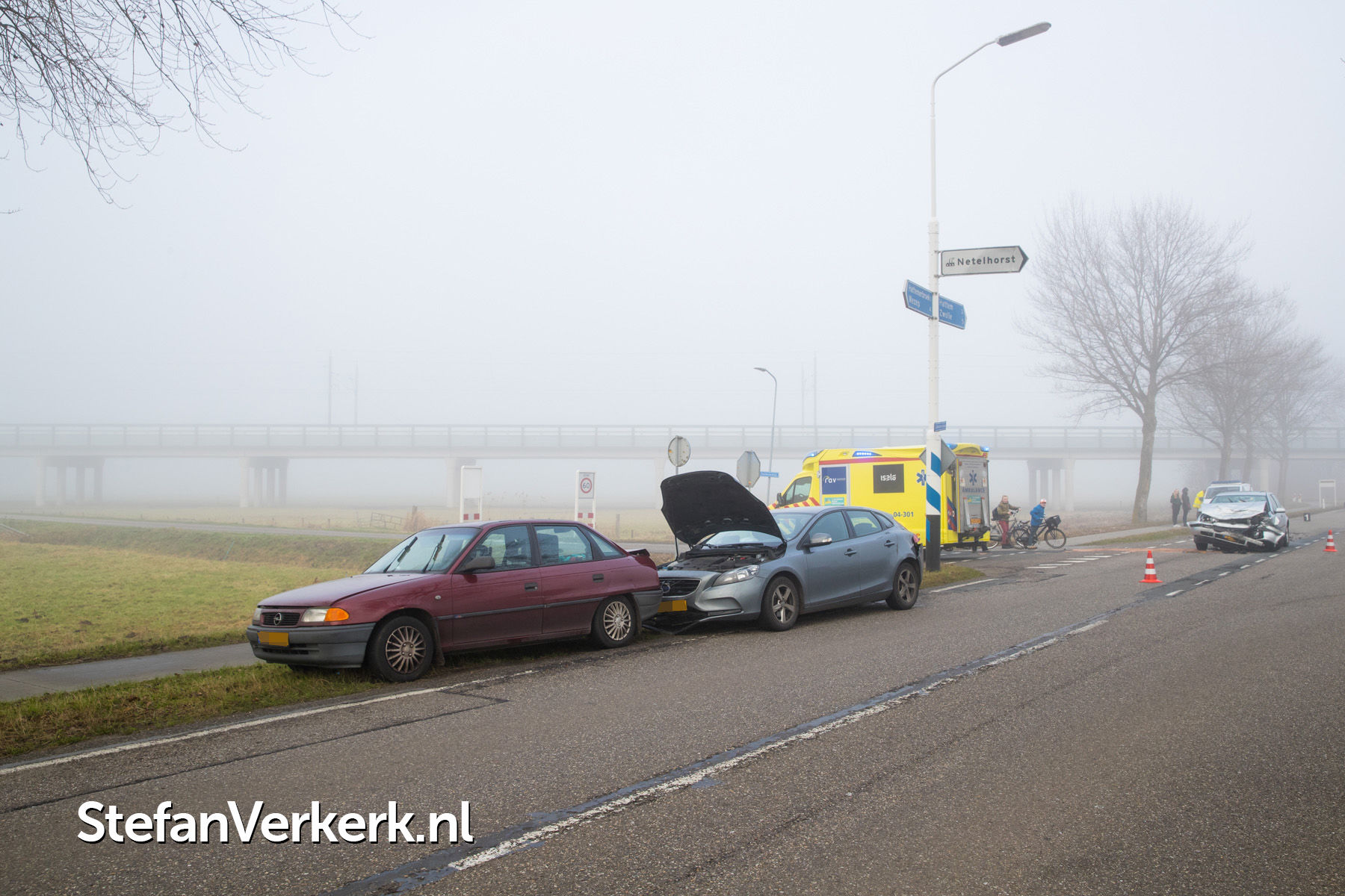 Foto's: Twee gewonden bij kopstaart aanrijding Zuiderzeestraatweg Hattem