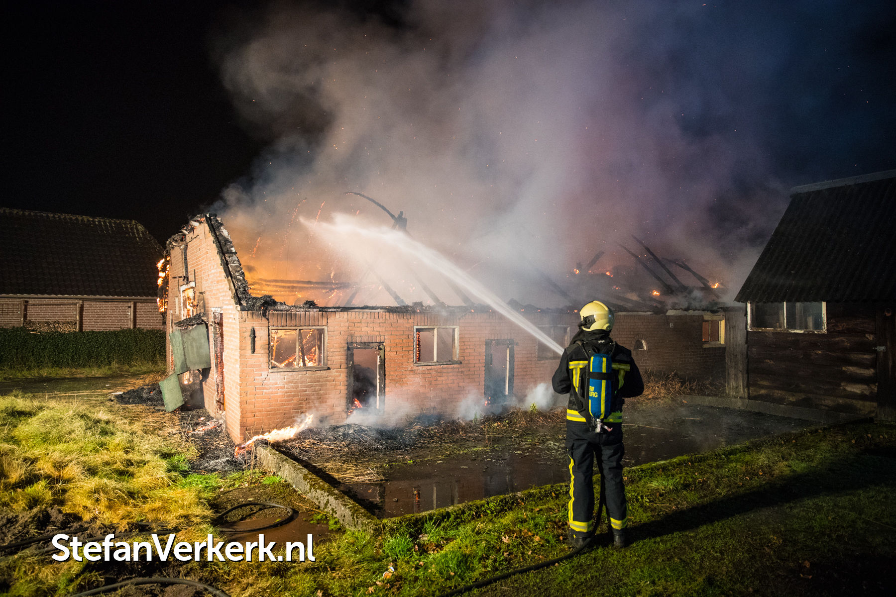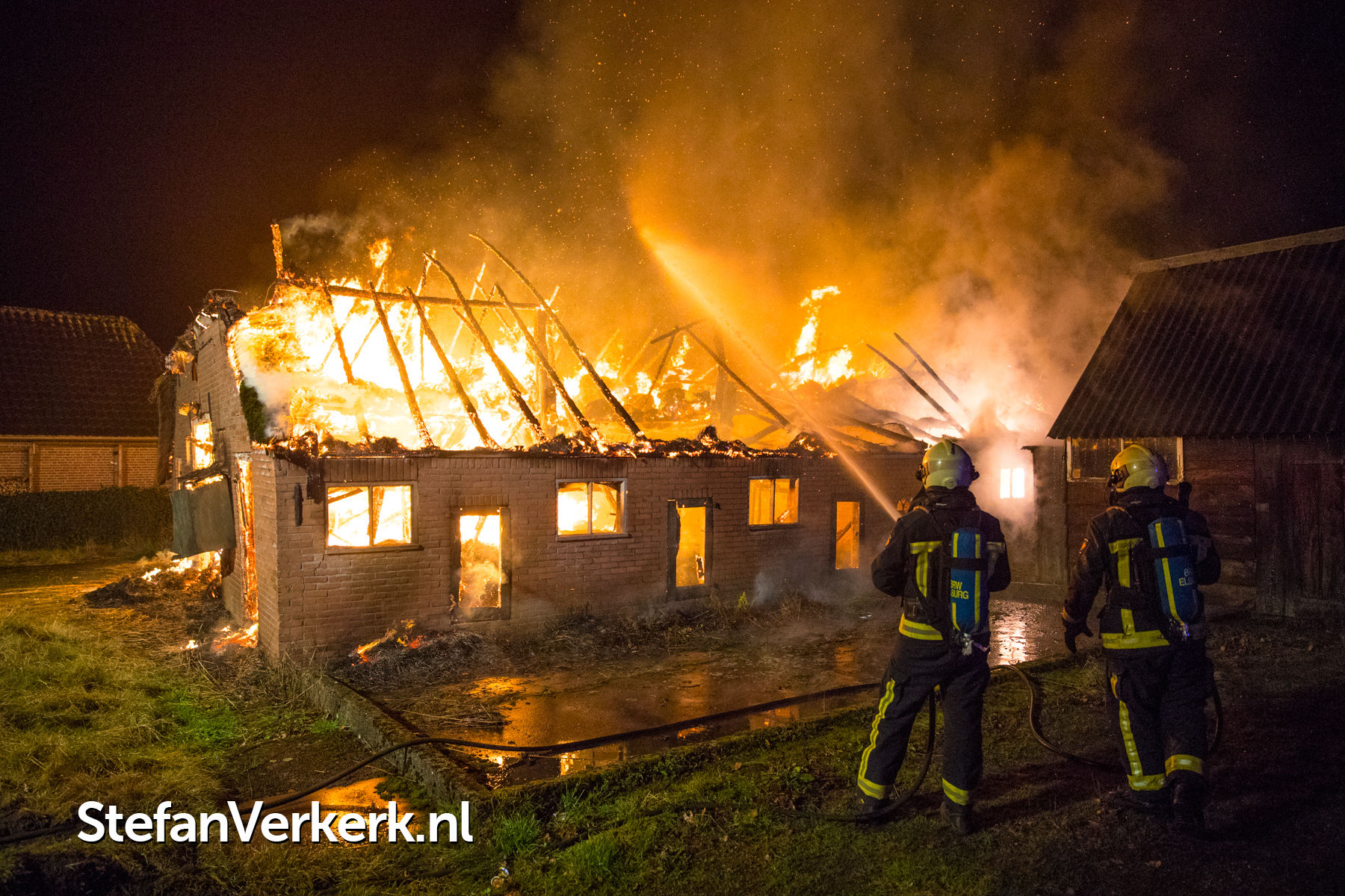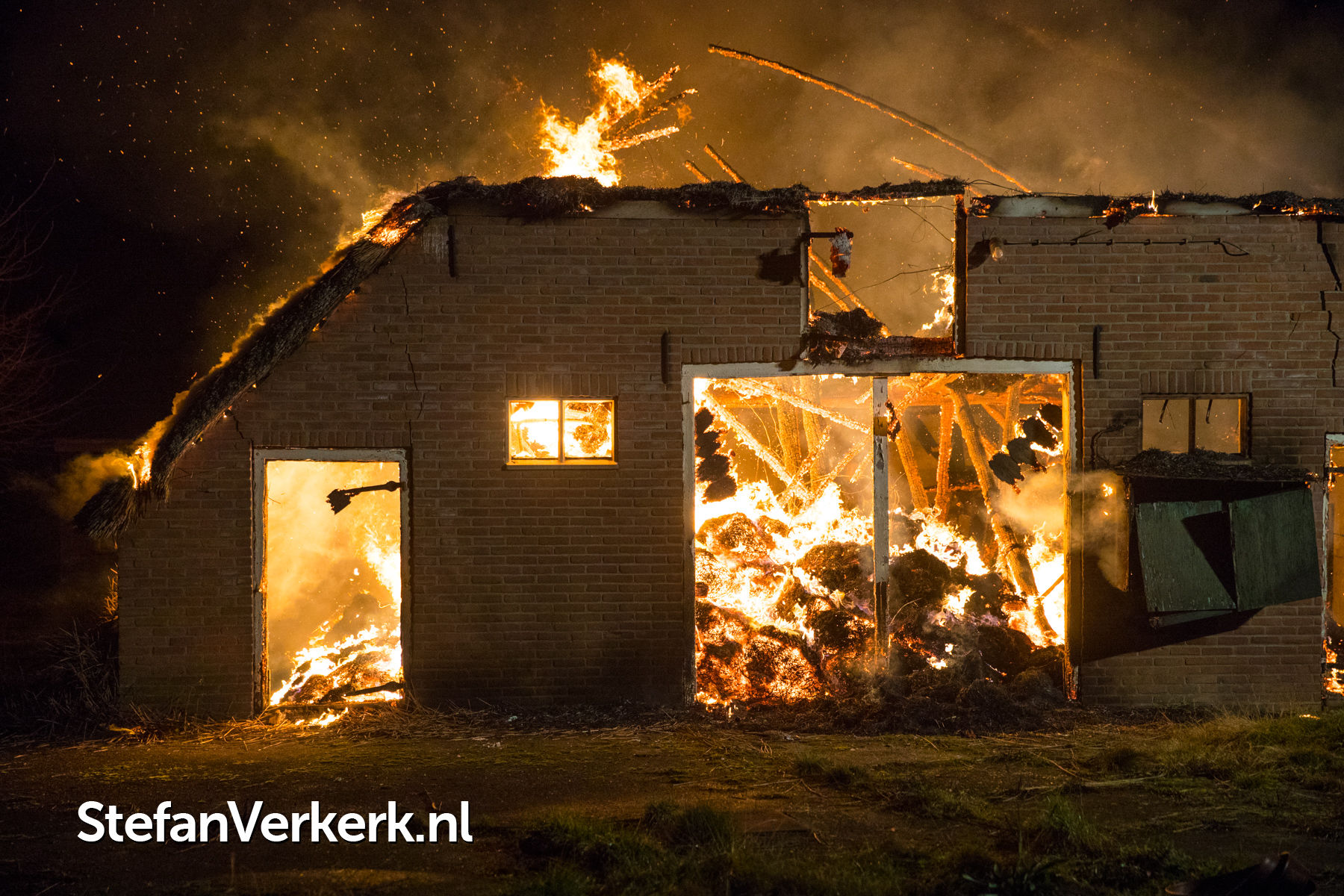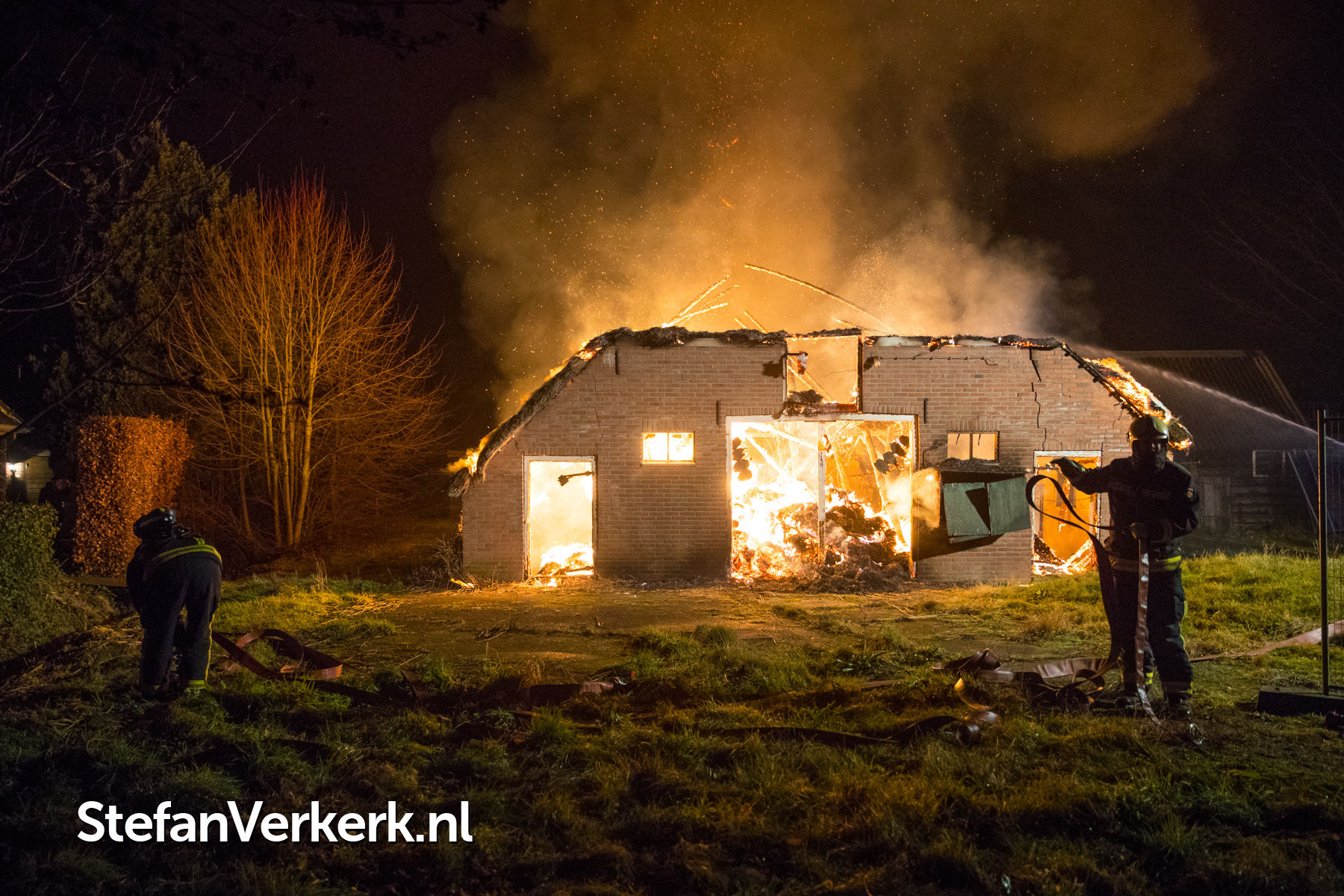 Foto's: Woningbrand rietgedekte woning Landweg Doornspijk