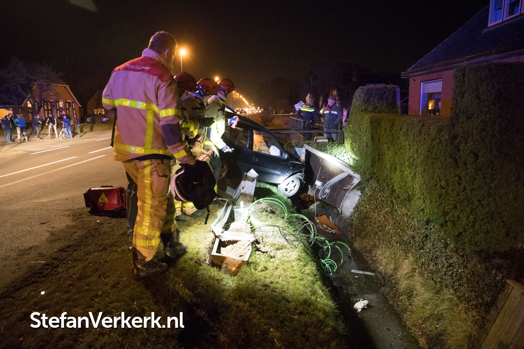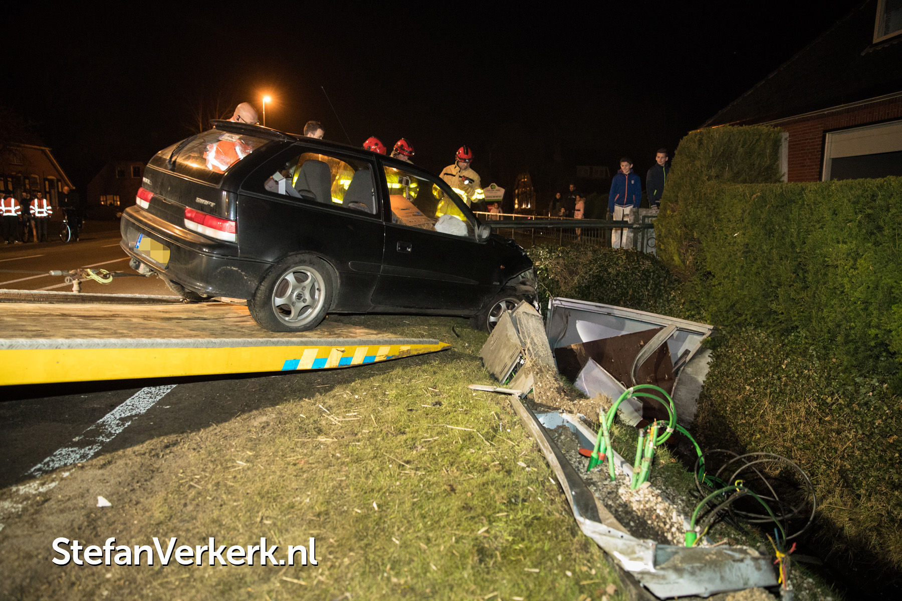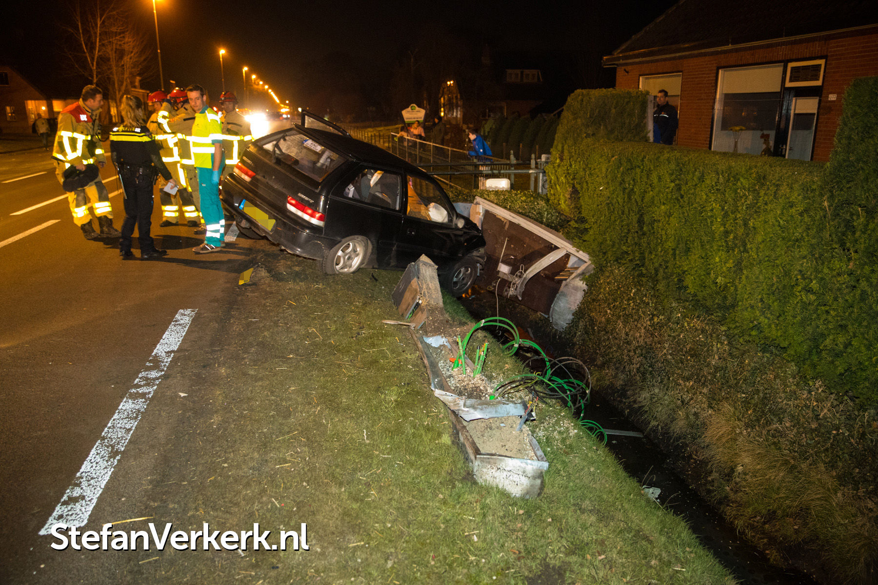 Foto's: Ongeval auto tegen stroom- en televisiekast Zuiderzeestraatweg Oldebroek