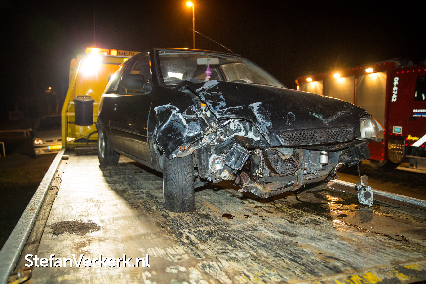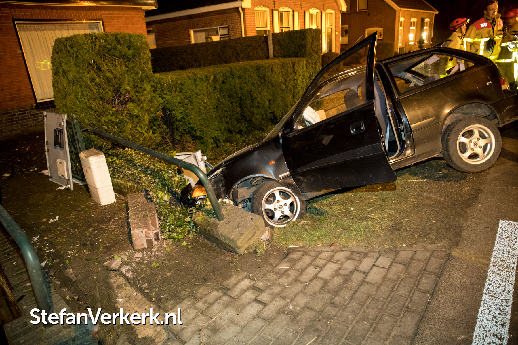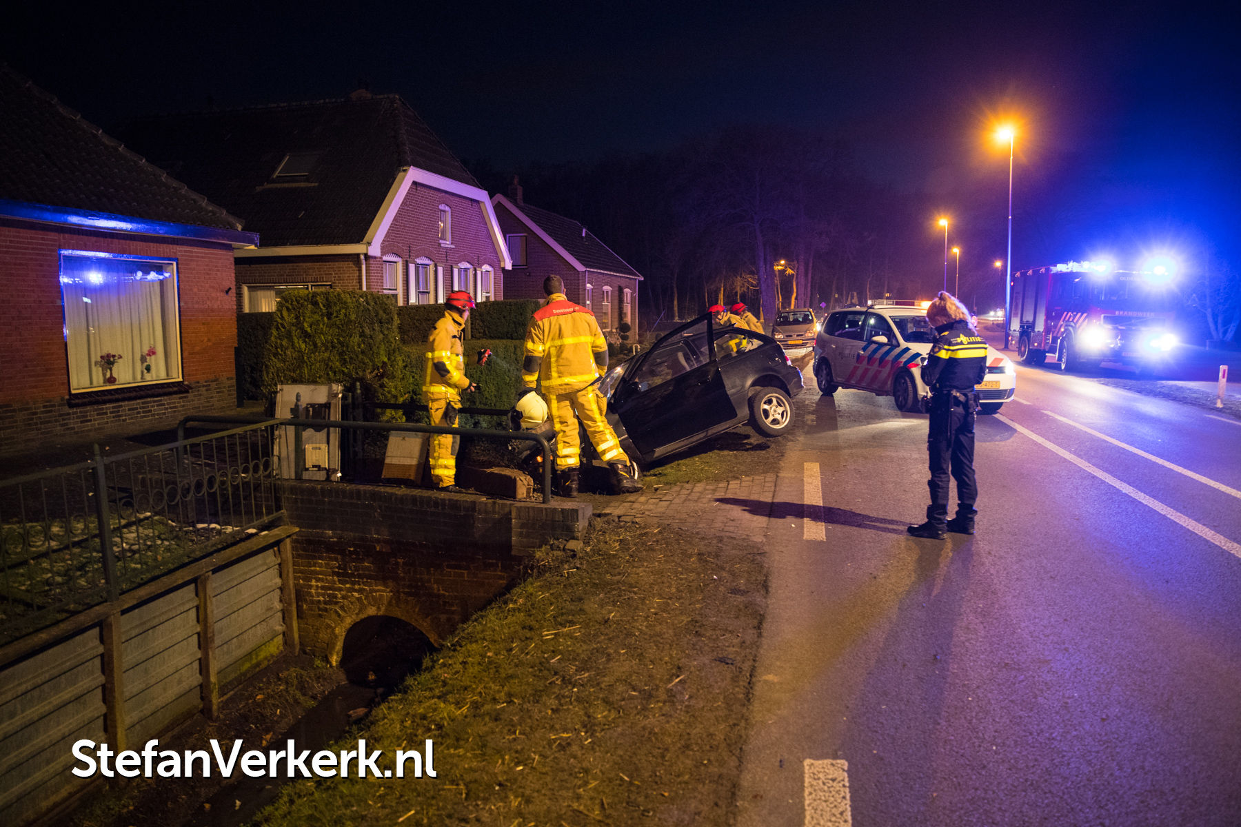 Foto's: Ongeval auto tegen stroom- en televisiekast Zuiderzeestraatweg Oldebroek