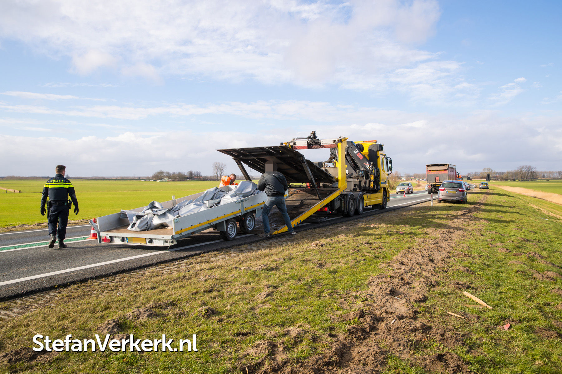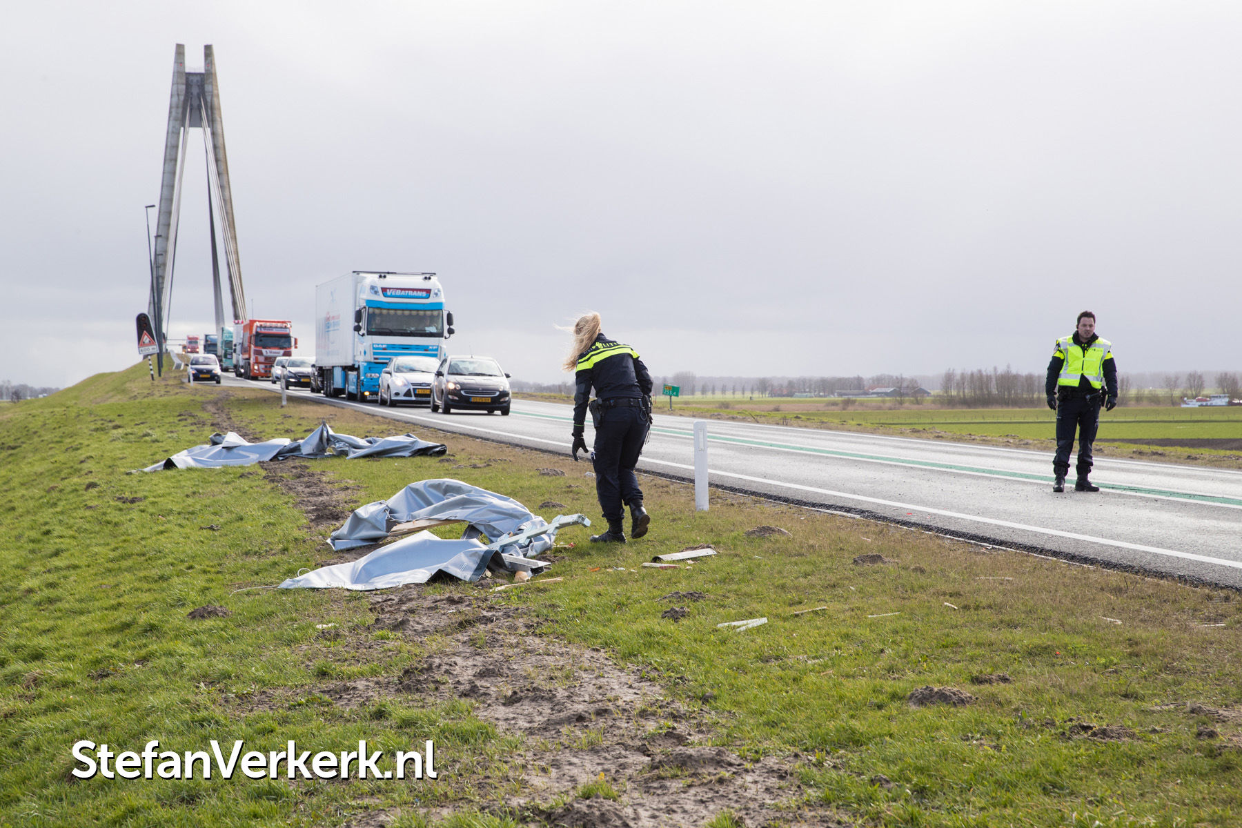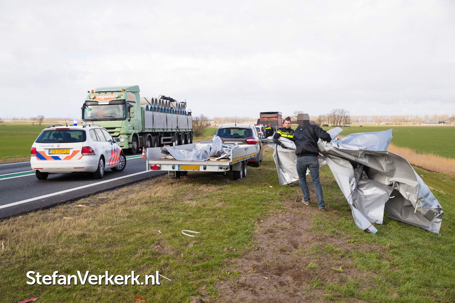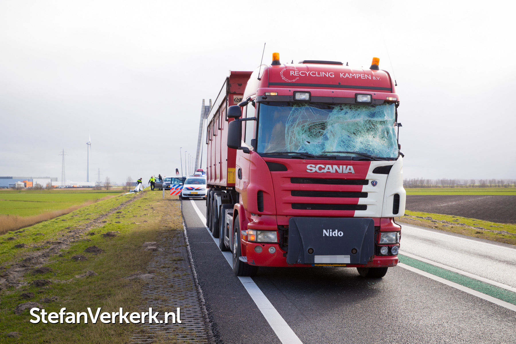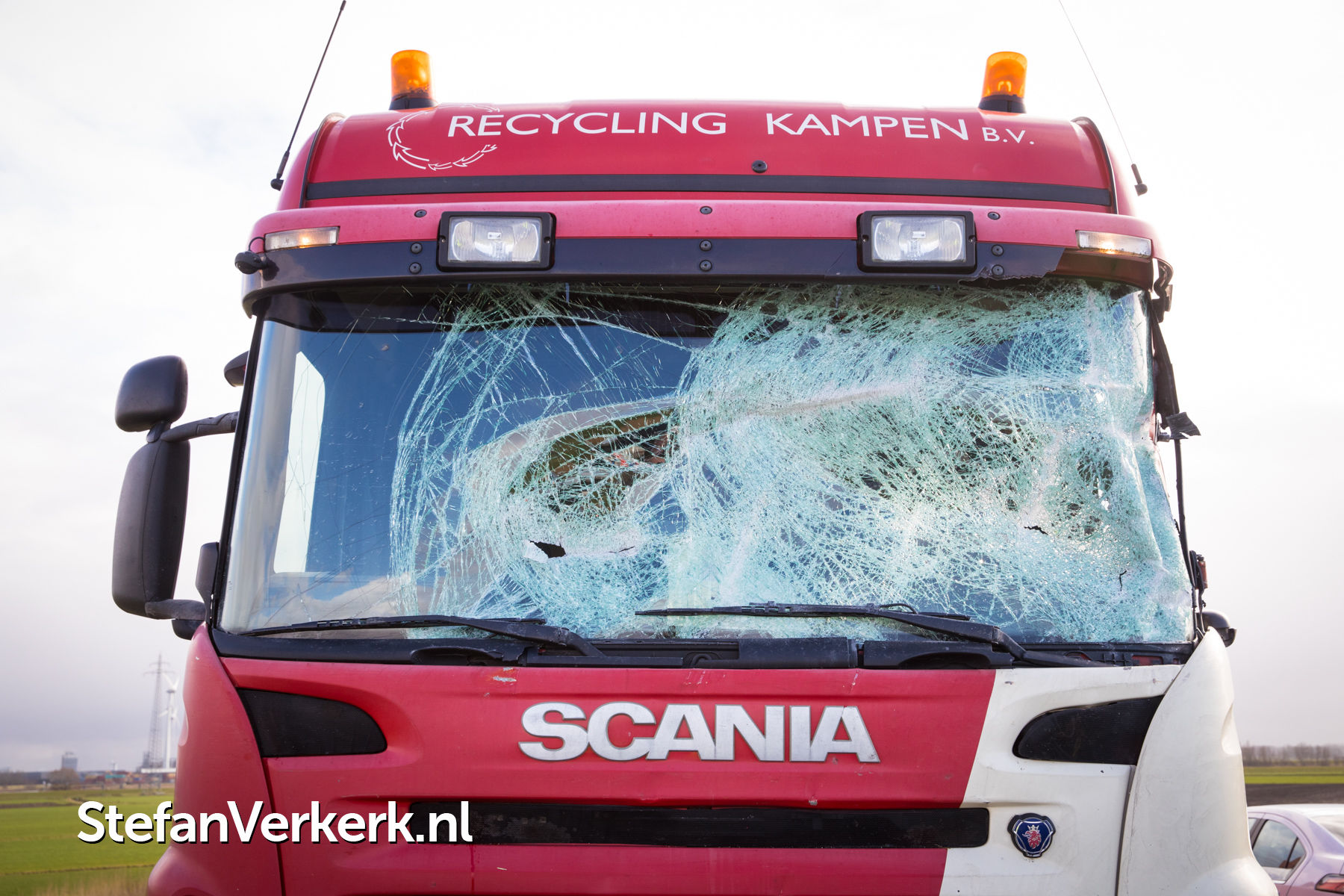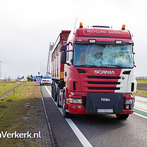 | Nieuwsbericht: | Voorruit vrachtwagen verbrijzeld door rondvliegende aanhangeronderdelen N50 Kampen |