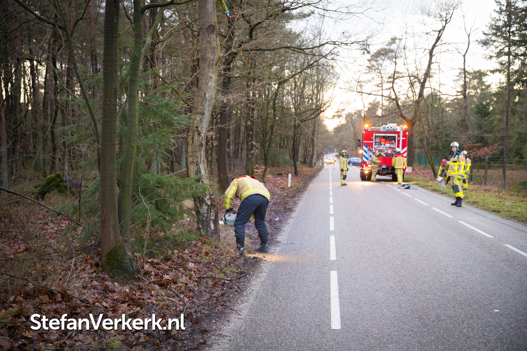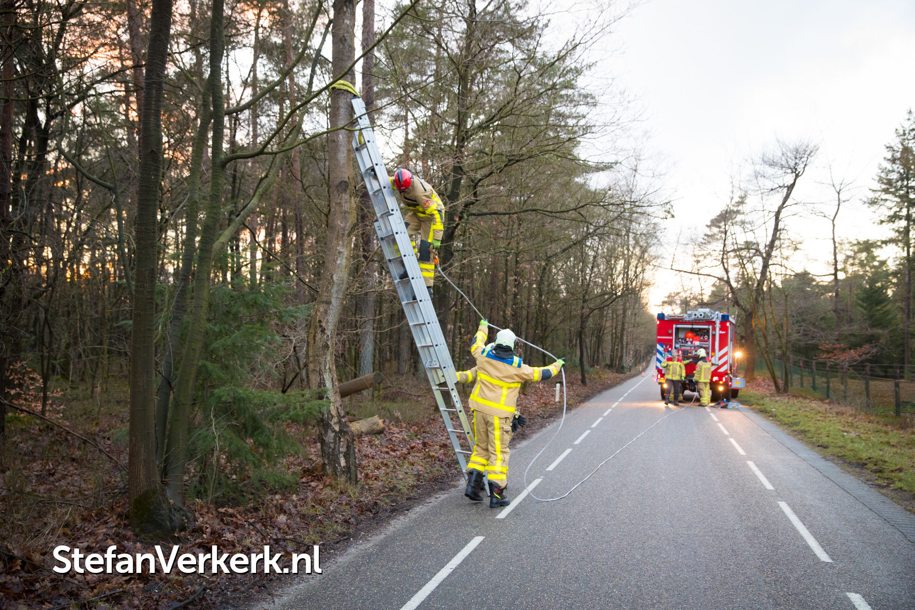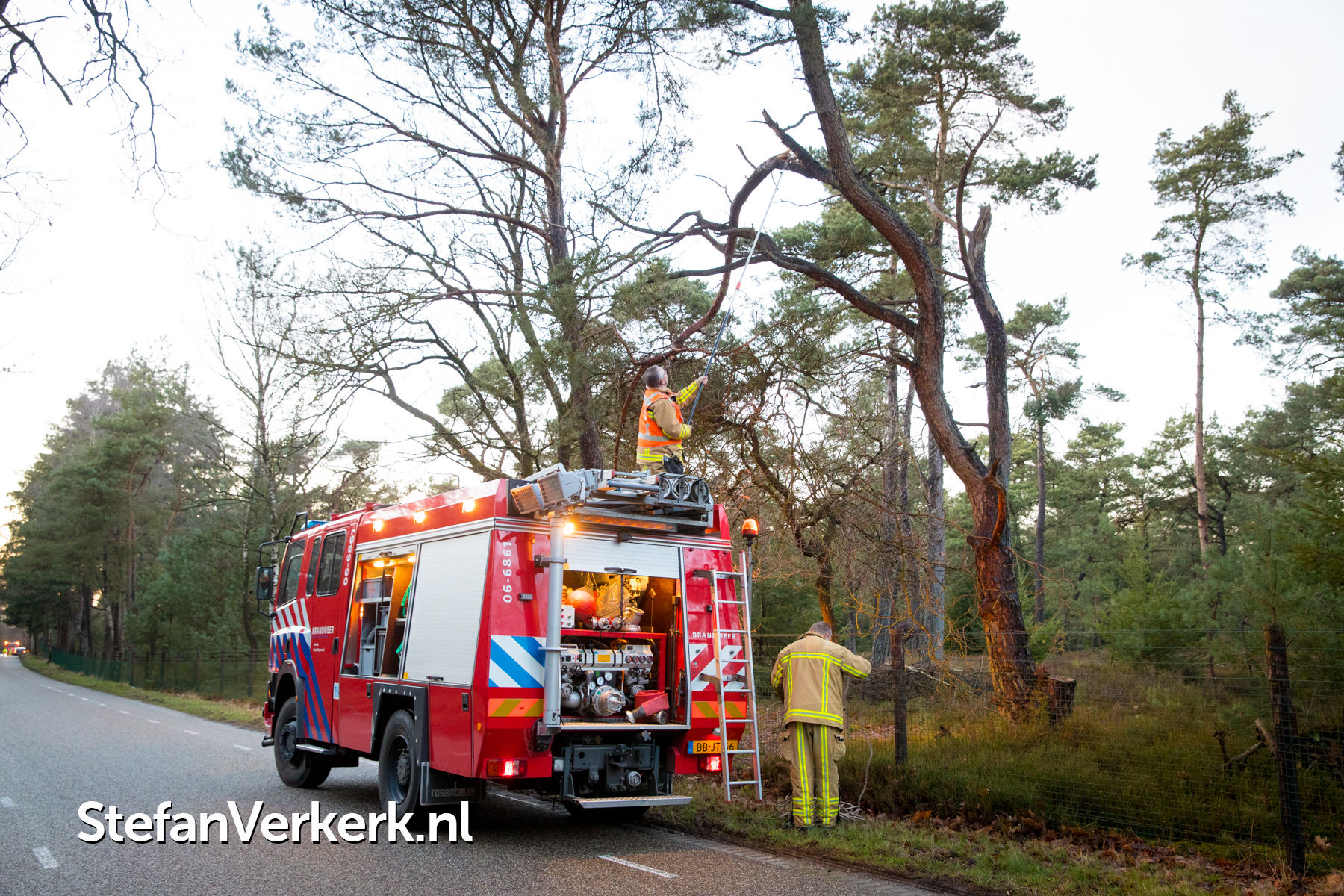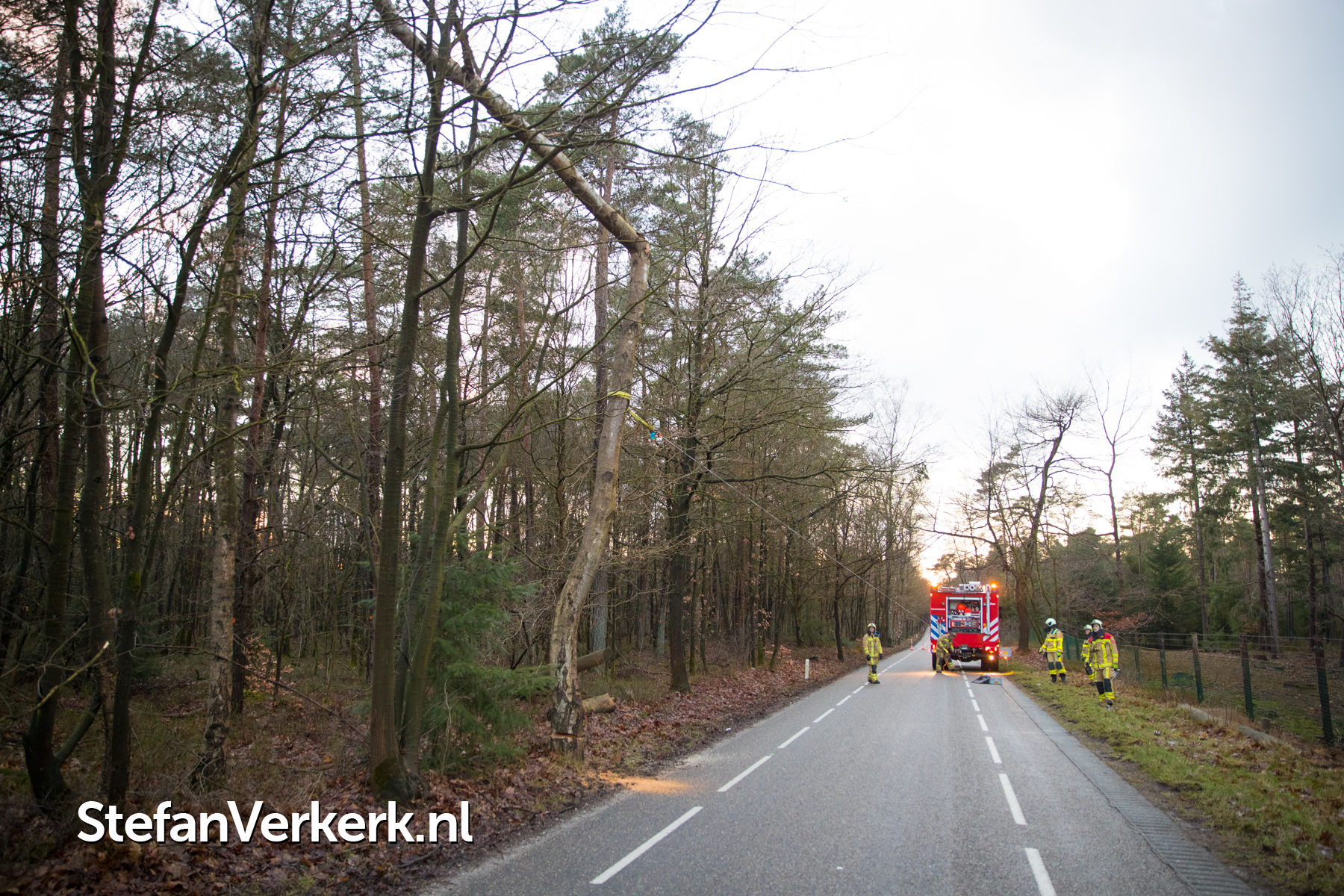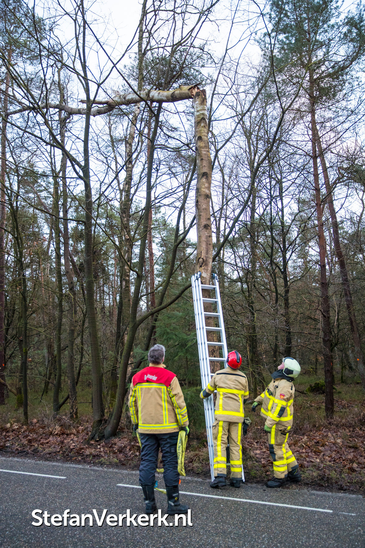 Foto's: Stormschade gevaarlijk hangende boom en tak Molenweg Wapenveld