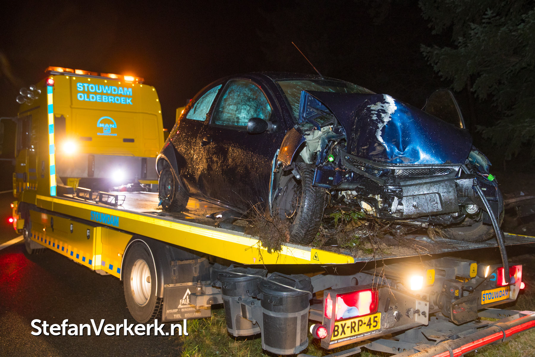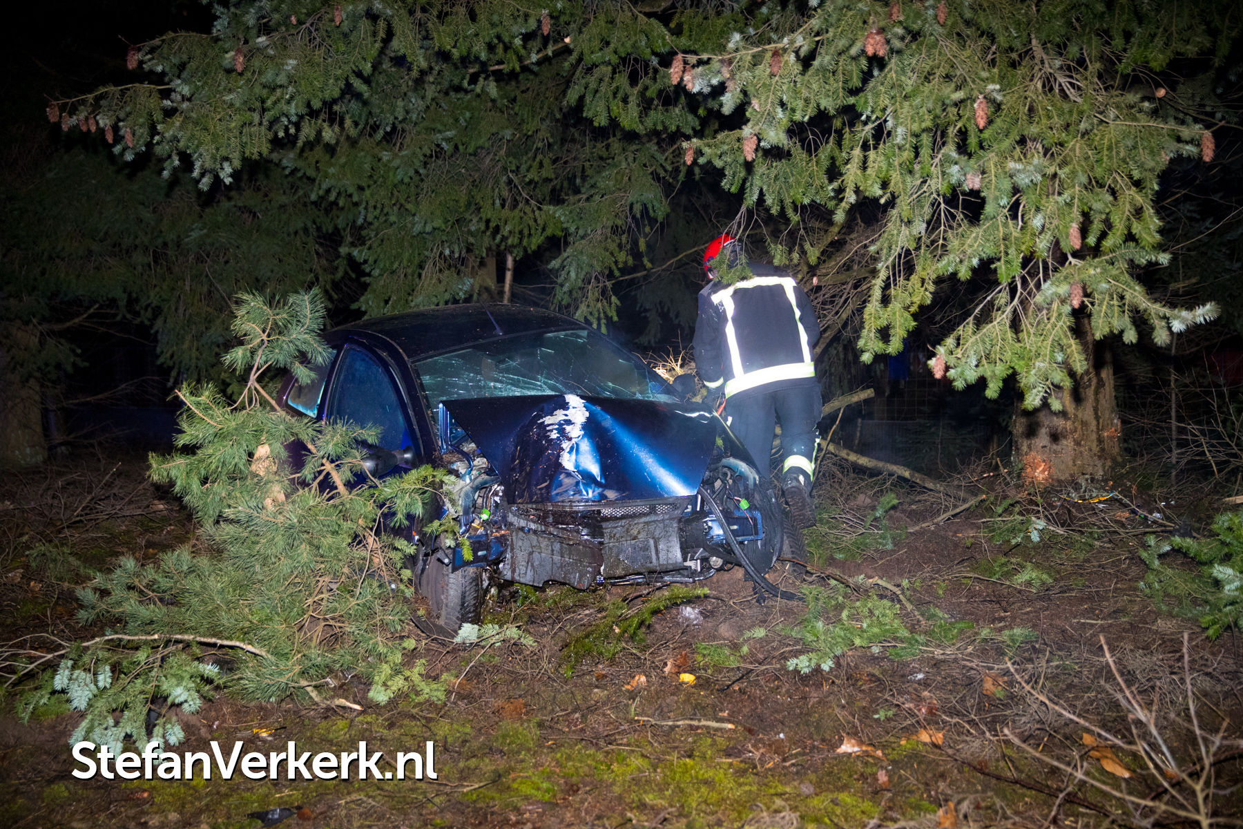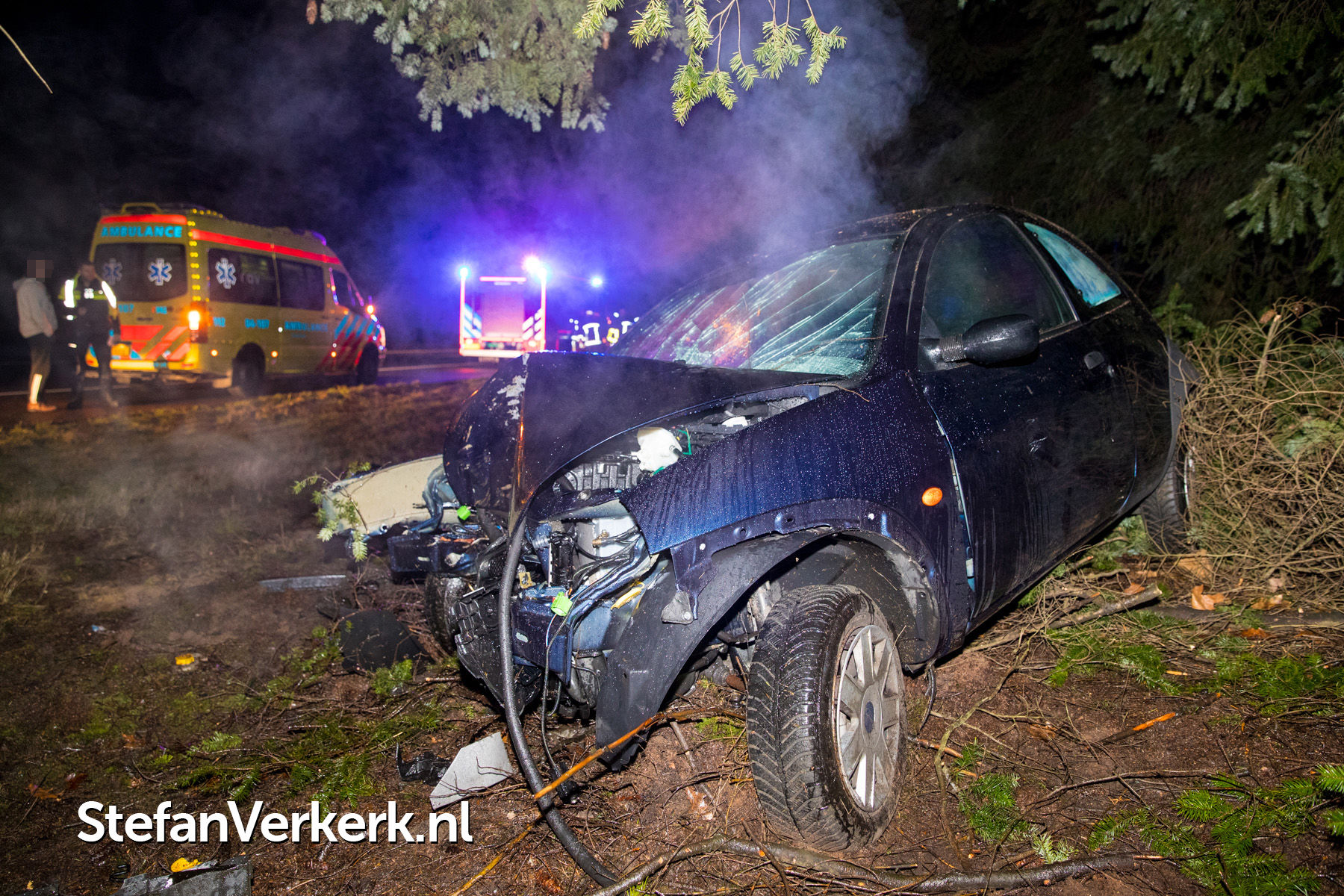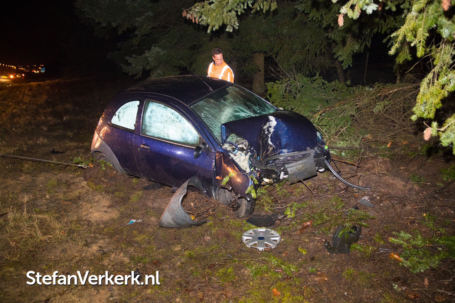 Foto's: Auto botst tegen boom A50 L 230,7 Heerde