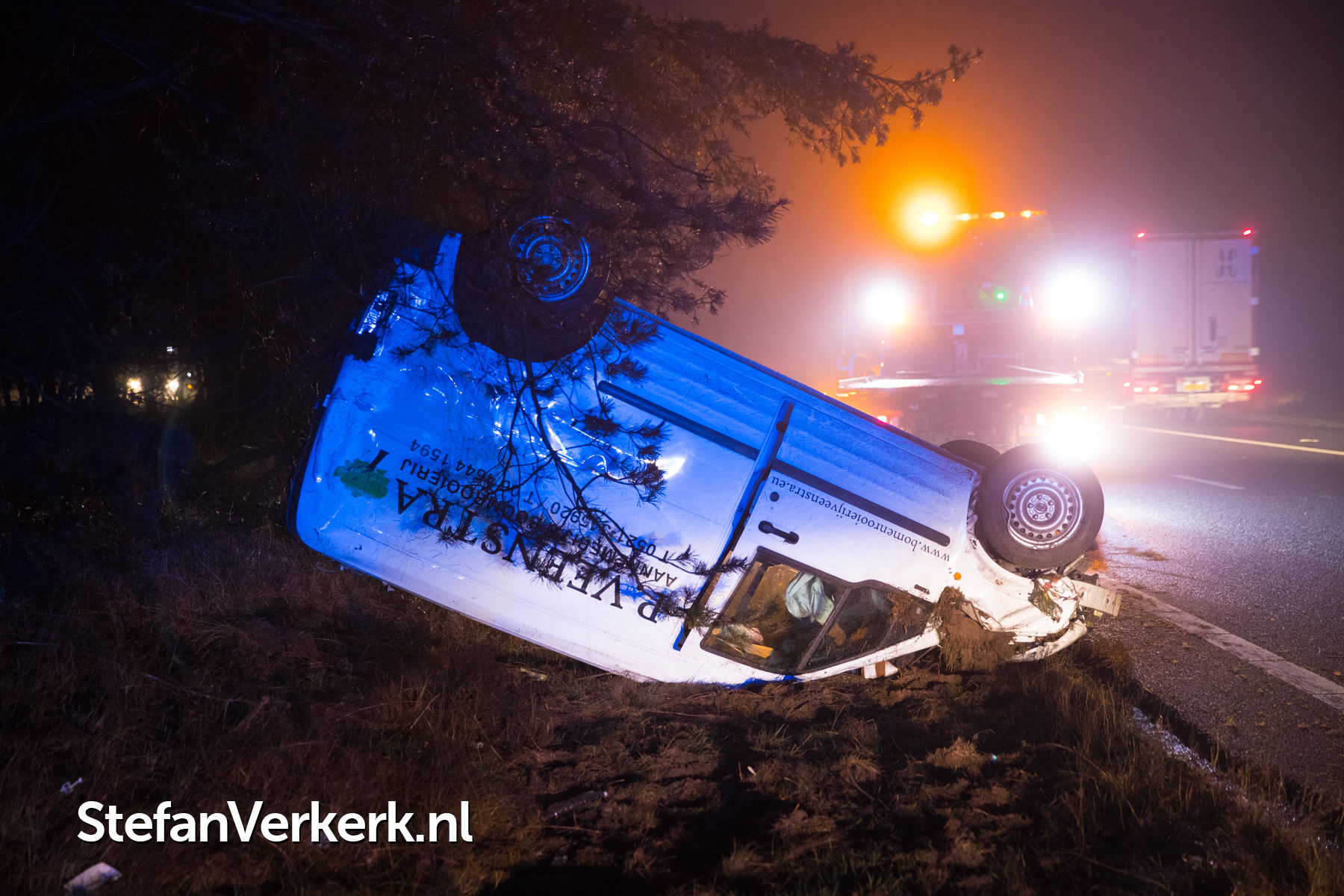 | Nieuwsbericht: | Bedrijfsbusje over de kop op de A28 tussen Nunspeet en 't Harde |