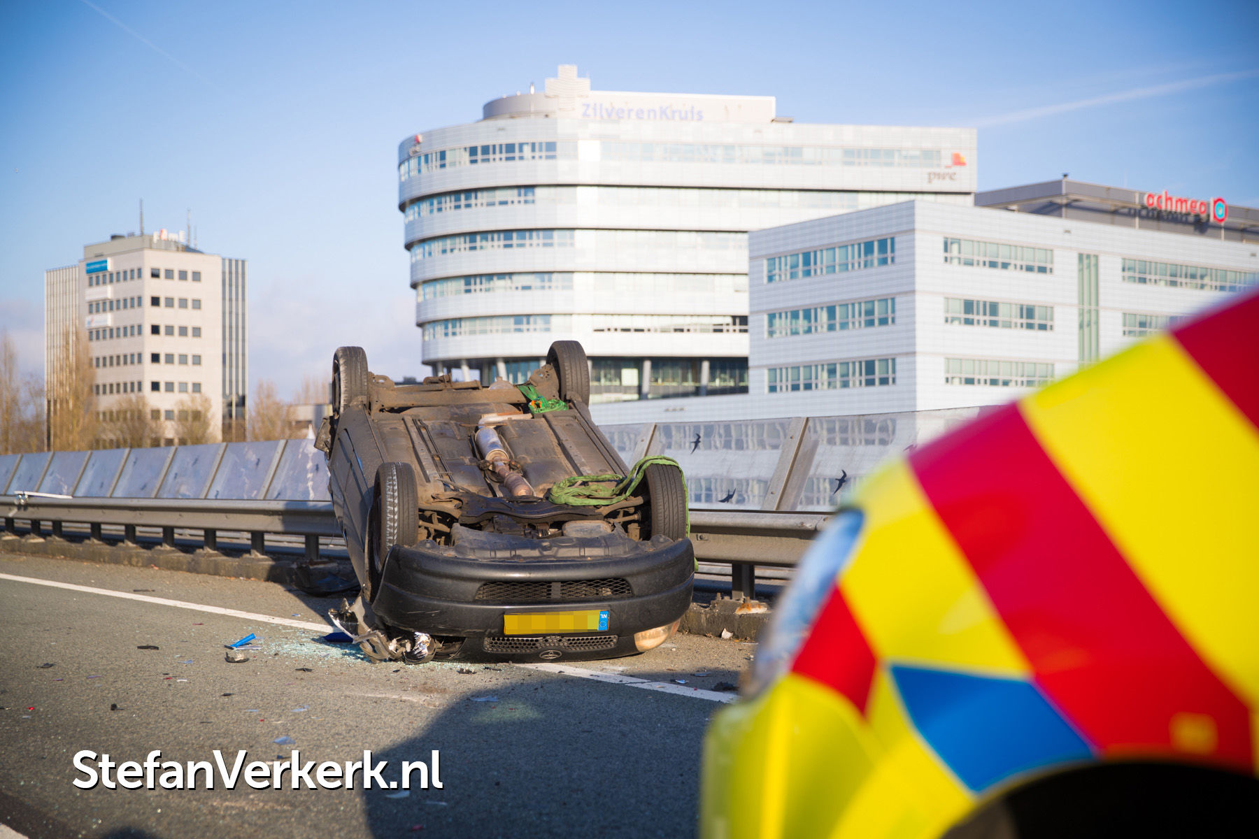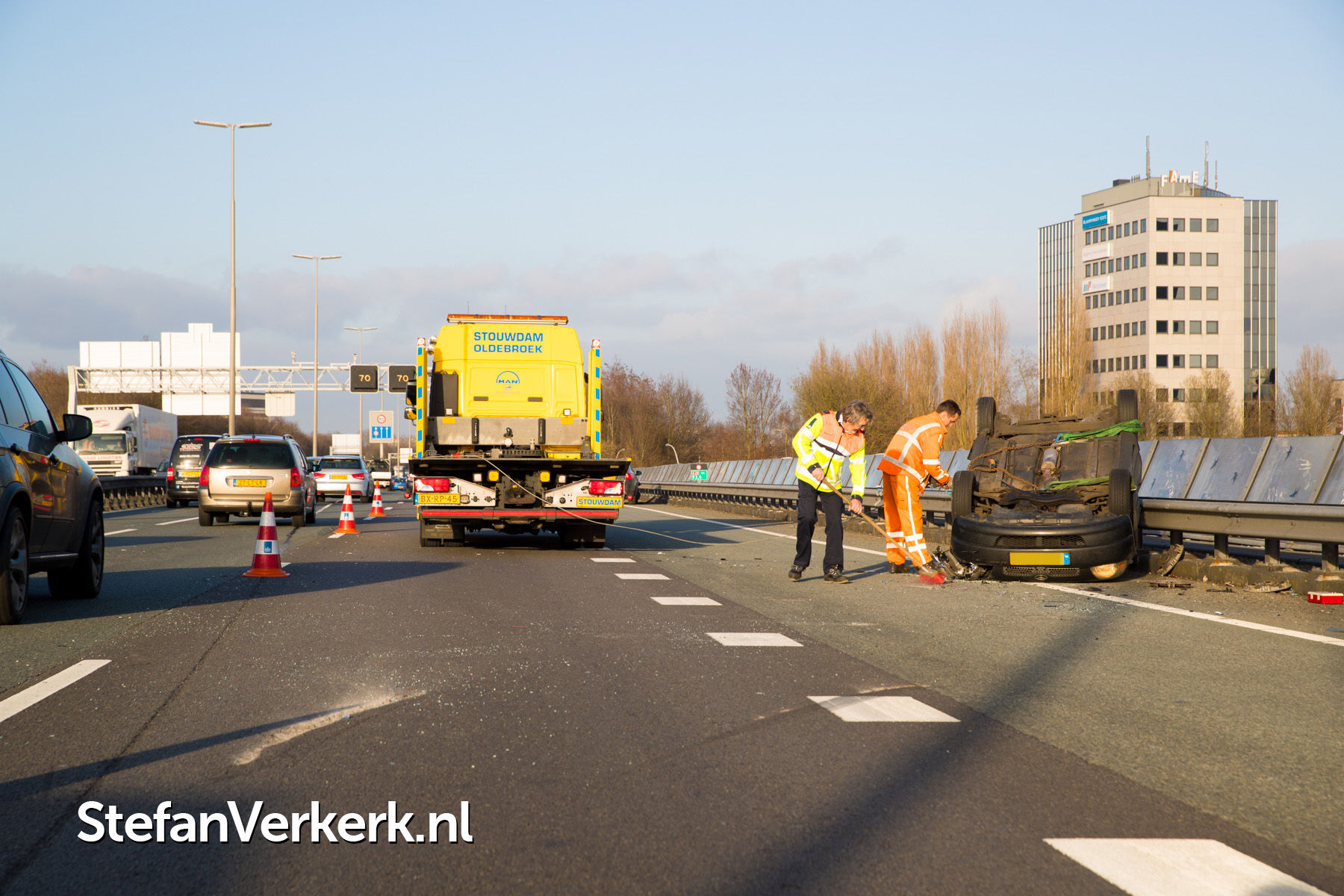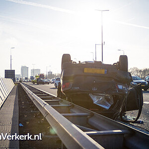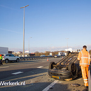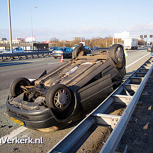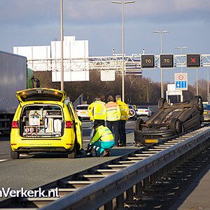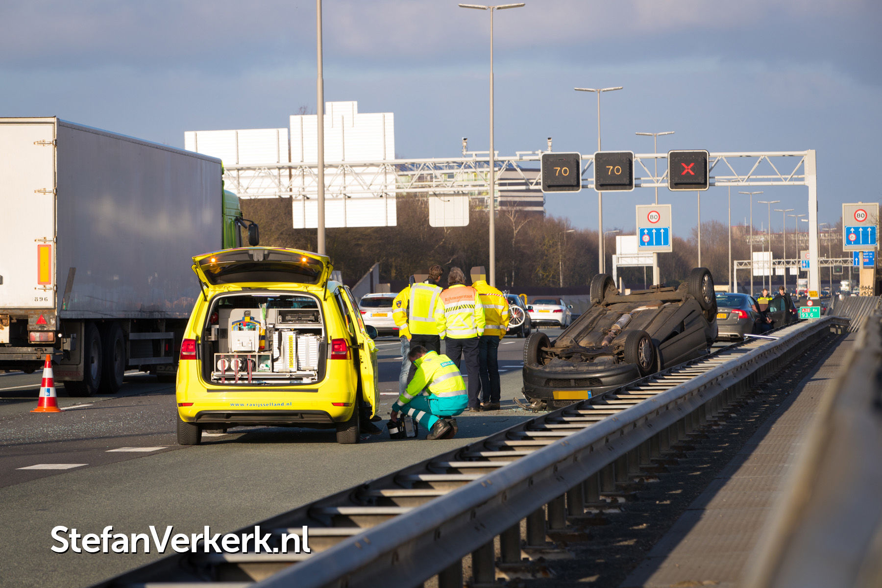Foto's: Ongeval auto over de kop A28 R 93,5 Zwolle