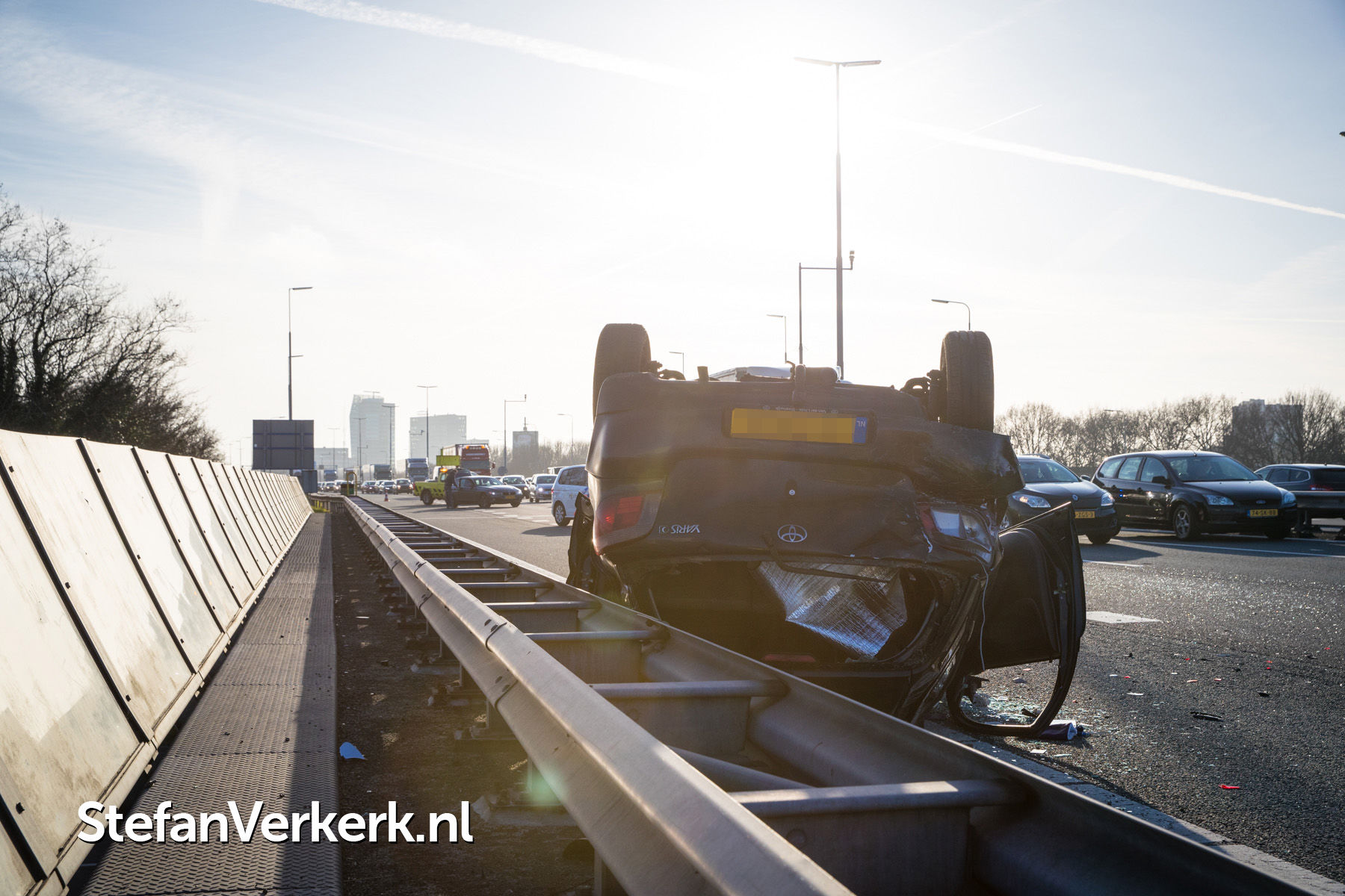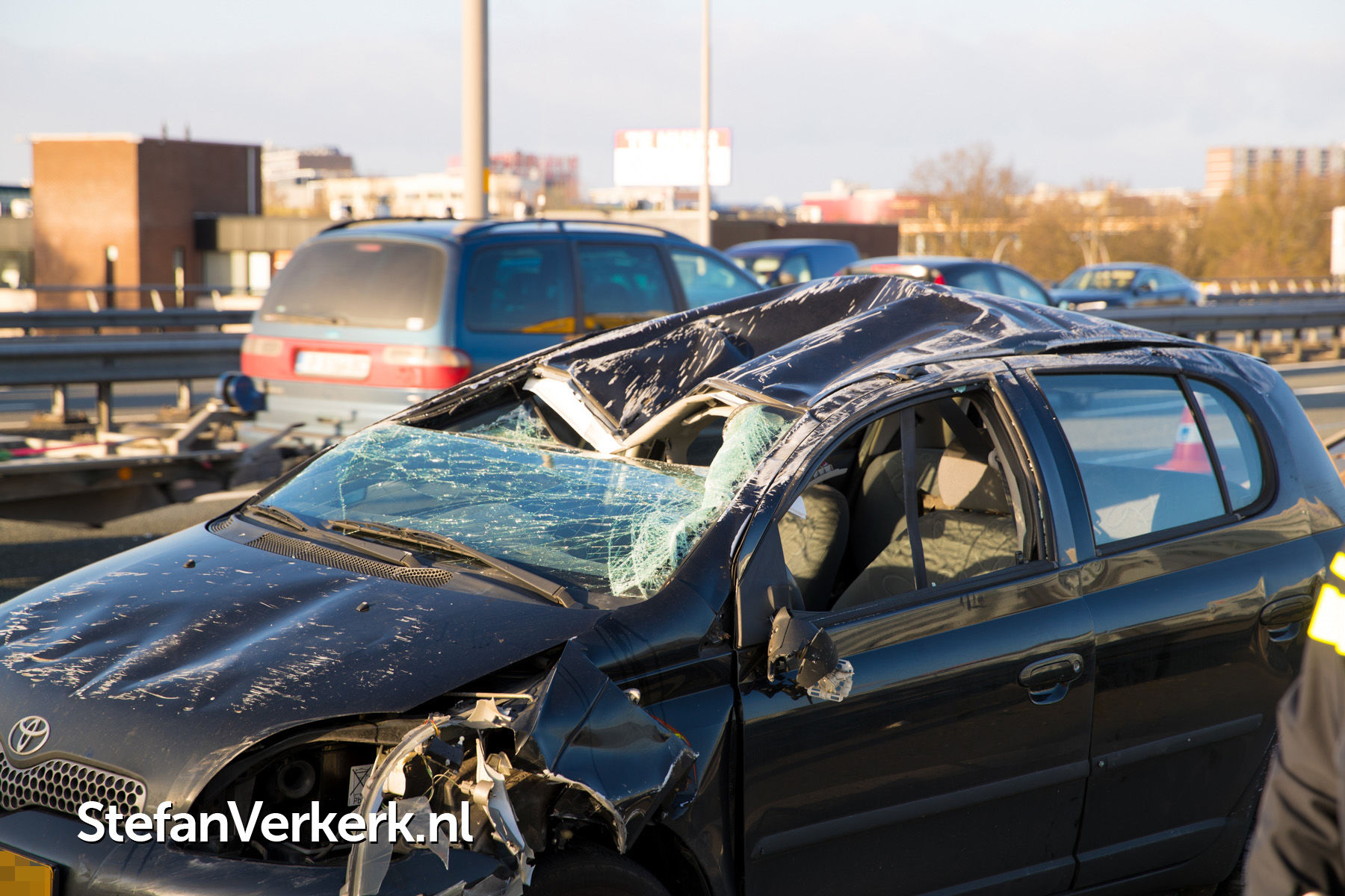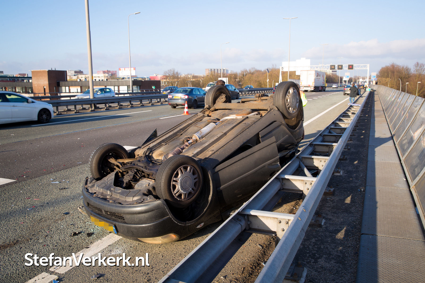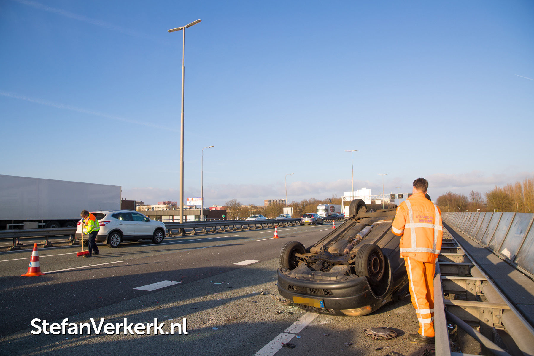 Foto's: Ongeval auto over de kop A28 R 93,5 Zwolle