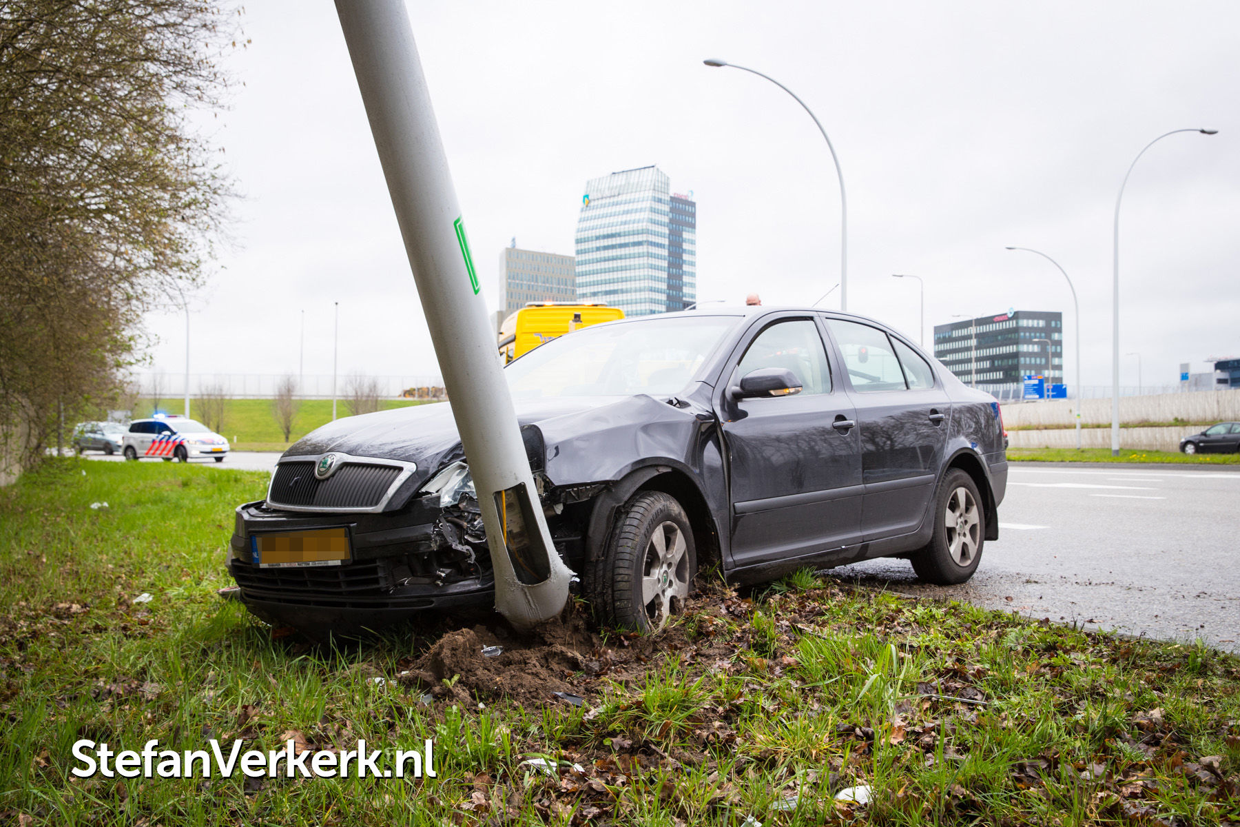 Foto's: Auto botst tegen lantaarnpaal IJsselallee Zwolle