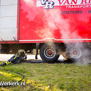 Foto's: Vrachtwagen met vastgelopen remmen A28 R 71,1 't Harde