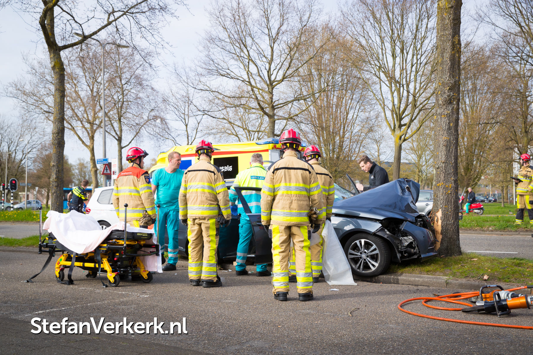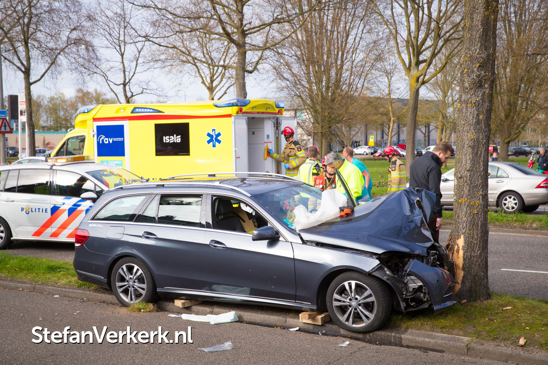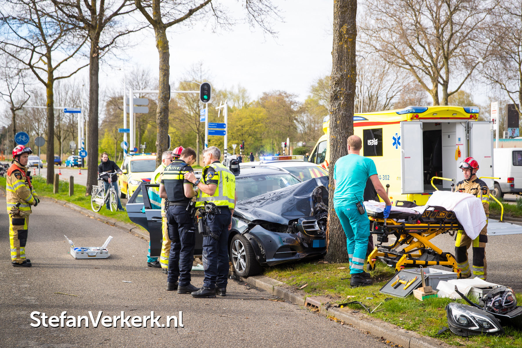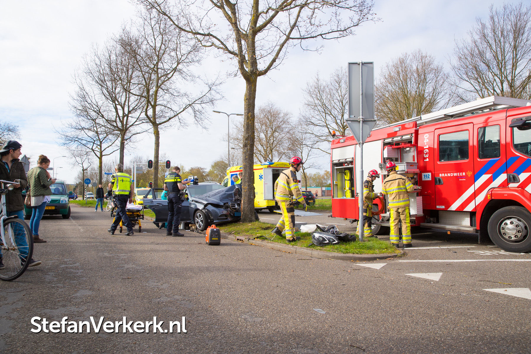 Foto's: Taxi botst tegen boom Bisschop Willebrandlaan Zwolle