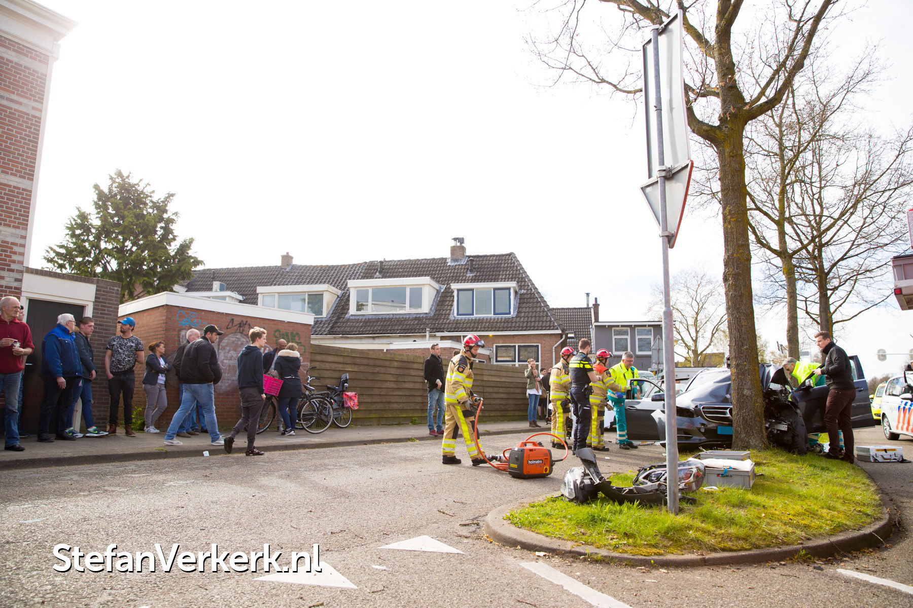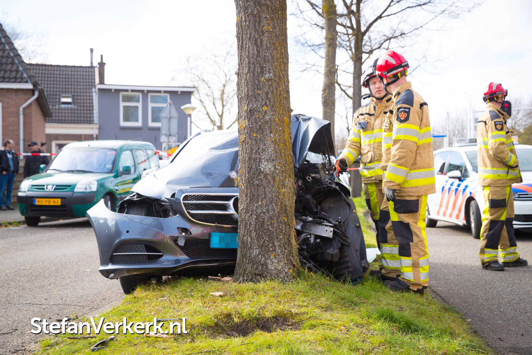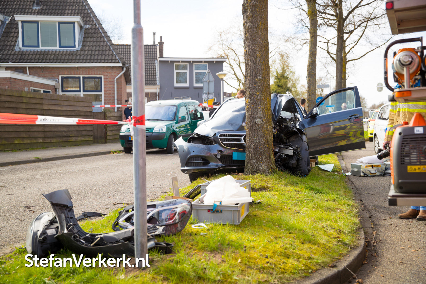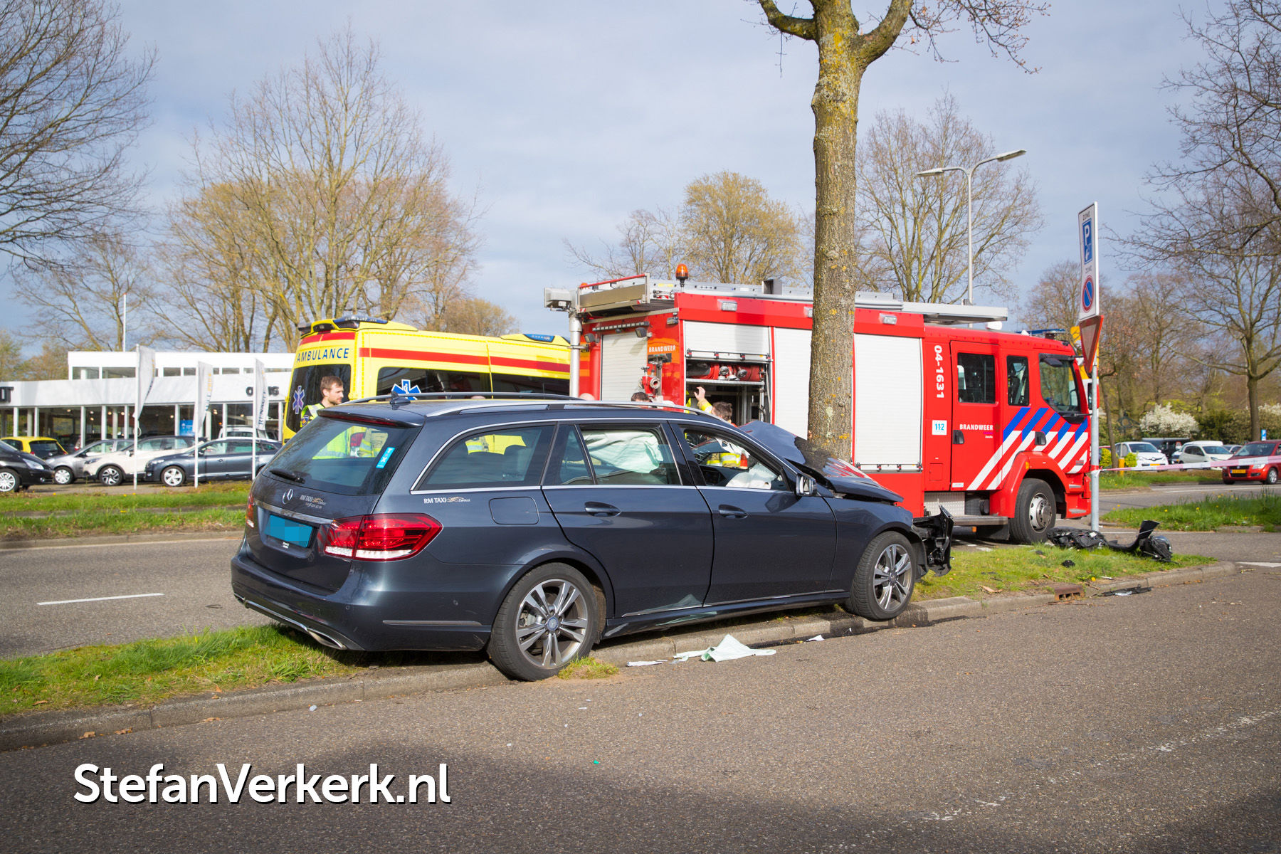 Foto's: Taxi botst tegen boom Bisschop Willebrandlaan Zwolle