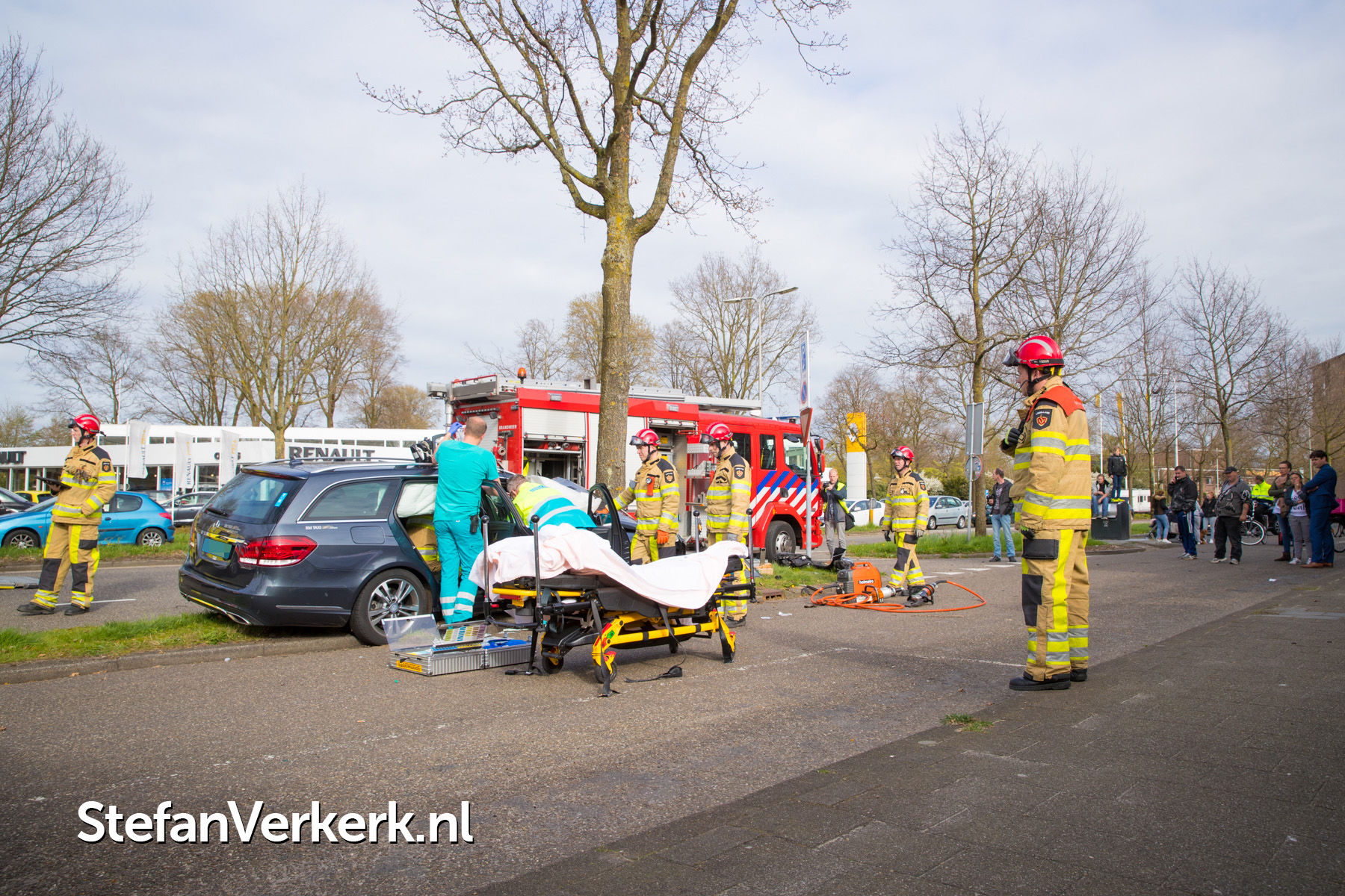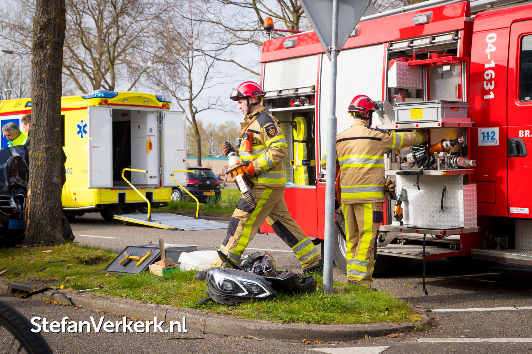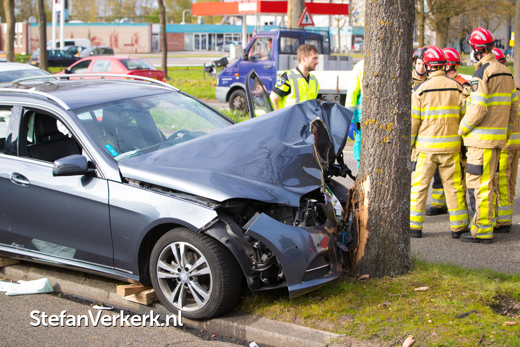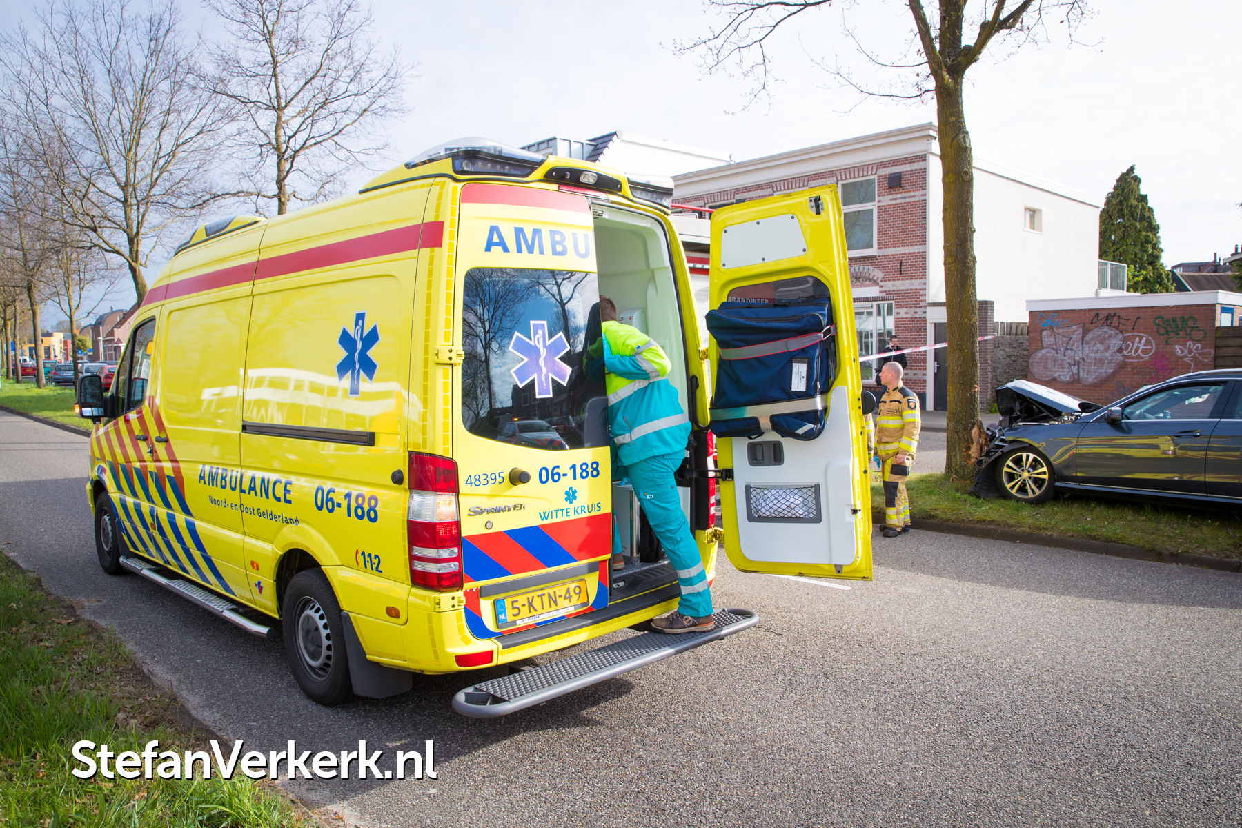 Foto's: Taxi botst tegen boom Bisschop Willebrandlaan Zwolle