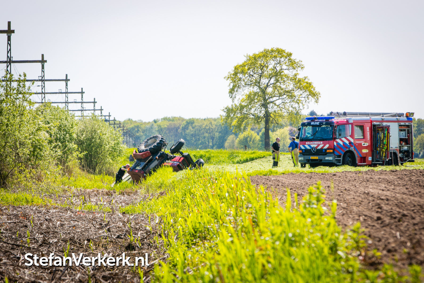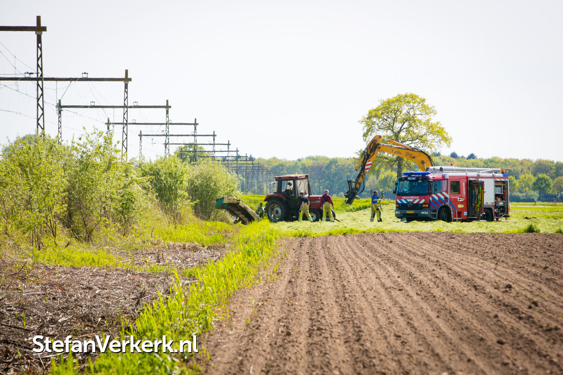 Foto's: Middel hulpverlening tractor in greppel Scherpenzeelseweg Wijhe