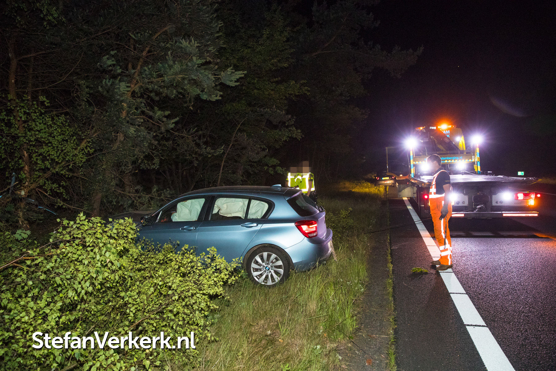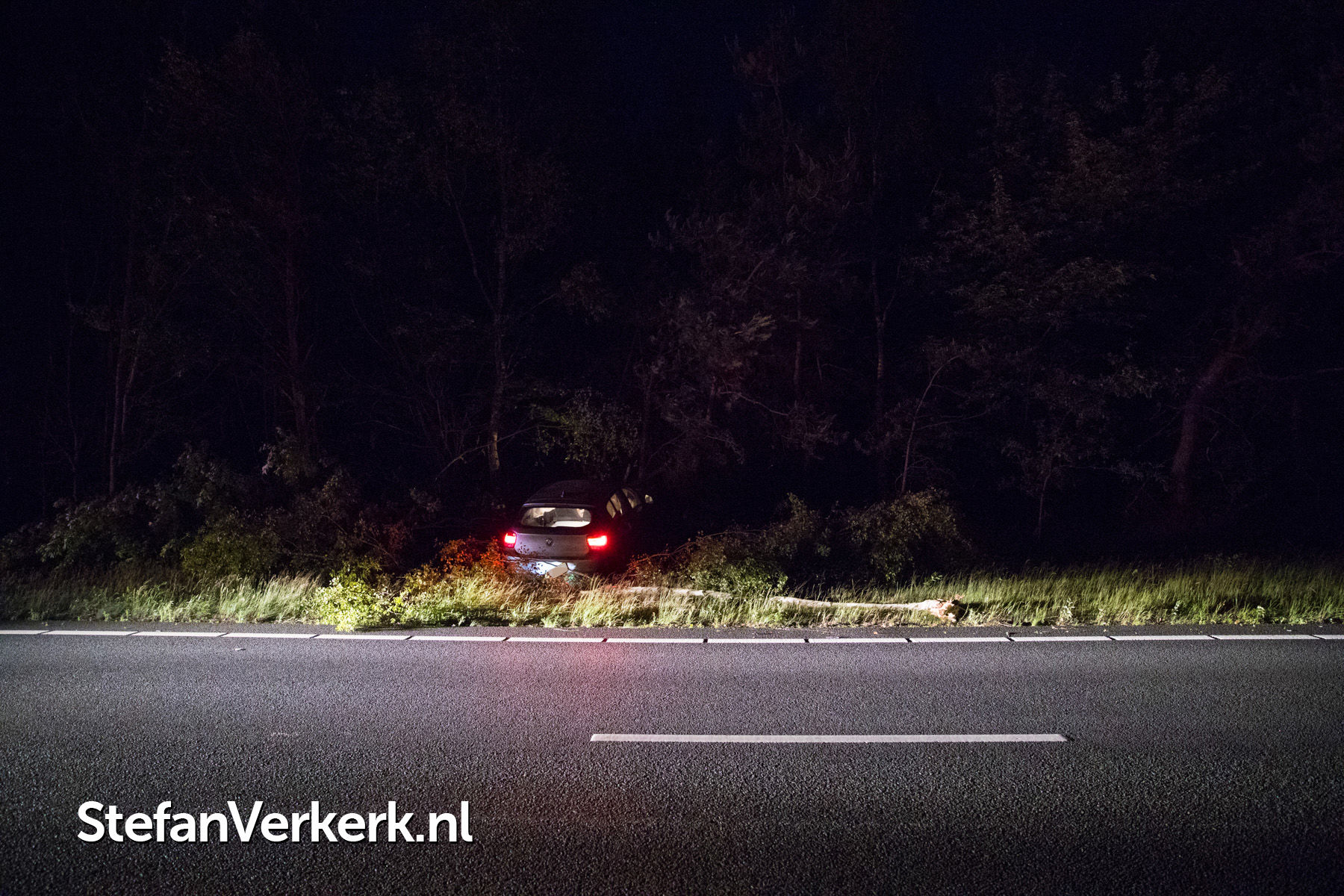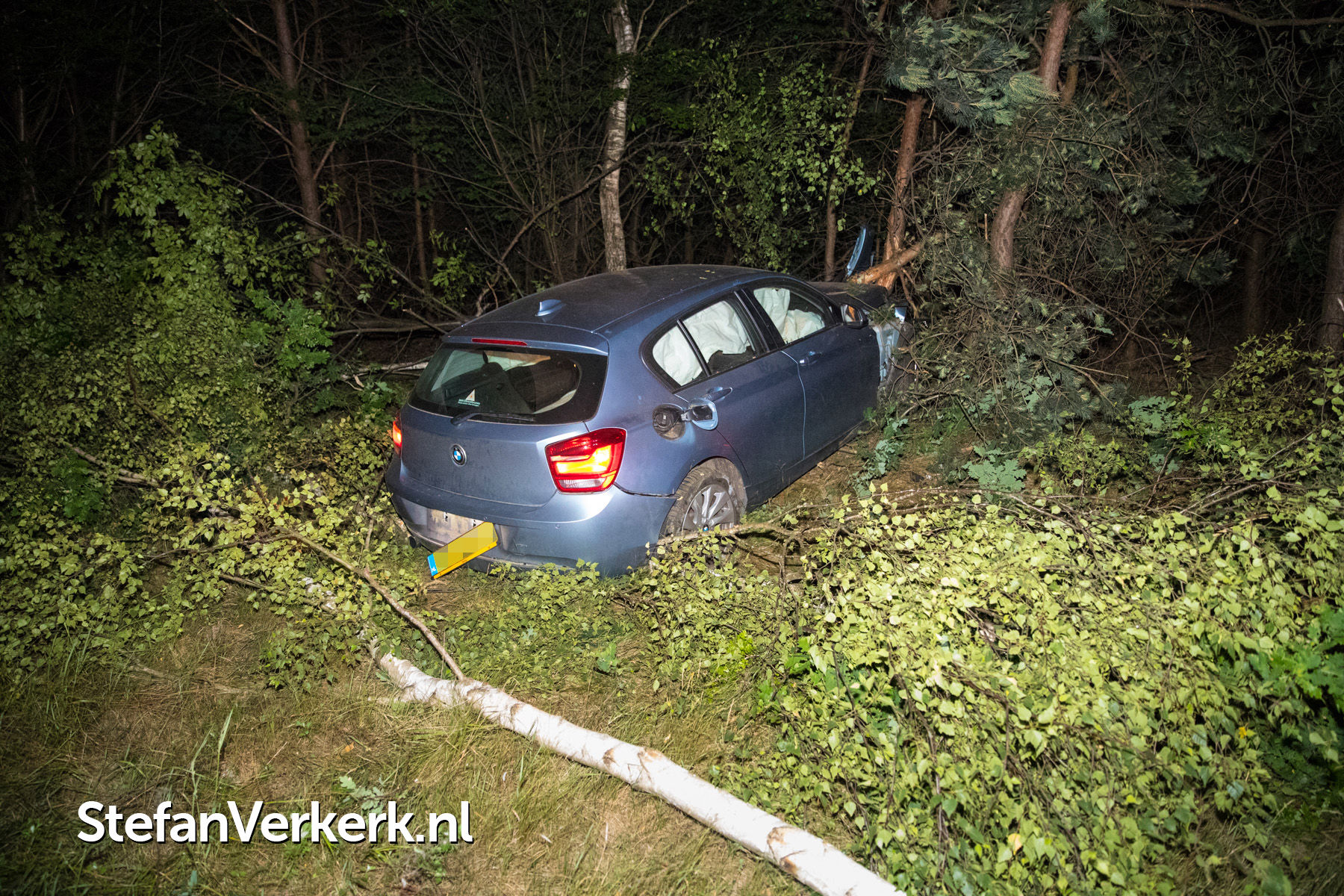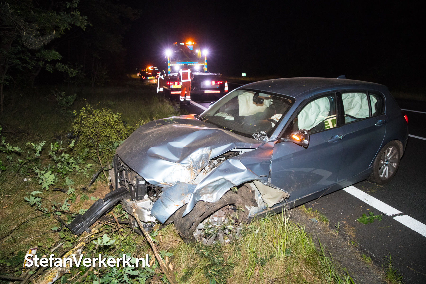 Foto's: Ongeval auto tussen de bomen A28 L 75,2 Wezep - 't Harde