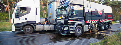 Flinke bende op parkeerplaats door diesellekkage vrachtwagen A28 Nunspeet