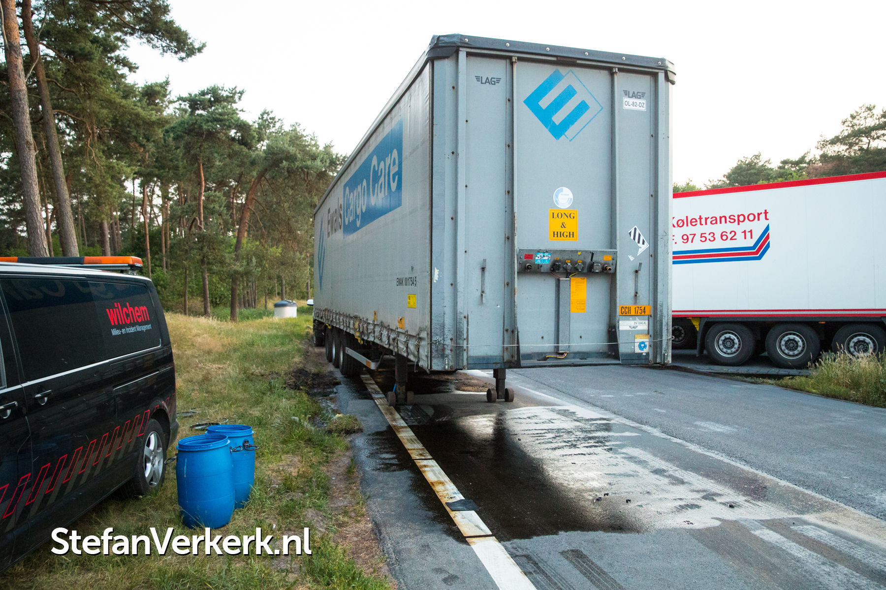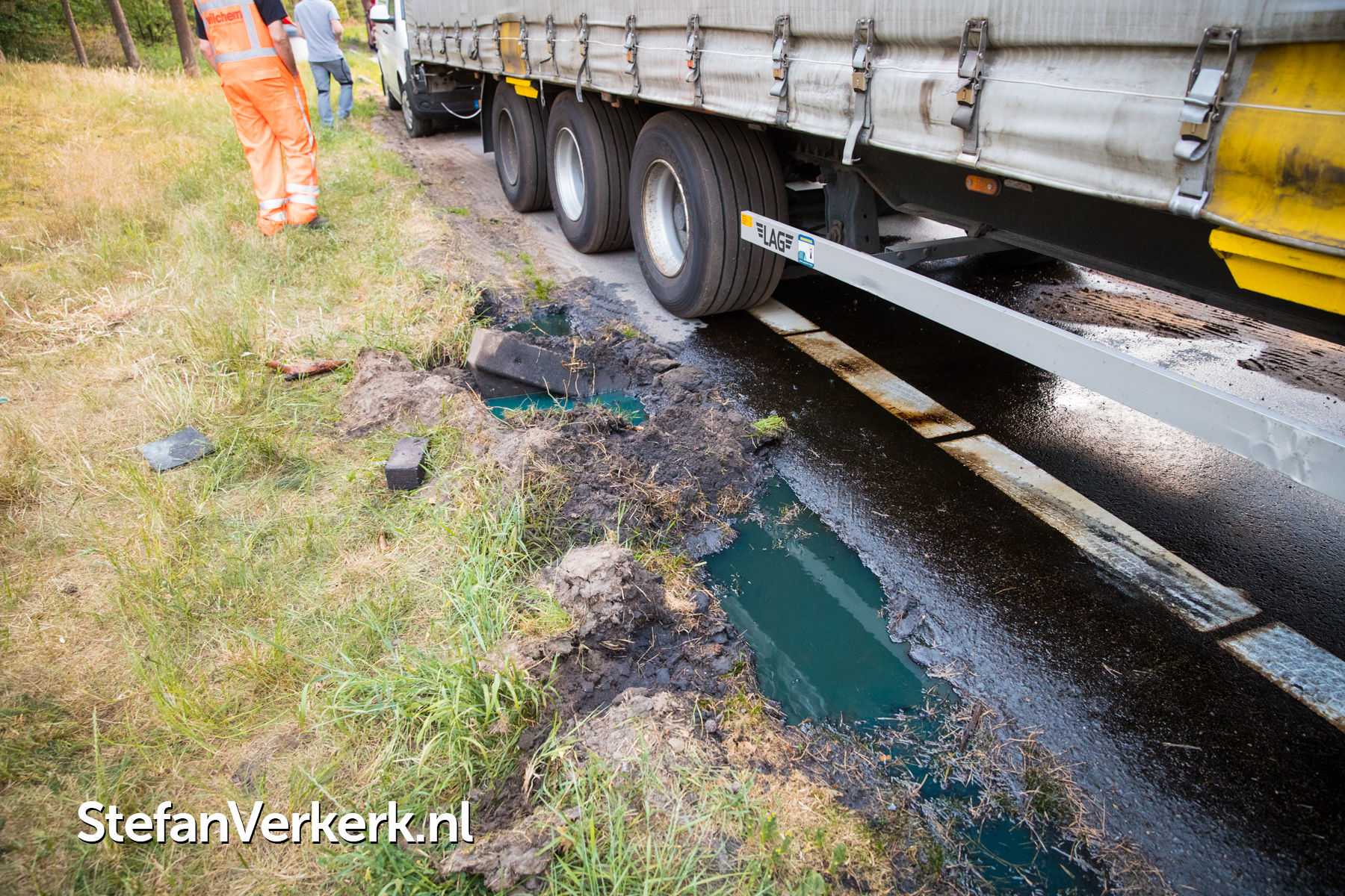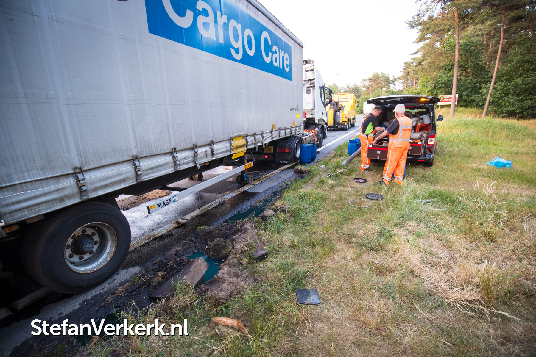 Foto's: Flinke bende op parkeerplaats door diesellekkage vrachtwagen A28 Nunspeet