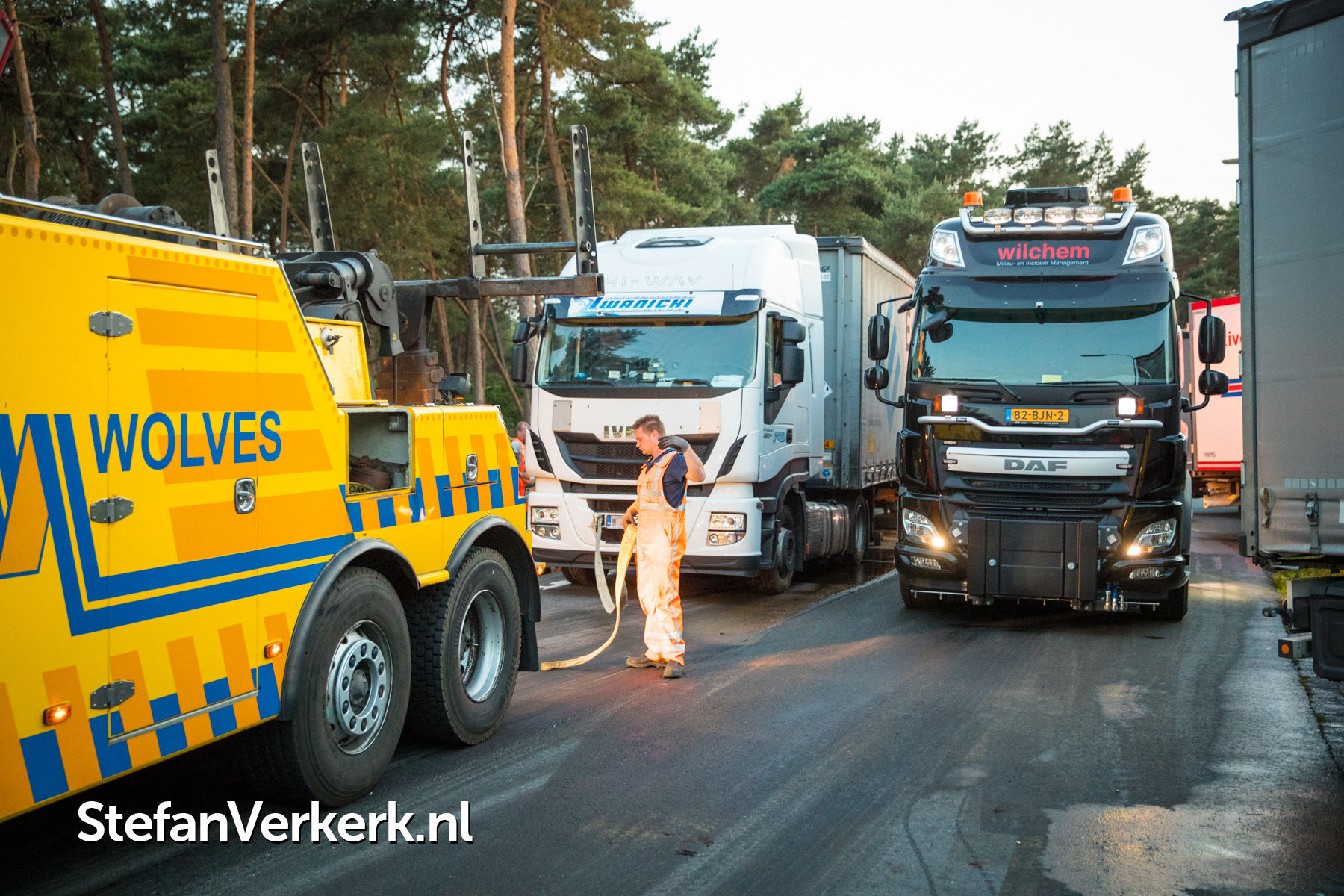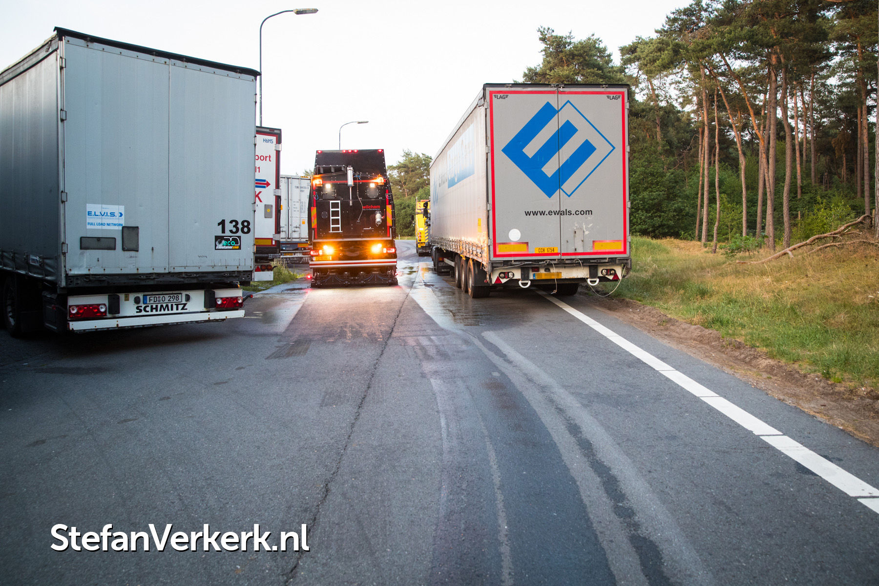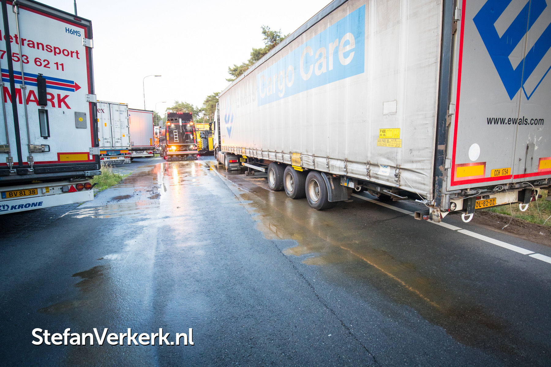 Foto's: Flinke bende op parkeerplaats door diesellekkage vrachtwagen A28 Nunspeet