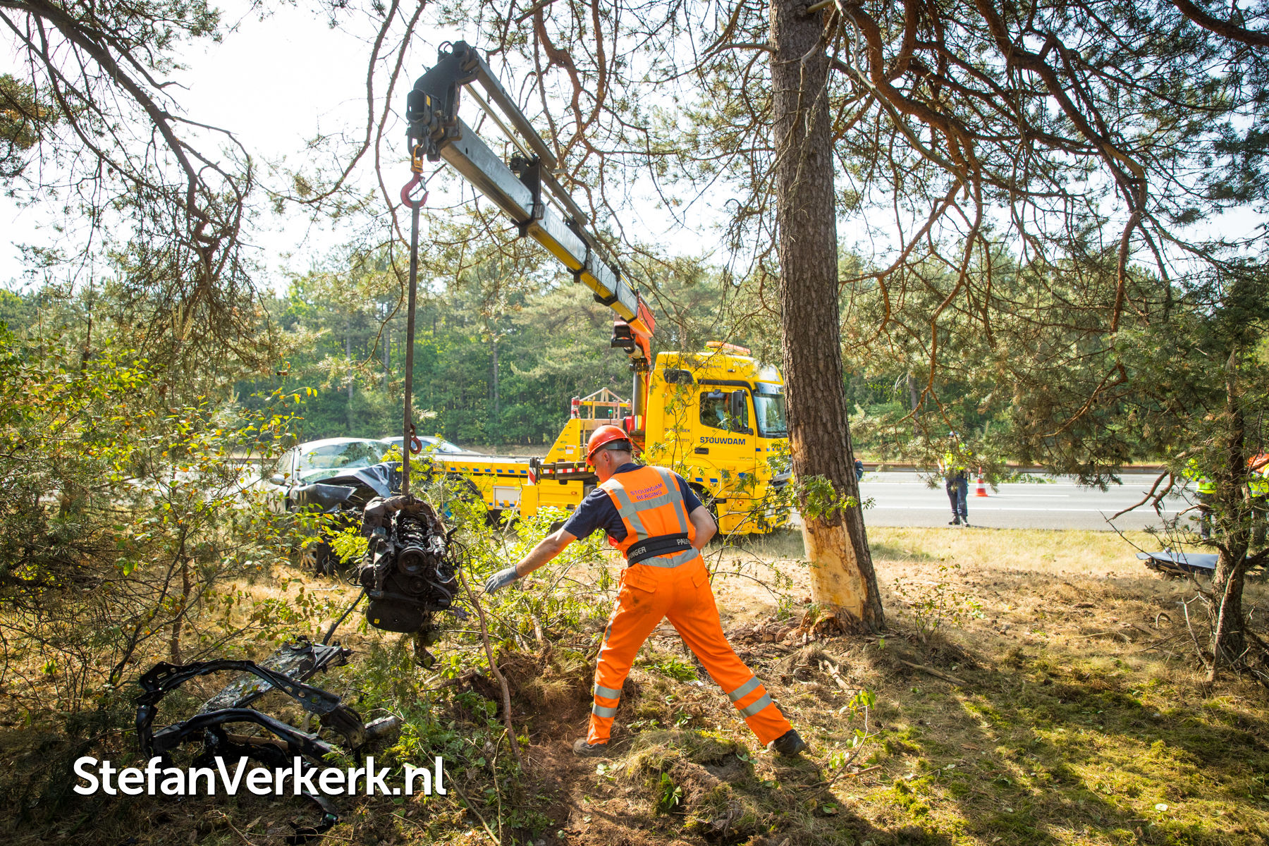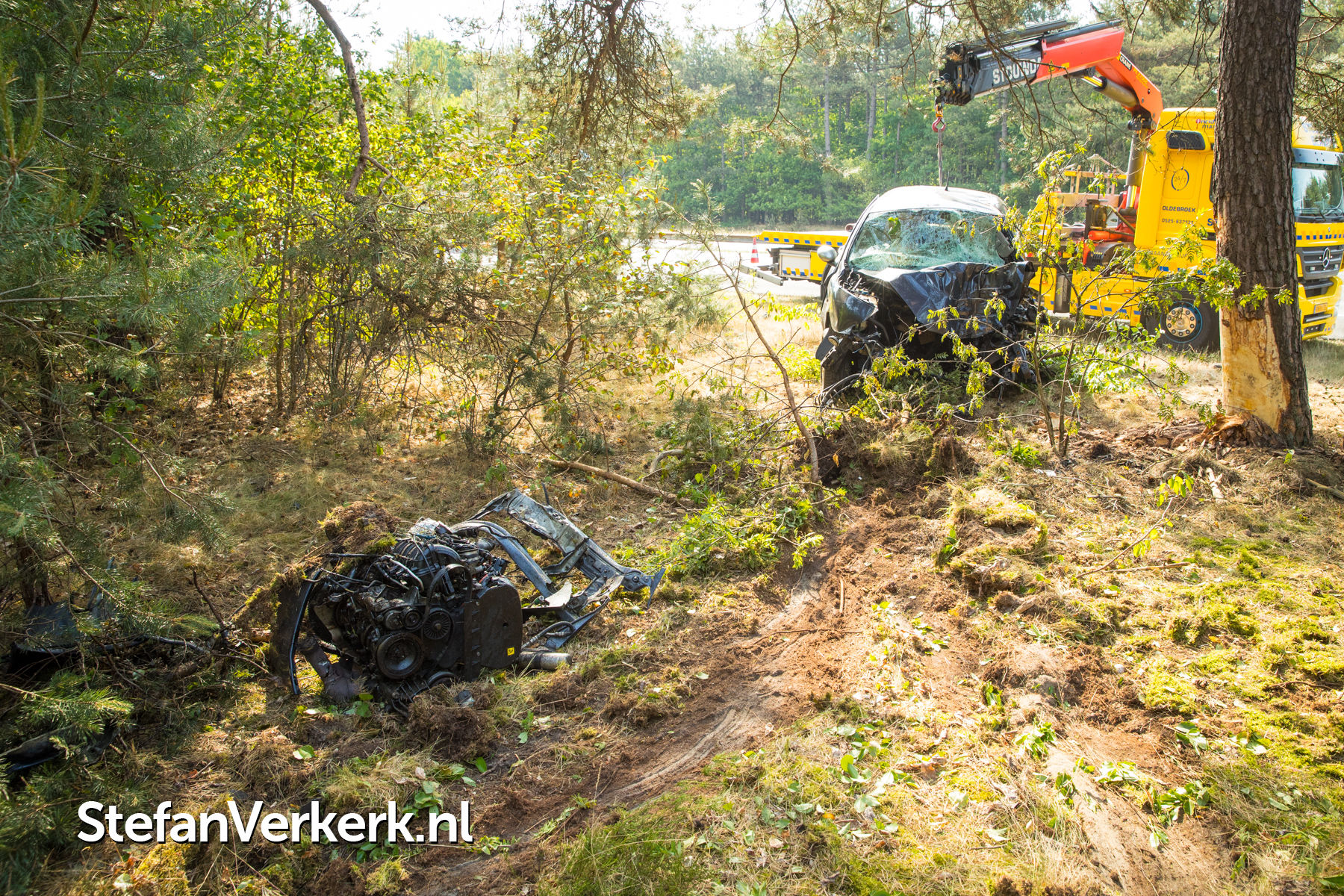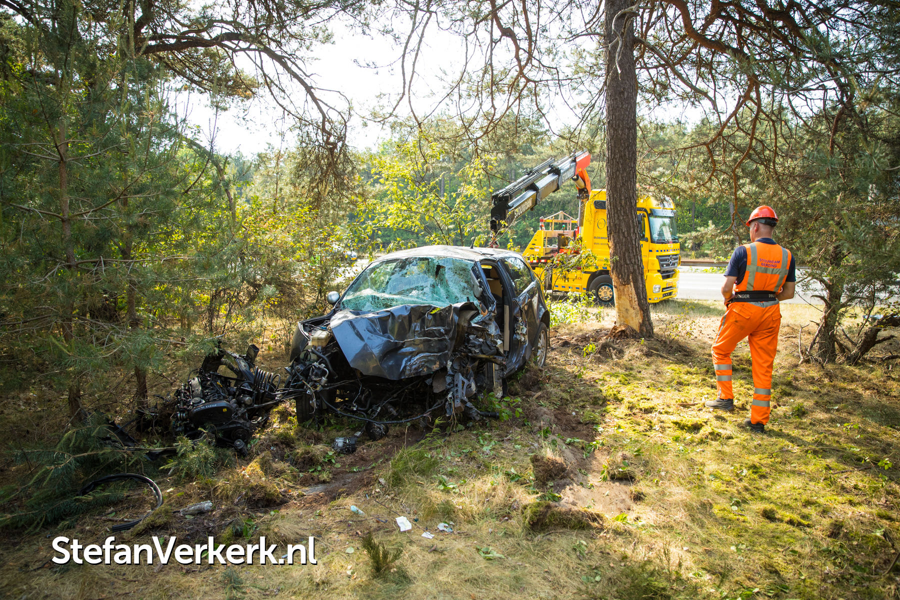 Foto's: Ernstig ongeval auto tegen boom A28 L 64,8 Nunspeet