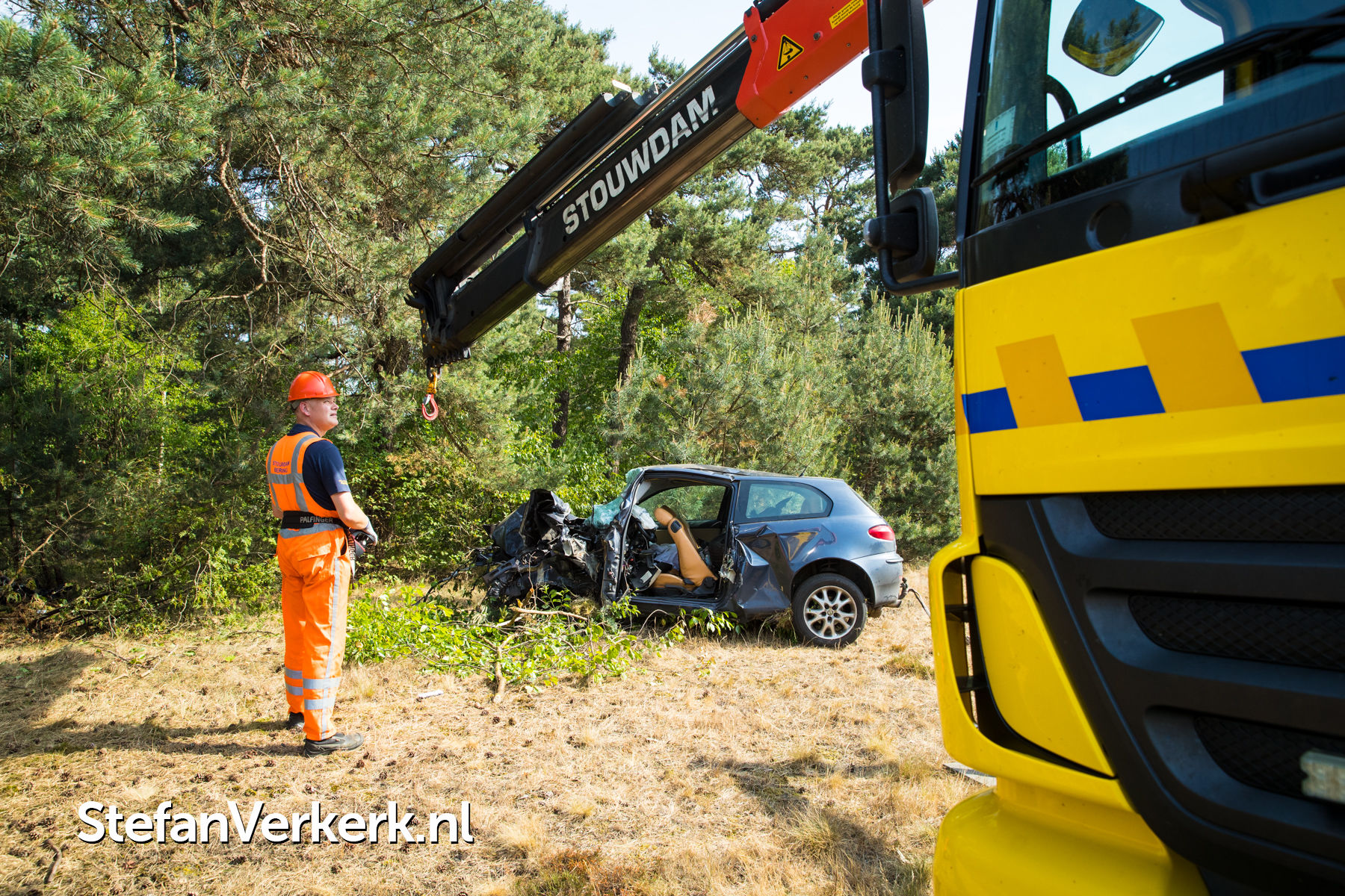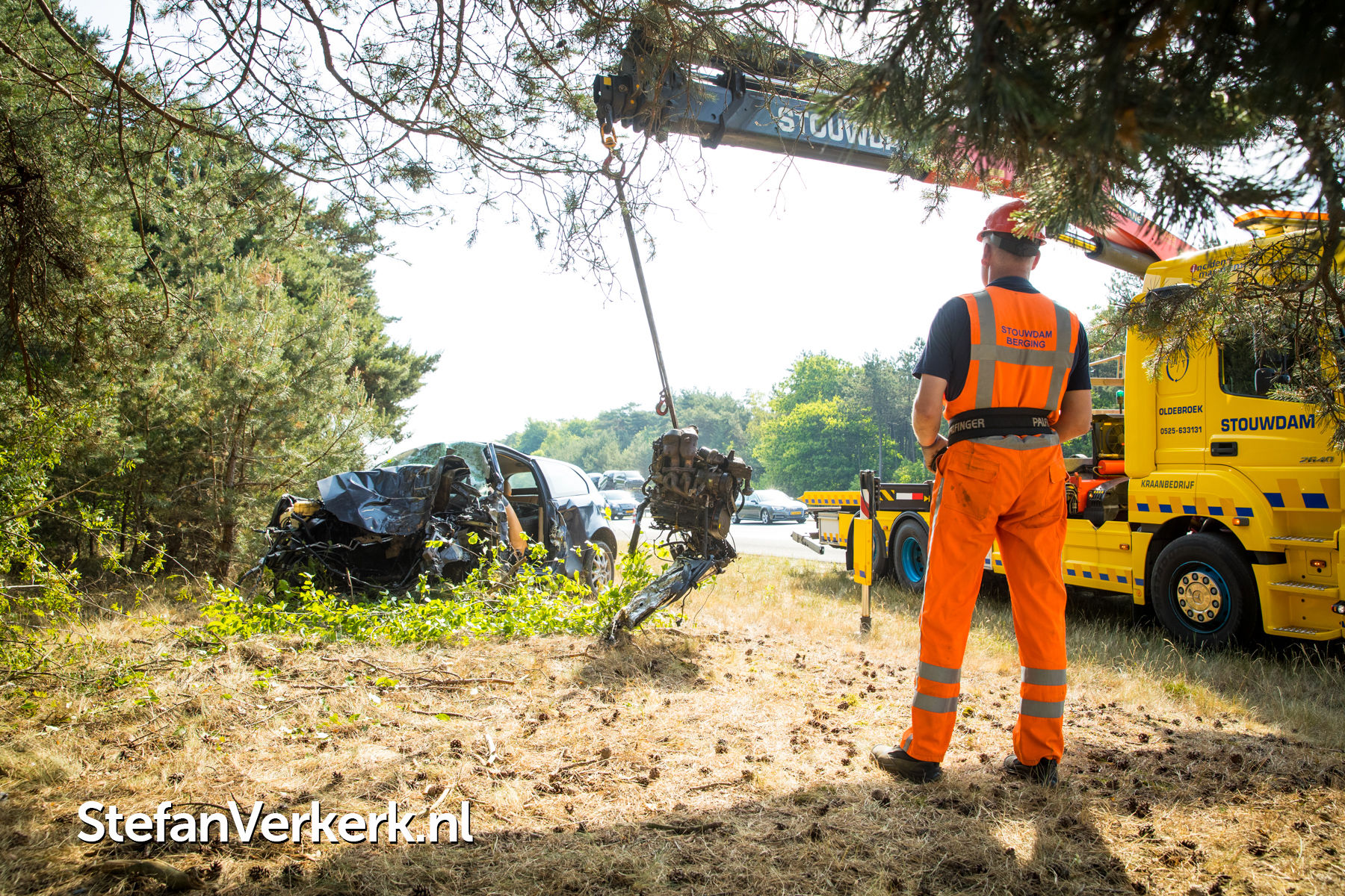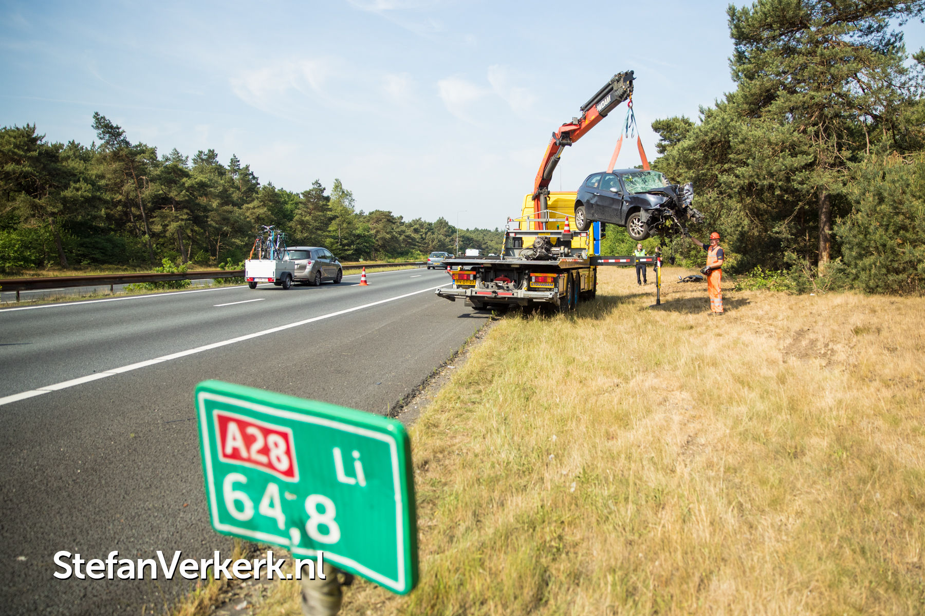 Foto's: Ernstig ongeval auto tegen boom A28 L 64,8 Nunspeet
