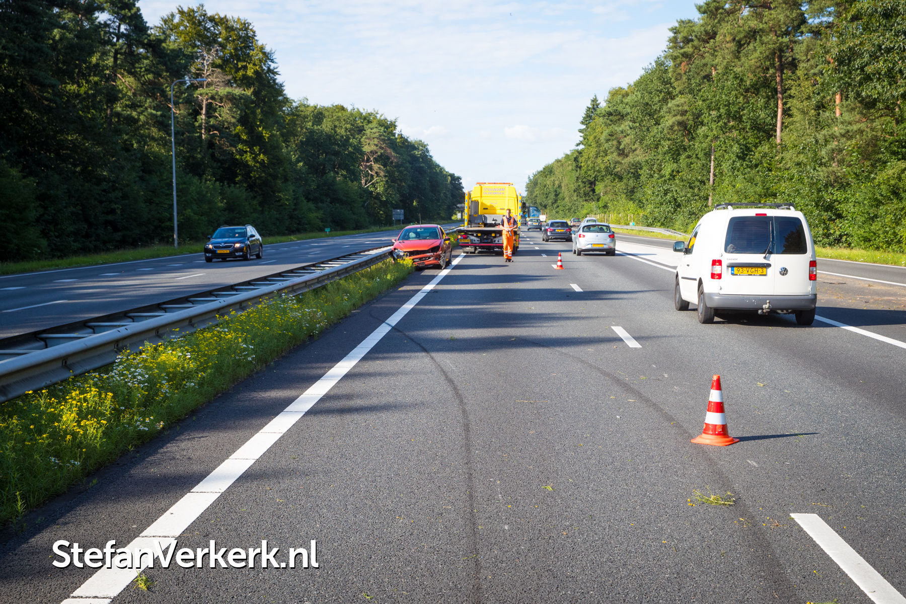 Auto's van de weg door olie op wegdek A28 L 85,1 h knp. Hattemerbroek