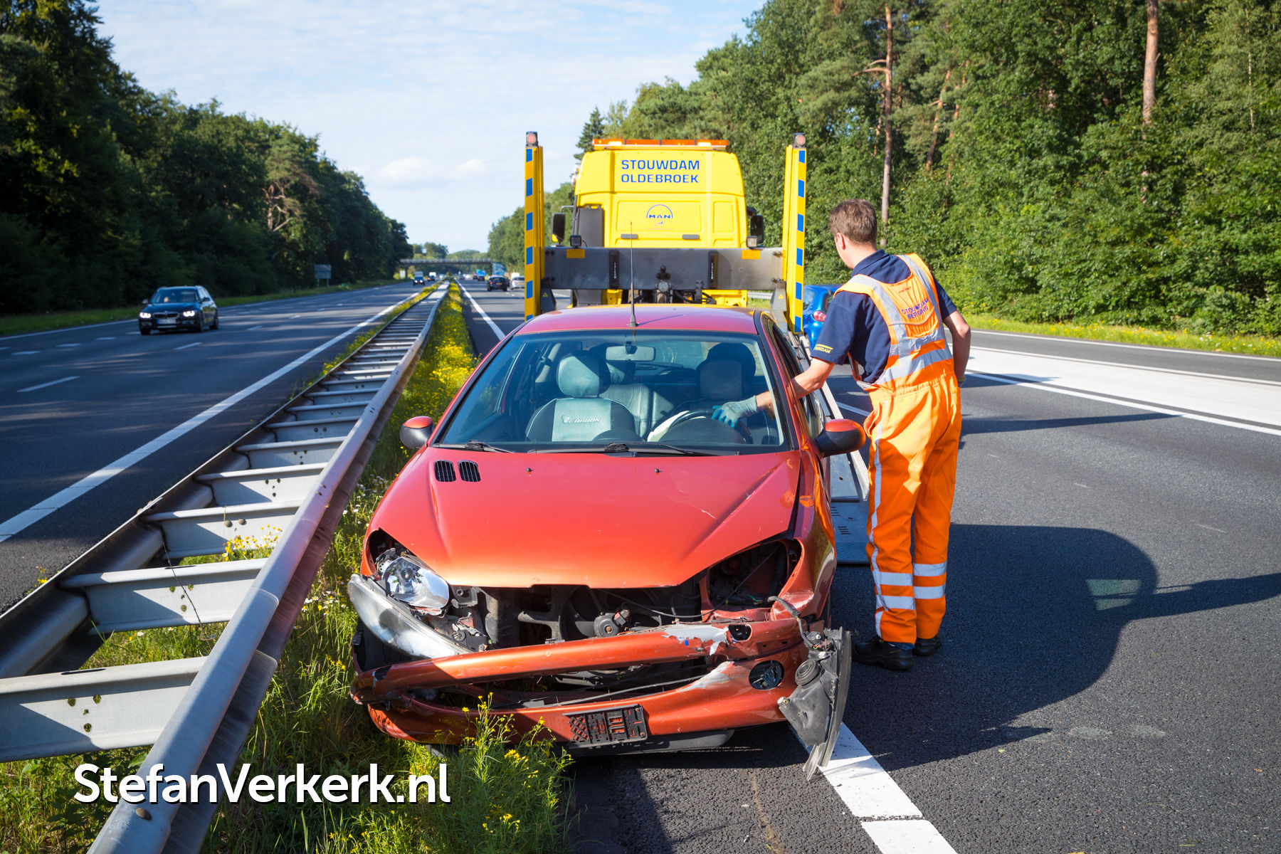 Foto's: Auto in de vangrail middenberm A28 R 80,2 Wezep