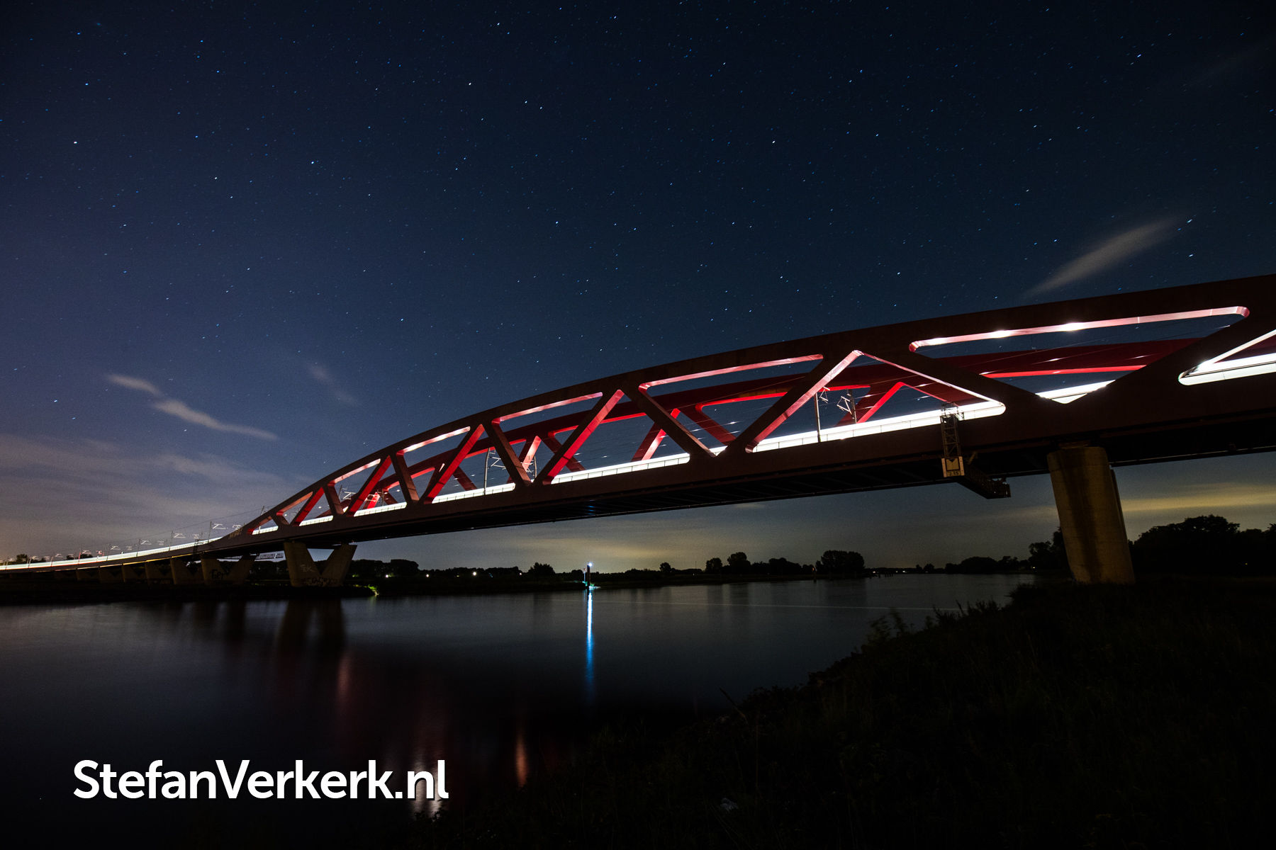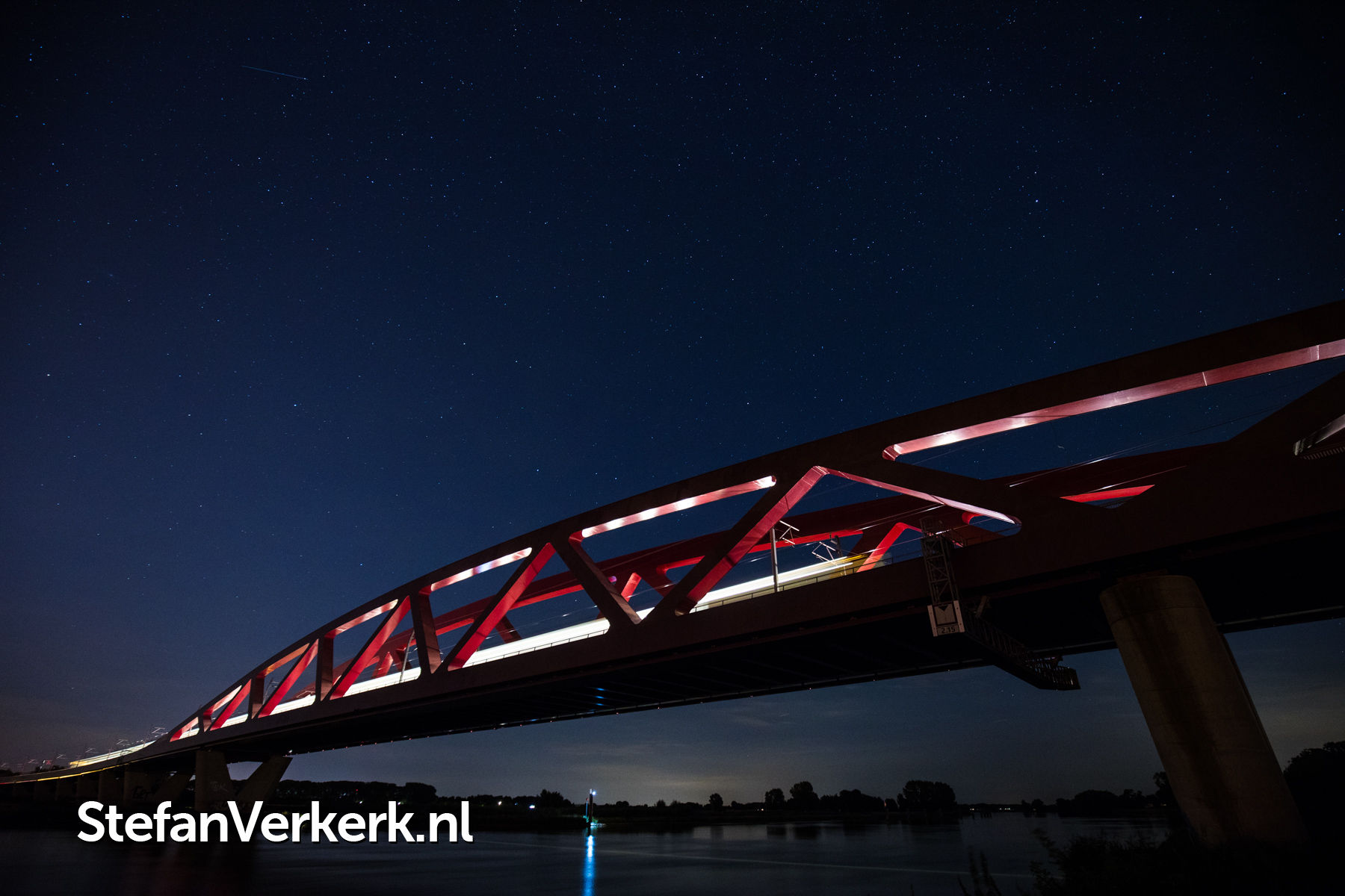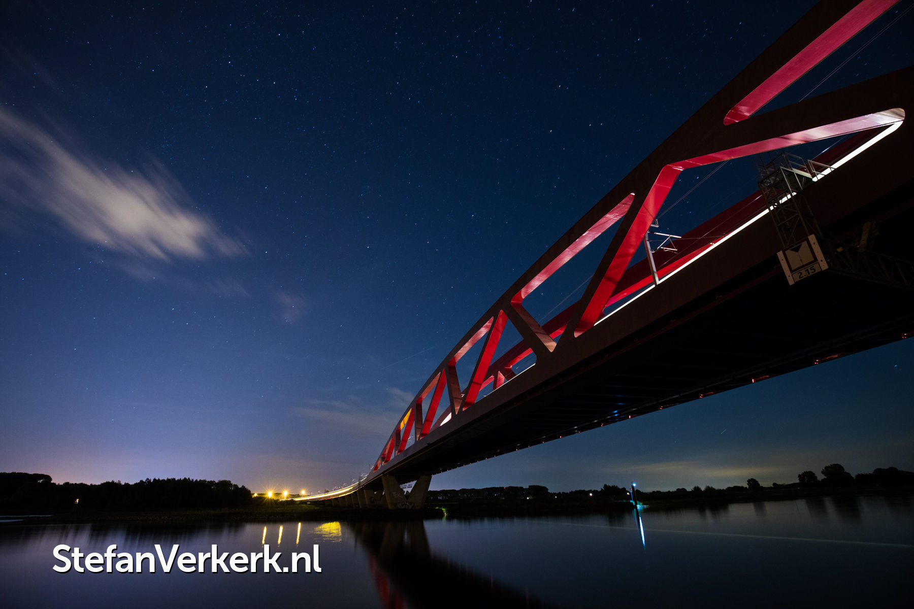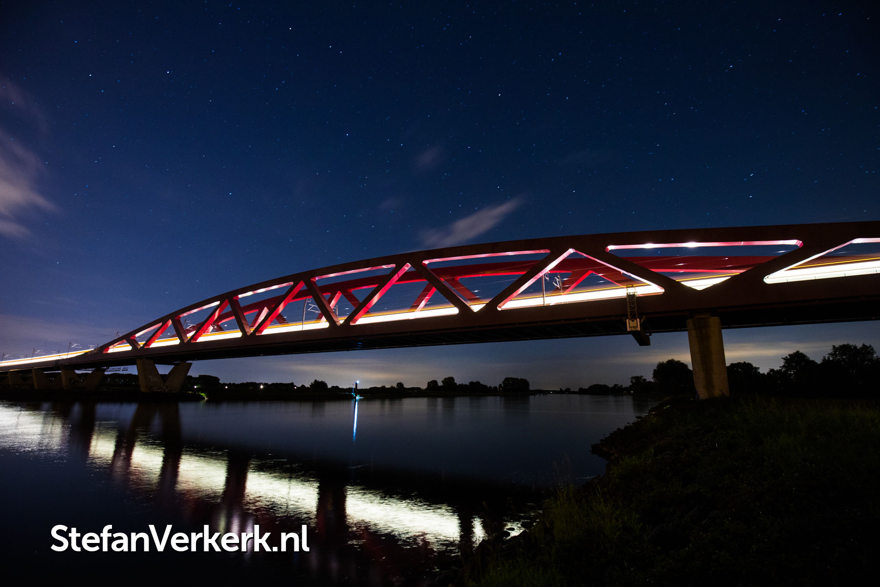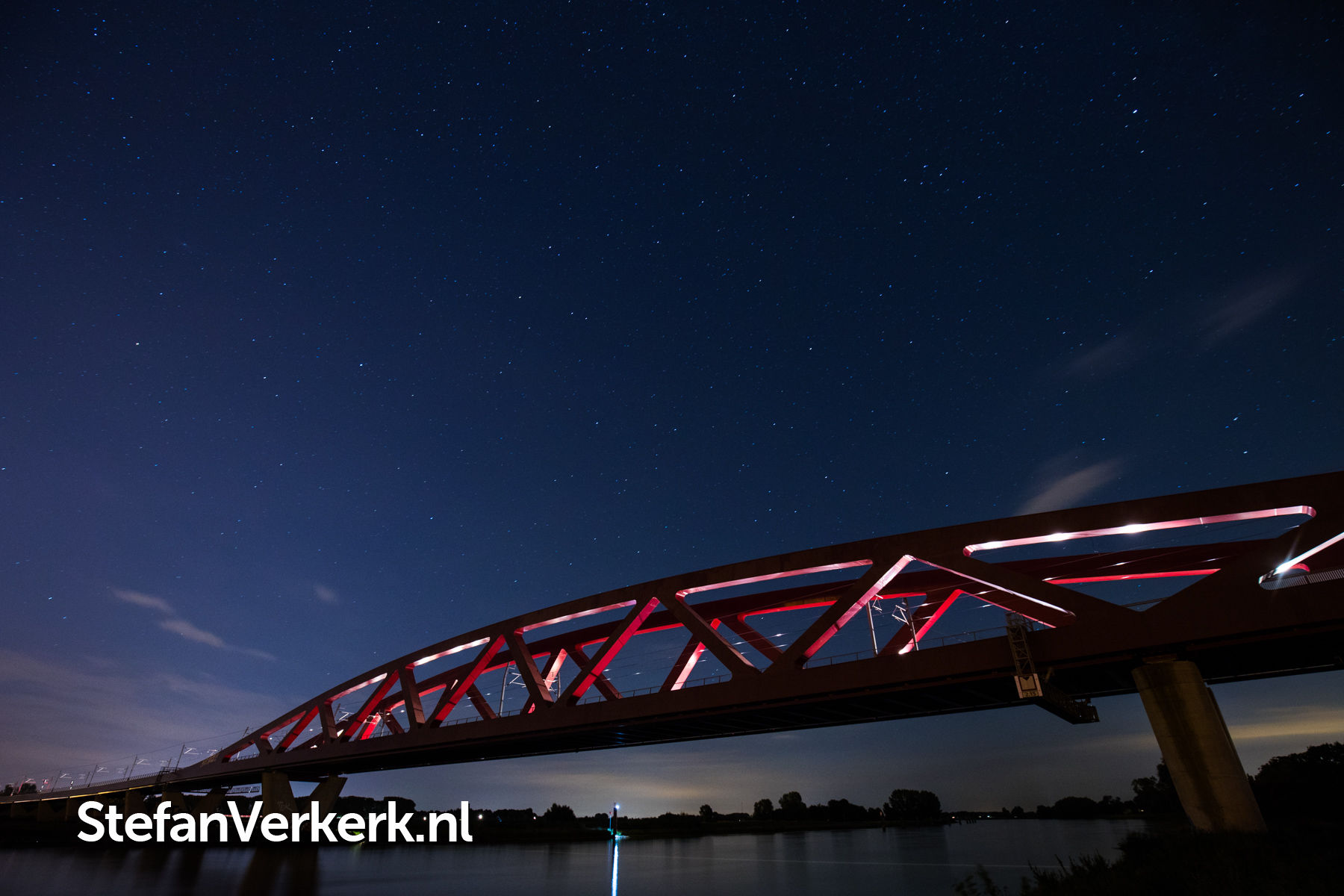 Zonsondergang boven de IJssel bij de Eilandbrug N50 Kampen