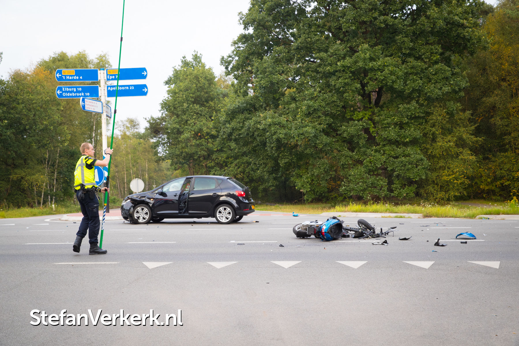 Foto's: Zwaar ongeval snorfietser - auto's N309 Elburgerweg Epe