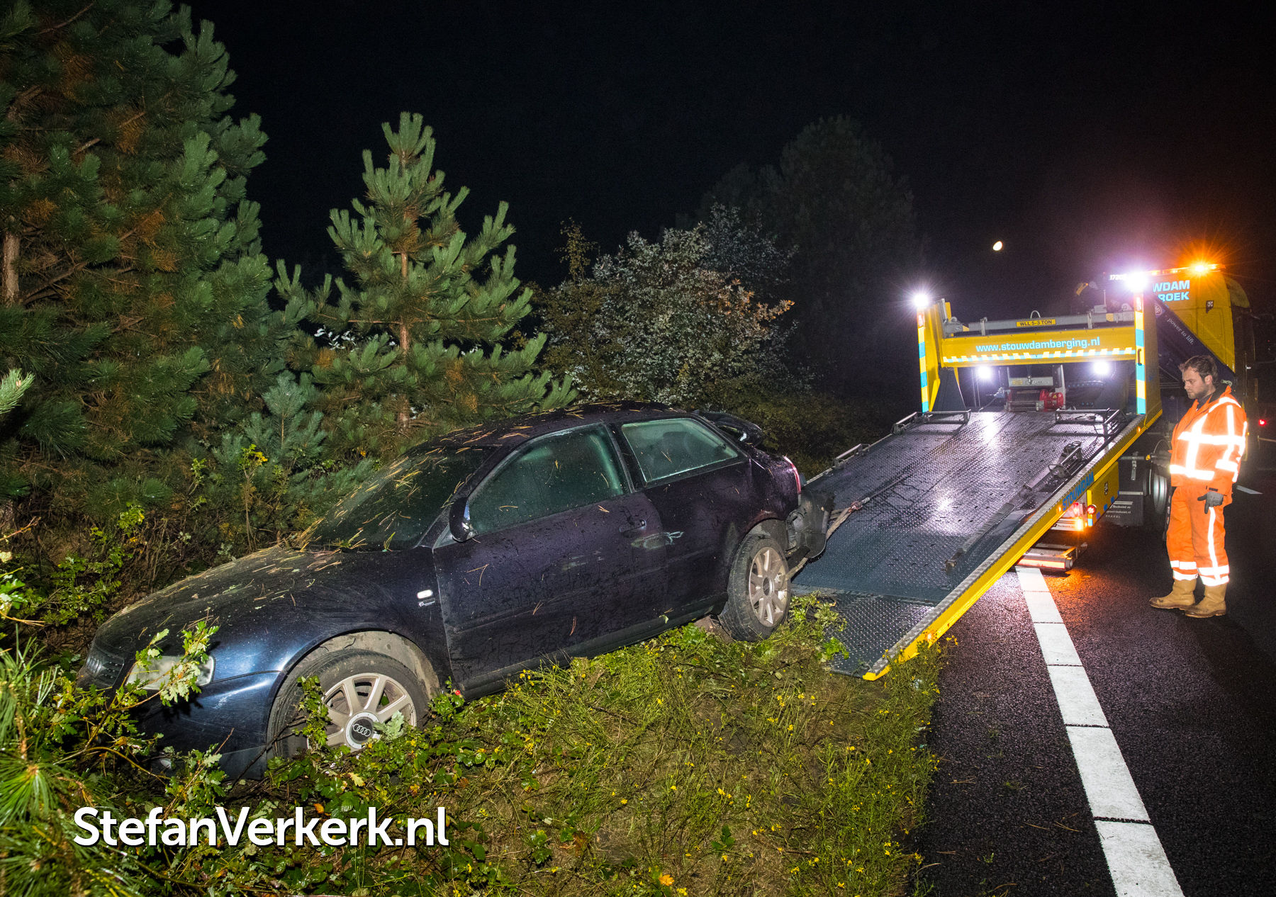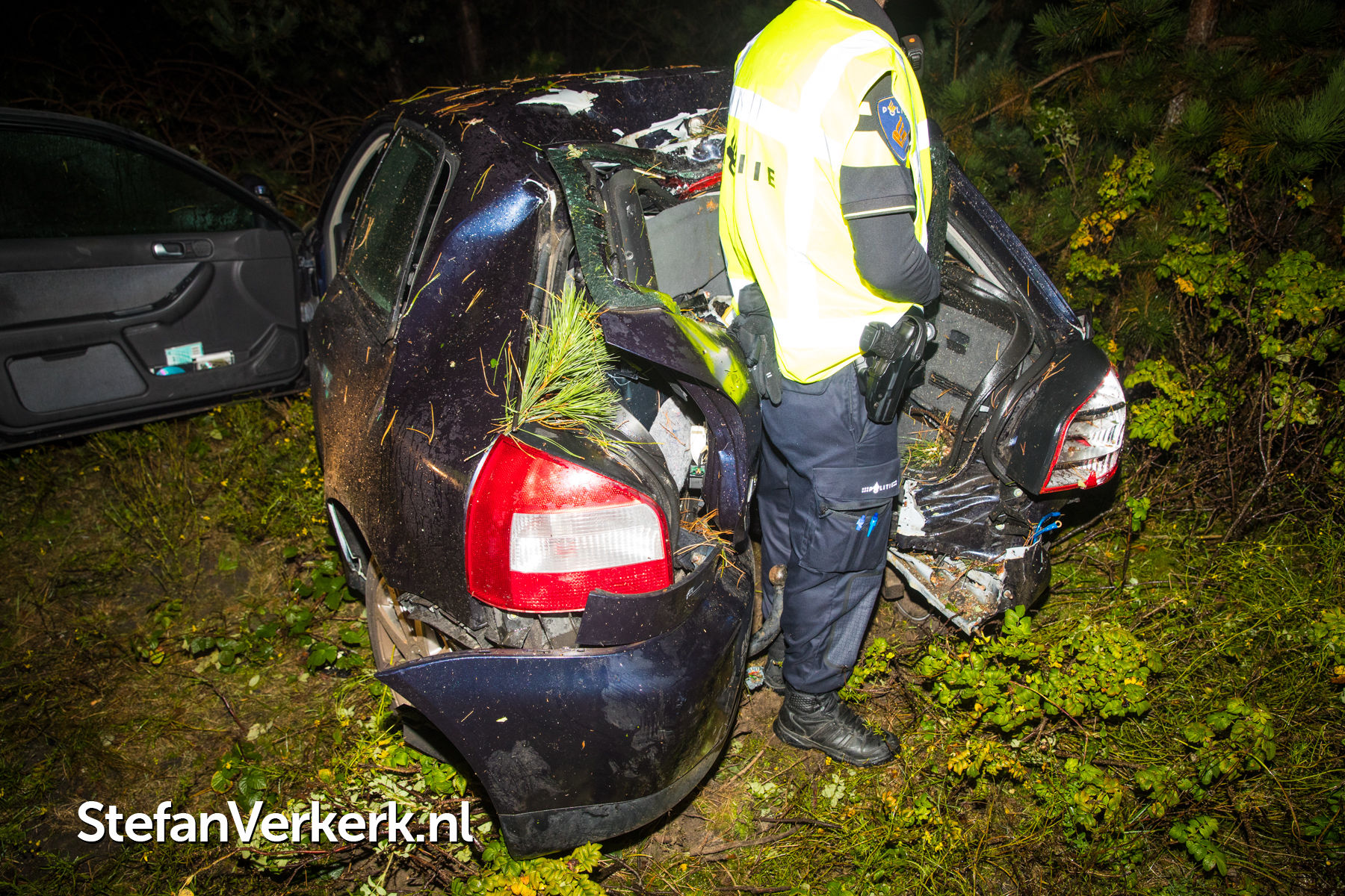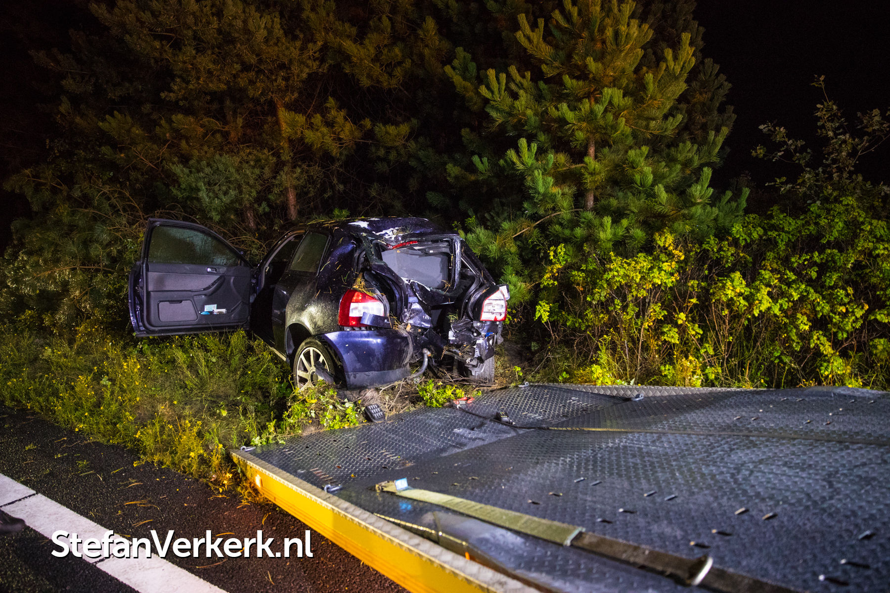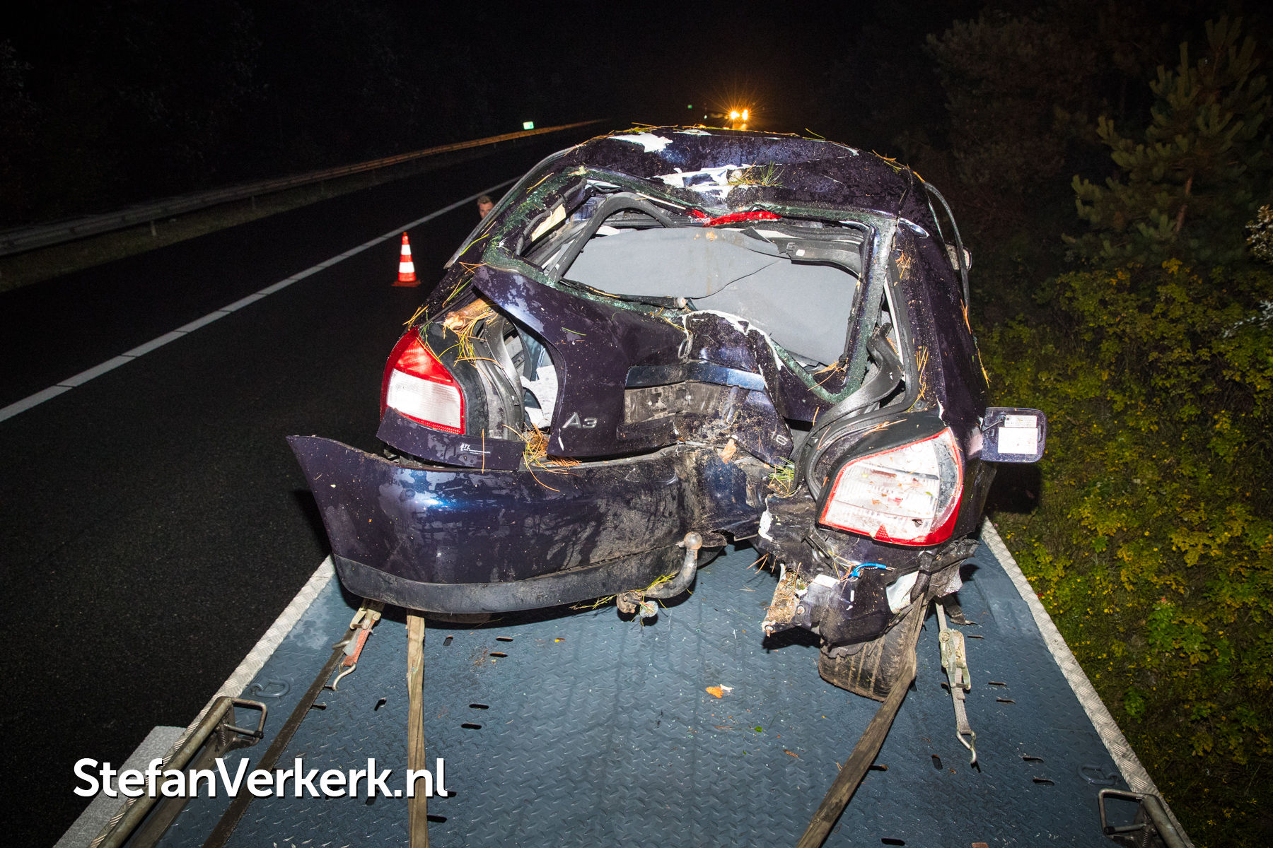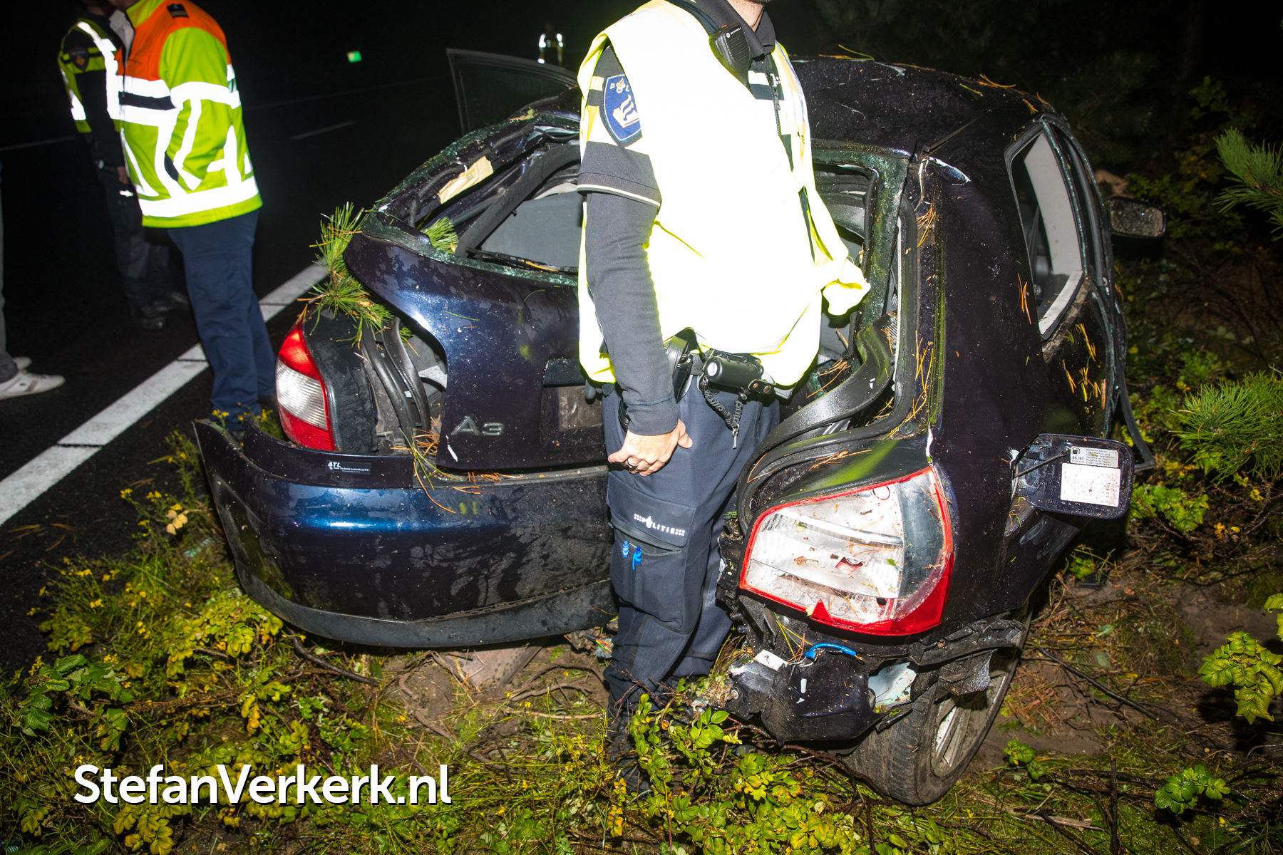 Foto's: Ongeval auto tegen boom A28 L 67,0 Nunspeet