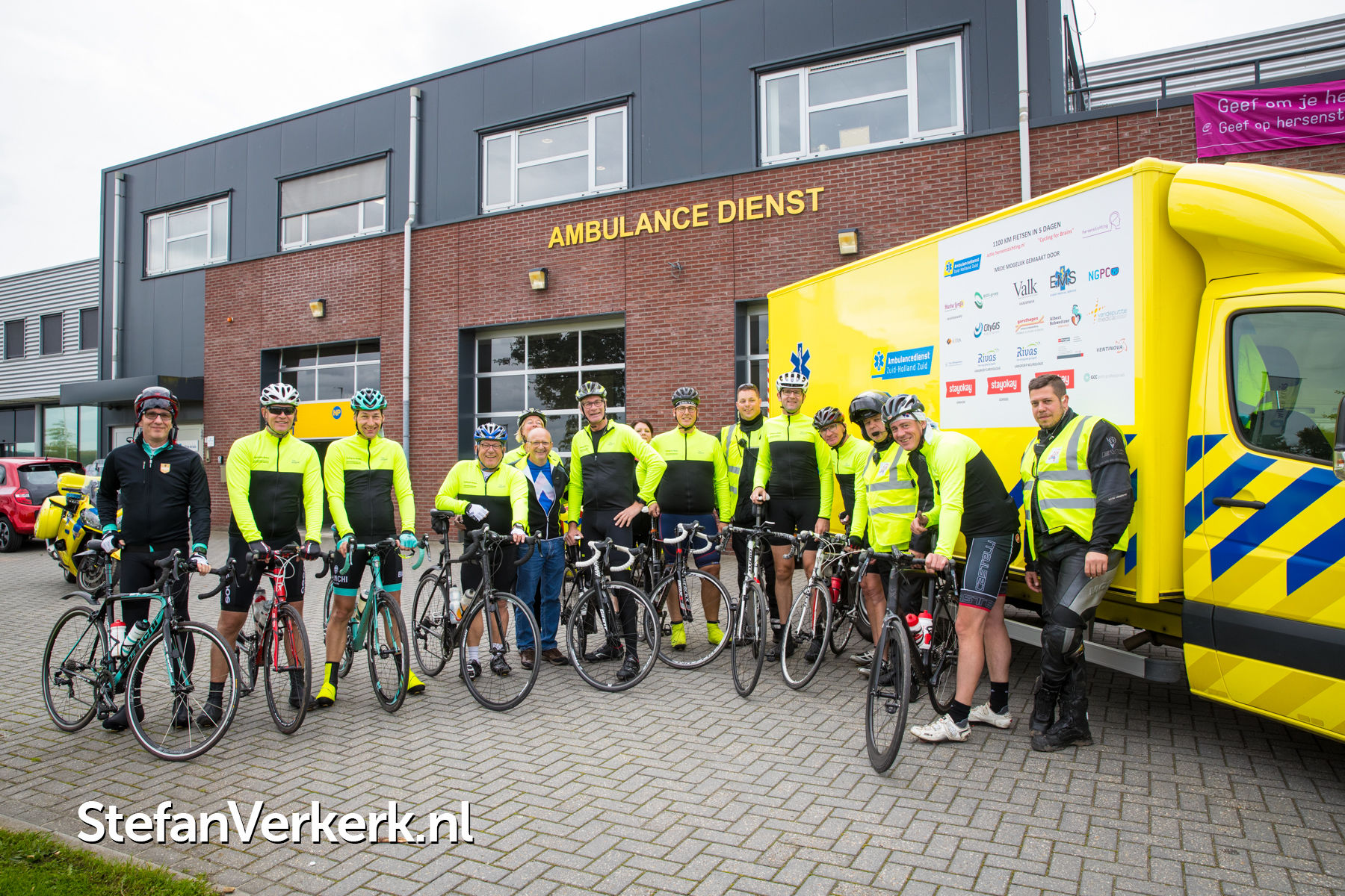Foto's: Sponsortocht Cycling for Brains komt langs ambulancepost Elburg
