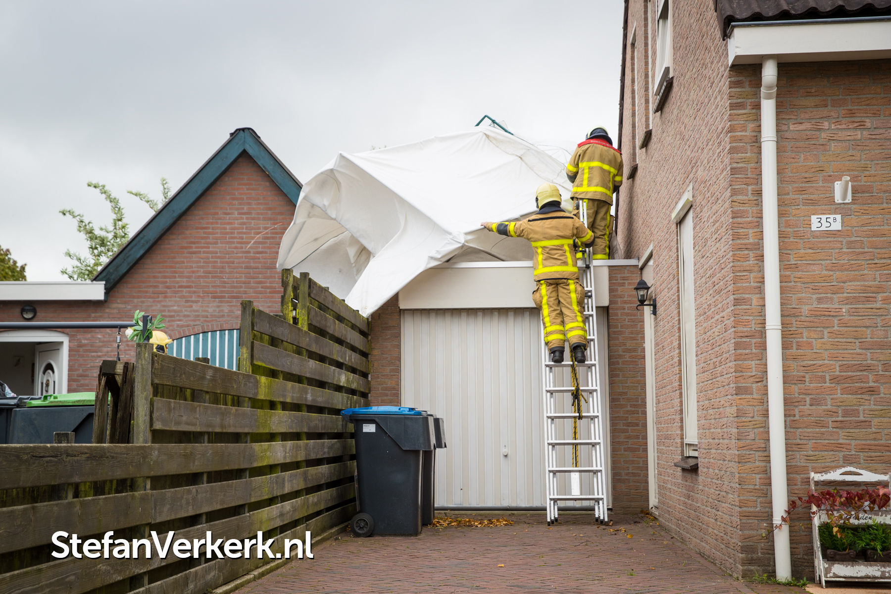 Foto's: Partytent weggewaaid Verlengde Kerkweg Wezep
