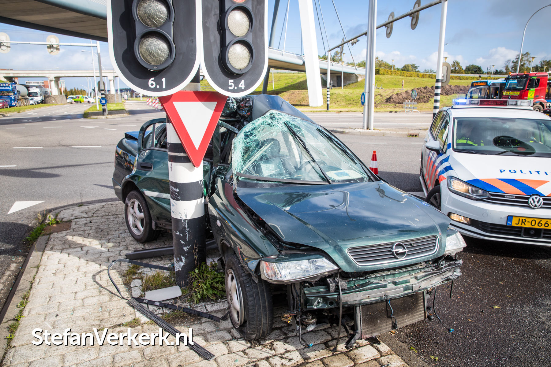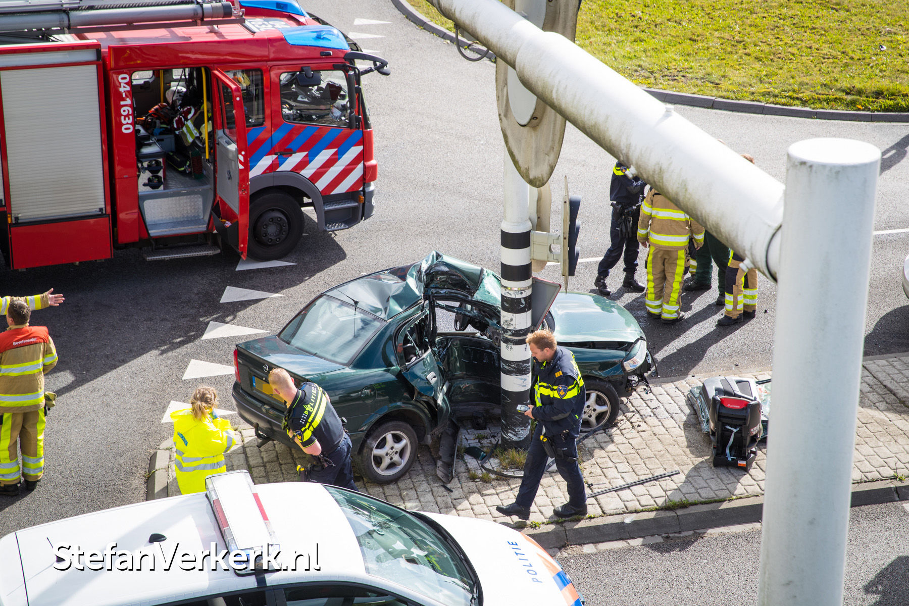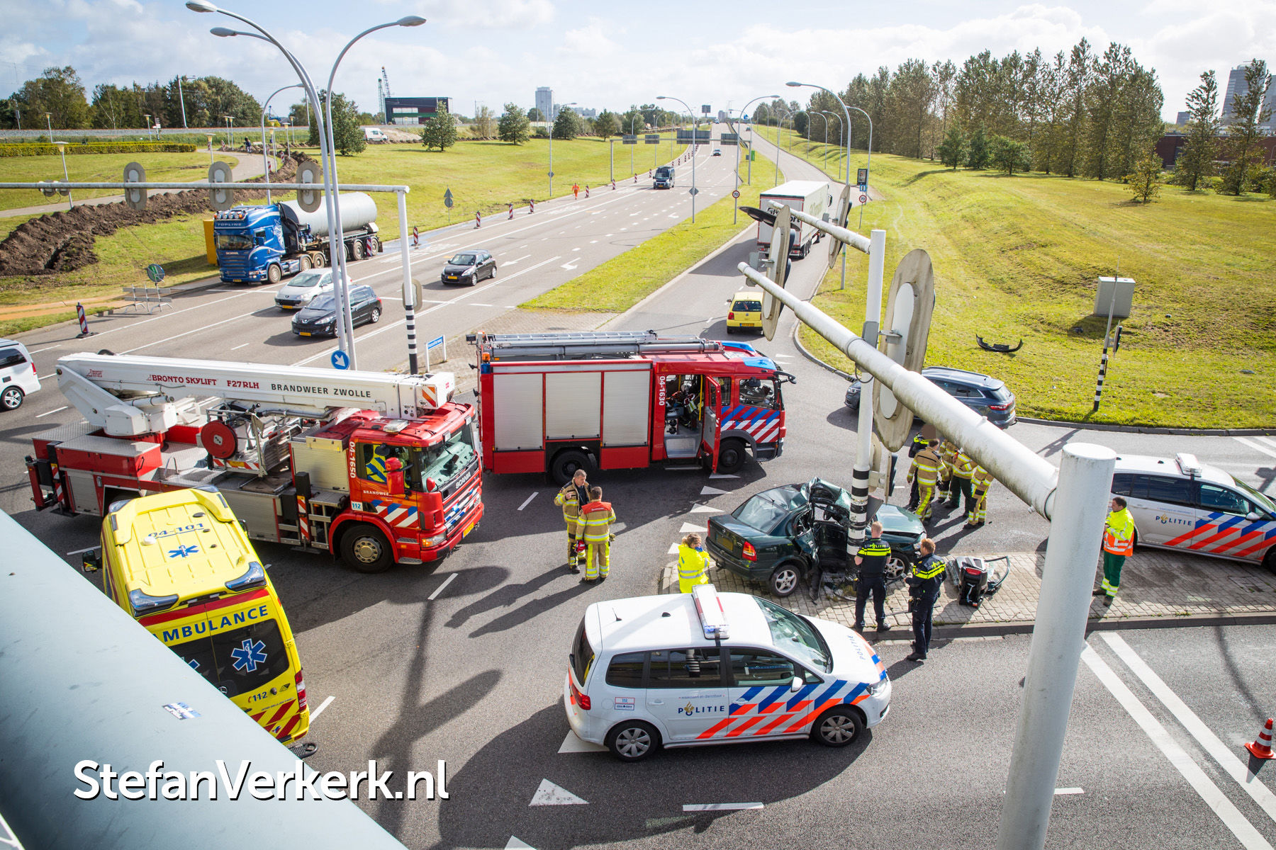Foto's: Ongeval auto tegen paal verkeerslichten Hasselterweg Zwolle